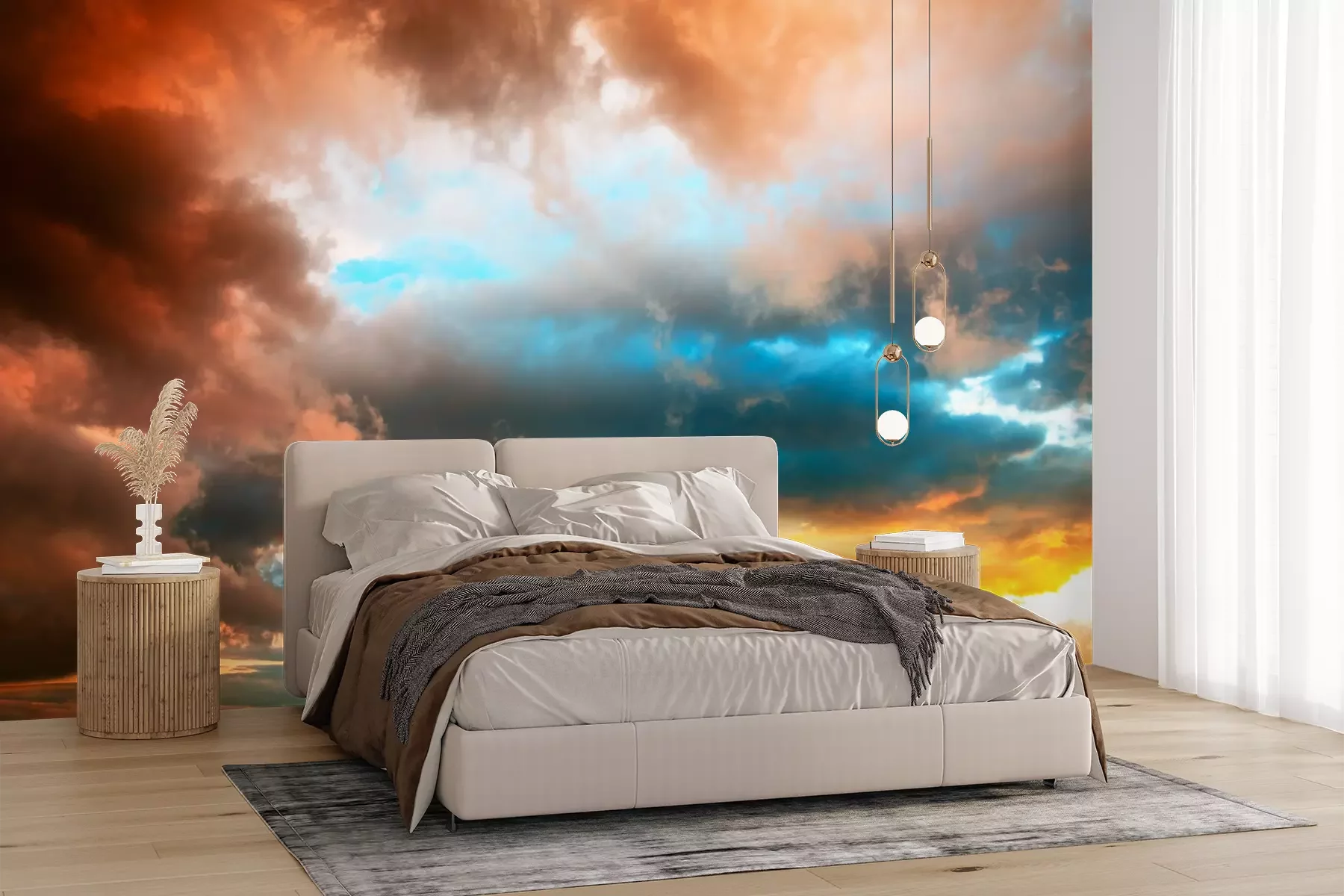Das Material Premium+ besteht aus einer strukturierten Vinyl-Oberschicht und einem Trägermaterial (Vlies) mit einer Grammatur von 255 g/m², das kleine Unebenheiten der Wand zuverlässig kaschiert. Die feine Sandstruktur verleiht der Oberfläche eine luxuriöse Haptik, während das halbmatte Finish die Tiefe der Farben betont. Das Material ist dampfdurchlässig – so kann diese Fototapete auch in Küchen und Badezimmern eingesetzt werden. Die maximale Breite einer Tapetenbahn beträgt 100 cm. Bei größeren Abmessungen besteht die Fototapete aus mehreren gleich großen Bahnen. Der Kleber wird direkt auf die Wand aufgetragen, und die Fototapete wird auf Stoß angebracht, was für einen ästhetischen Effekt ohne sichtbare Fugen sorgt. Die Oberfläche ist pflegeleicht und kann bei Bedarf sanft mit einem feuchten Tuch abgewischt werden.
