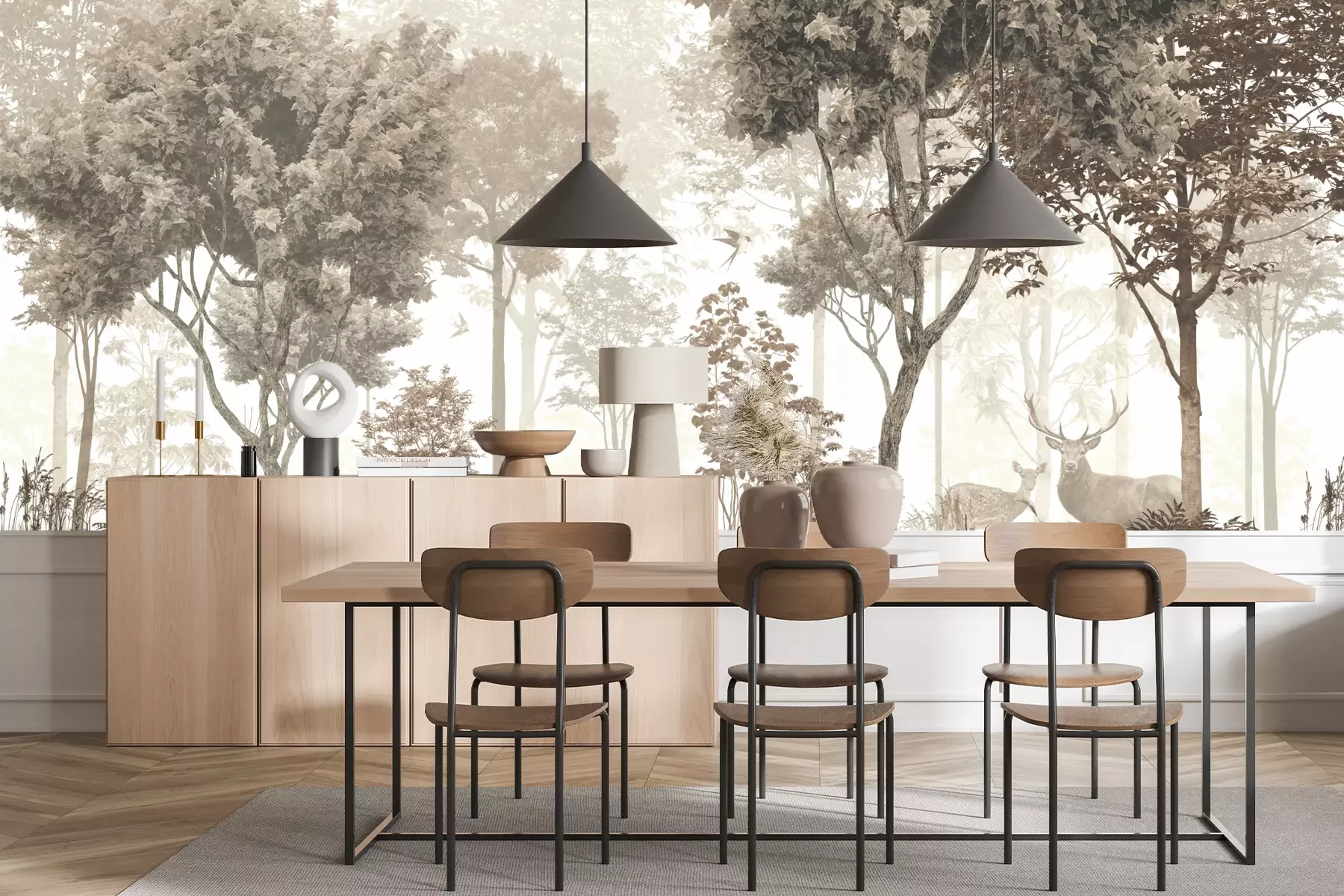 Das Material Premium+ besteht aus einer strukturierten Vinyl-Oberschicht und einem Trägermaterial (Vlies) mit einer Grammatur von 255 g/m², das kleine Unebenheiten der Wand zuverlässig kaschiert. Die feine Sandstruktur verleiht der Oberfläche eine luxuriöse Haptik, während das halbmatte Finish die Tiefe der Farben betont. Das Material ist dampfdurchlässig – so kann diese Fototapete auch in Küchen und Badezimmern eingesetzt werden. Die maximale Breite einer Tapetenbahn beträgt 100 cm. Bei größeren Abmessungen besteht die Fototapete aus mehreren gleich großen Bahnen. Der Kleber wird direkt auf die Wand aufgetragen, und die Fototapete wird auf Stoß angebracht, was für einen ästhetischen Effekt ohne sichtbare Fugen sorgt. Die Oberfläche ist pflegeleicht und kann bei Bedarf sanft mit einem feuchten Tuch abgewischt werden.