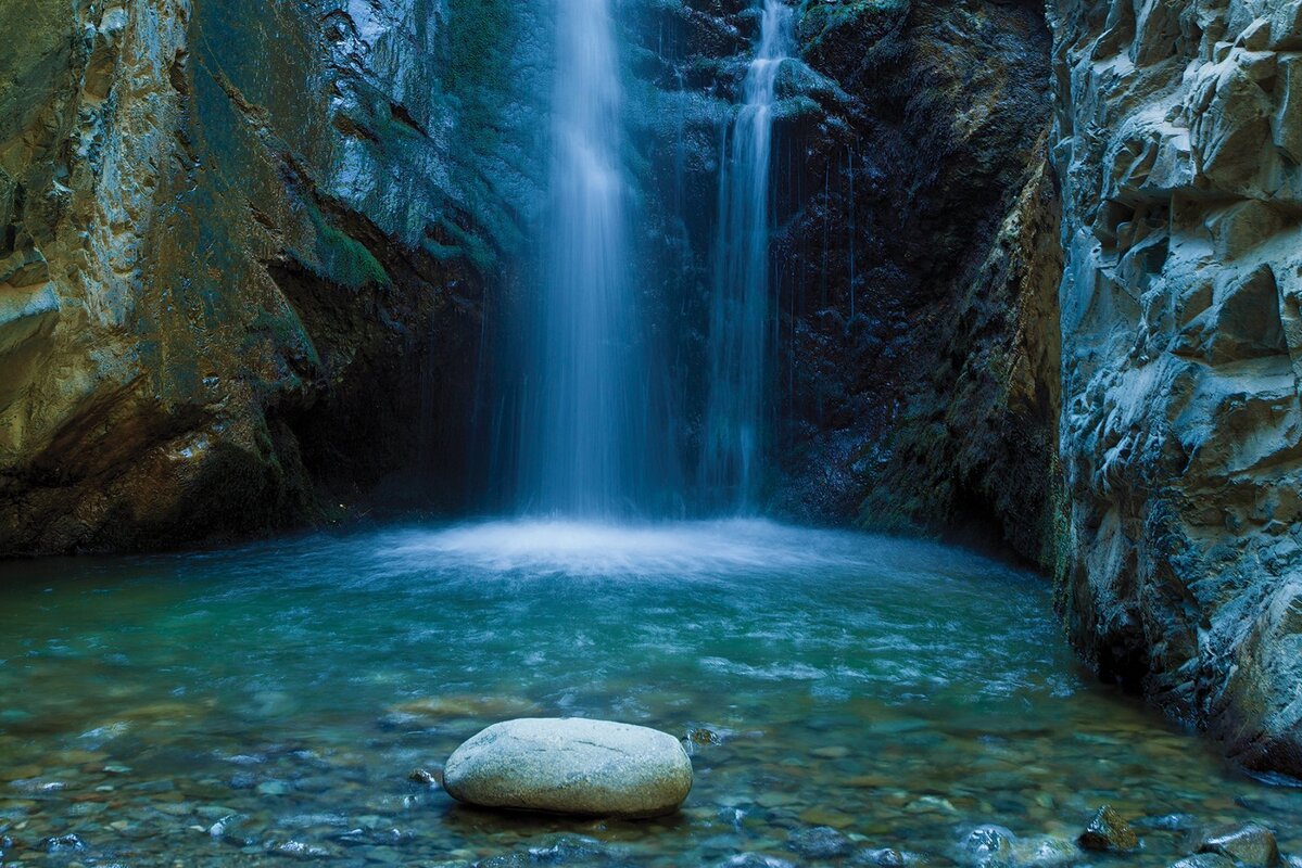 Fototapete: Höhle mit einem Wasserfall und Felsen