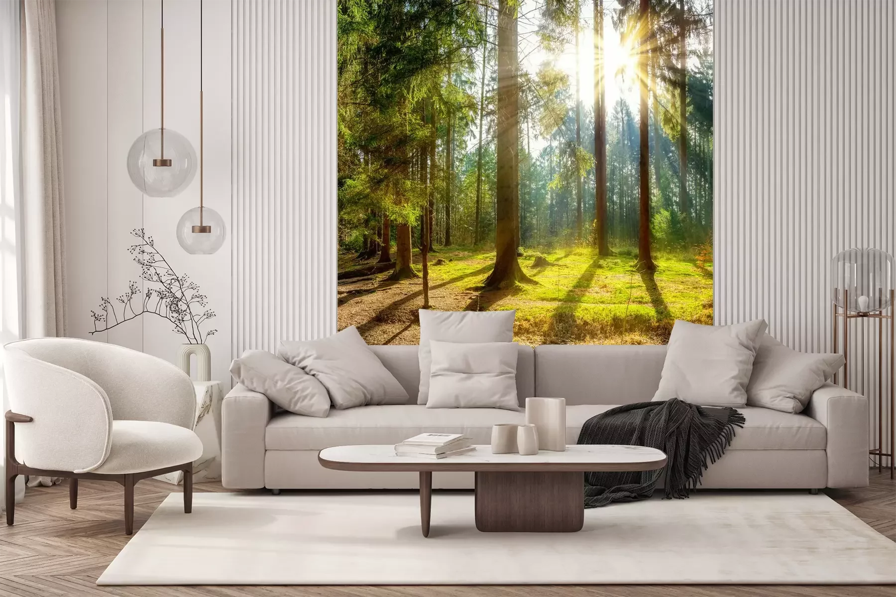Das Material Premium+ besteht aus einer strukturierten Vinyl-Oberschicht und einem Trägermaterial (Vlies) mit einer Grammatur von 255 g/m², das kleine Unebenheiten der Wand zuverlässig kaschiert. Die feine Sandstruktur verleiht der Oberfläche eine luxuriöse Haptik, während das halbmatte Finish die Tiefe der Farben betont. Das Material ist dampfdurchlässig – so kann diese Fototapete auch in Küchen und Badezimmern eingesetzt werden. Die maximale Breite einer Tapetenbahn beträgt 100 cm. Bei größeren Abmessungen besteht die Fototapete aus mehreren gleich großen Bahnen. Der Kleber wird direkt auf die Wand aufgetragen, und die Fototapete wird auf Stoß angebracht, was für einen ästhetischen Effekt ohne sichtbare Fugen sorgt. Die Oberfläche ist pflegeleicht und kann bei Bedarf sanft mit einem feuchten Tuch abgewischt werden.