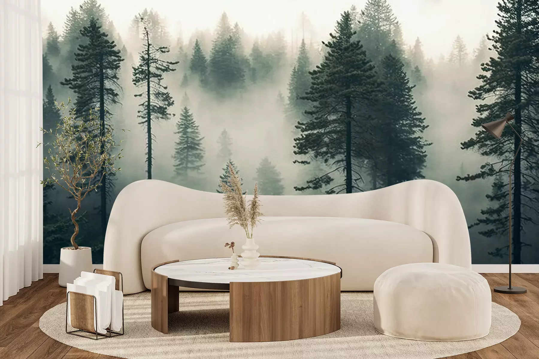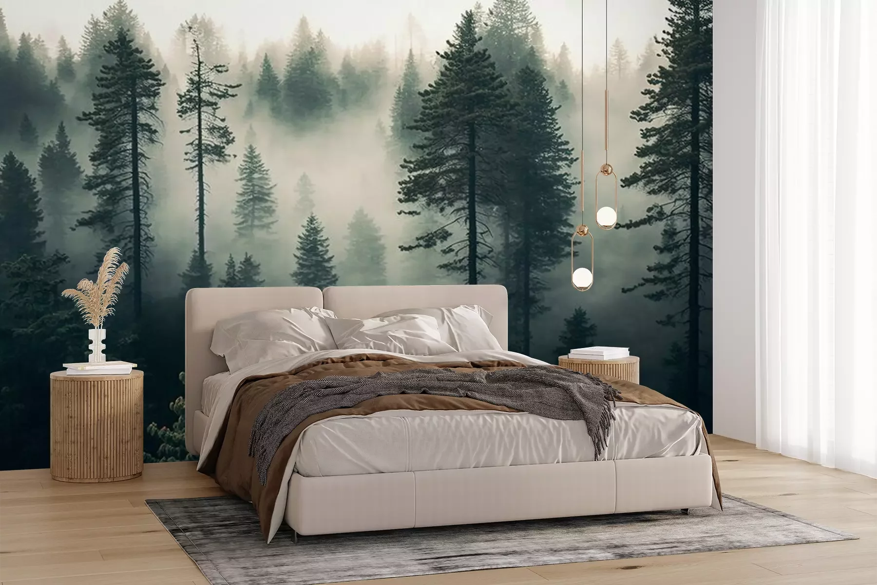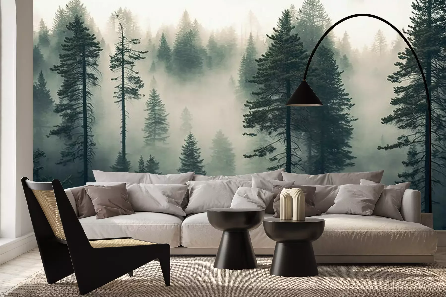 Fototapete Hohe Bäume in einem Nadelwald