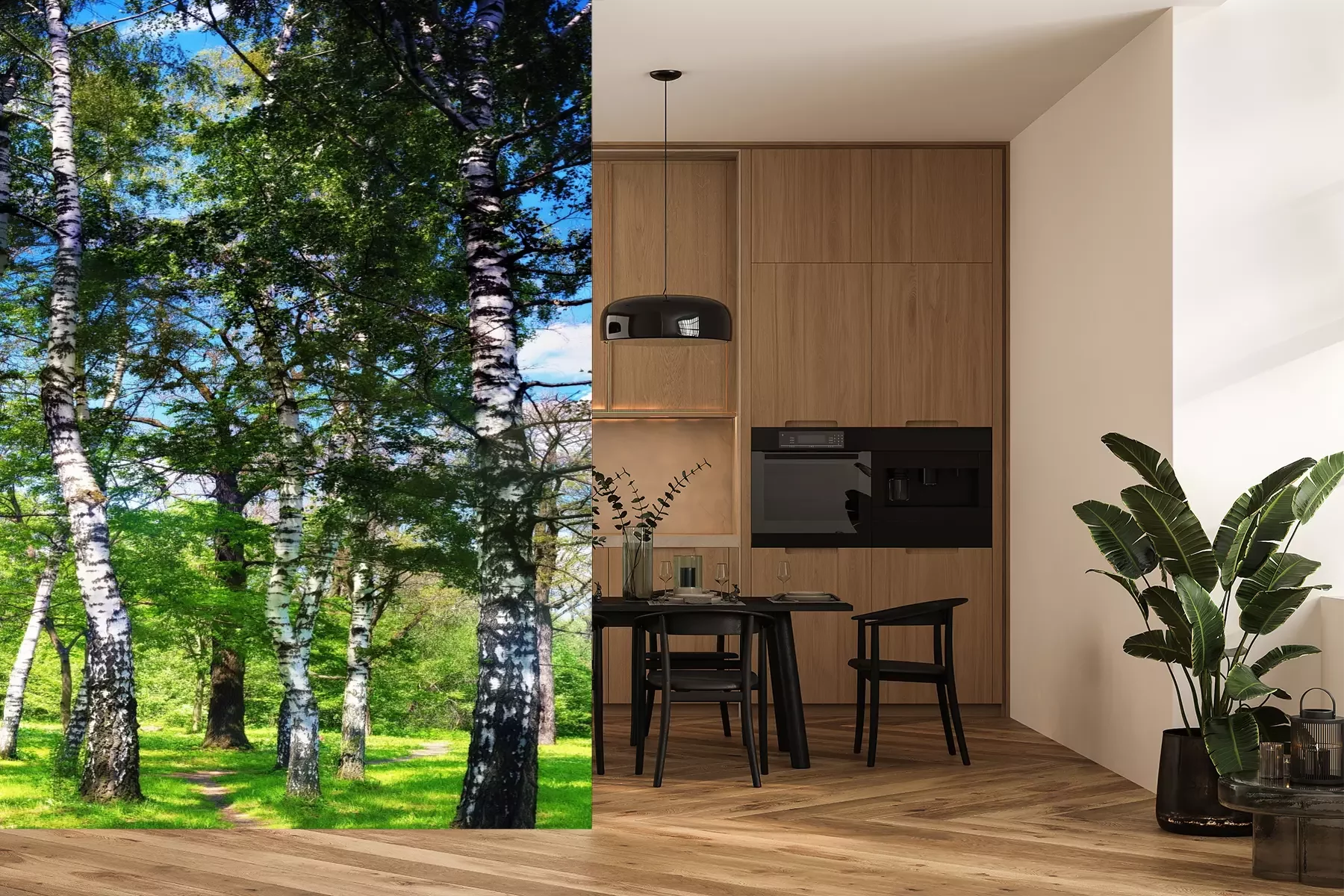 Das Material Premium+ besteht aus einer strukturierten Vinyl-Oberschicht und einem Trägermaterial (Vlies) mit einer Grammatur von 255 g/m², das kleine Unebenheiten der Wand zuverlässig kaschiert. Die feine Sandstruktur verleiht der Oberfläche eine luxuriöse Haptik, während das halbmatte Finish die Tiefe der Farben betont. Das Material ist dampfdurchlässig – so kann diese Fototapete auch in Küchen und Badezimmern eingesetzt werden. Die maximale Breite einer Tapetenbahn beträgt 100 cm. Bei größeren Abmessungen besteht die Fototapete aus mehreren gleich großen Bahnen. Der Kleber wird direkt auf die Wand aufgetragen, und die Fototapete wird auf Stoß angebracht, was für einen ästhetischen Effekt ohne sichtbare Fugen sorgt. Die Oberfläche ist pflegeleicht und kann bei Bedarf sanft mit einem feuchten Tuch abgewischt werden.