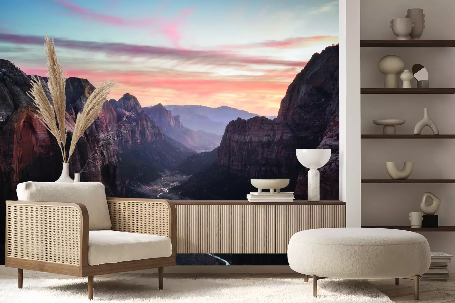 Das Material Premium+ besteht aus einer strukturierten Vinyl-Oberschicht und einem Trägermaterial (Vlies) mit einer Grammatur von 255 g/m², das kleine Unebenheiten der Wand zuverlässig kaschiert. Die feine Sandstruktur verleiht der Oberfläche eine luxuriöse Haptik, während das halbmatte Finish die Tiefe der Farben betont. Das Material ist dampfdurchlässig – so kann diese Fototapete auch in Küchen und Badezimmern eingesetzt werden. Die maximale Breite einer Tapetenbahn beträgt 100 cm. Bei größeren Abmessungen besteht die Fototapete aus mehreren gleich großen Bahnen. Der Kleber wird direkt auf die Wand aufgetragen, und die Fototapete wird auf Stoß angebracht, was für einen ästhetischen Effekt ohne sichtbare Fugen sorgt. Die Oberfläche ist pflegeleicht und kann bei Bedarf sanft mit einem feuchten Tuch abgewischt werden.