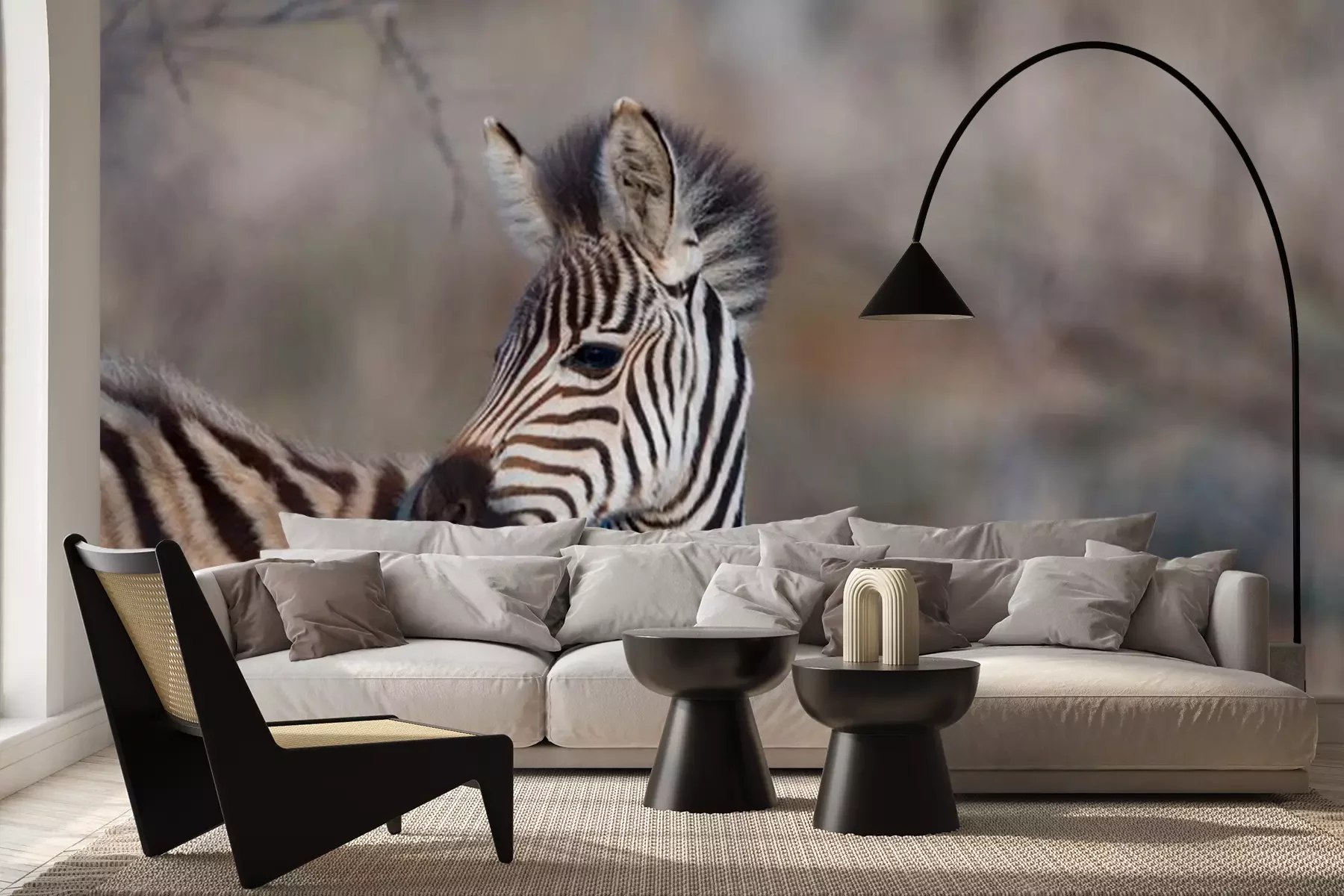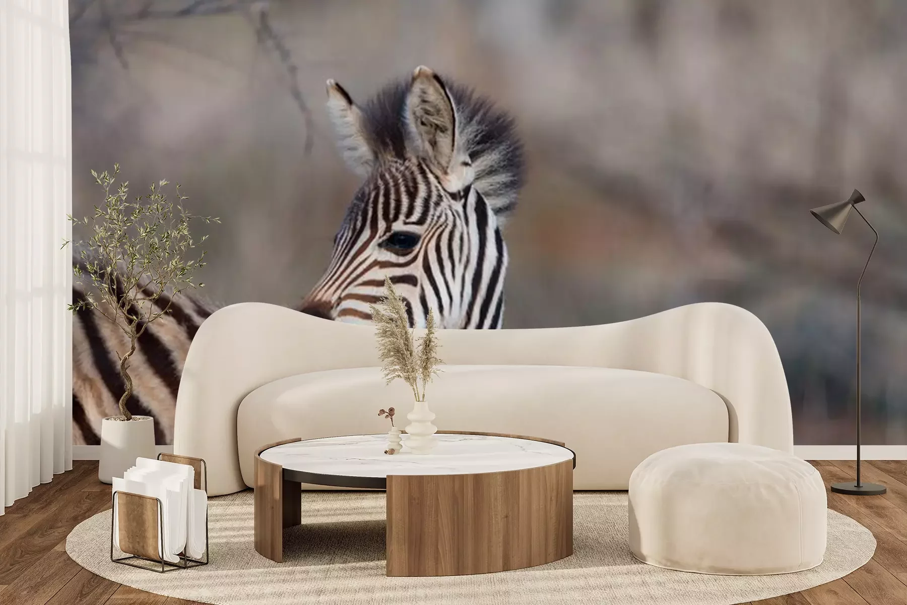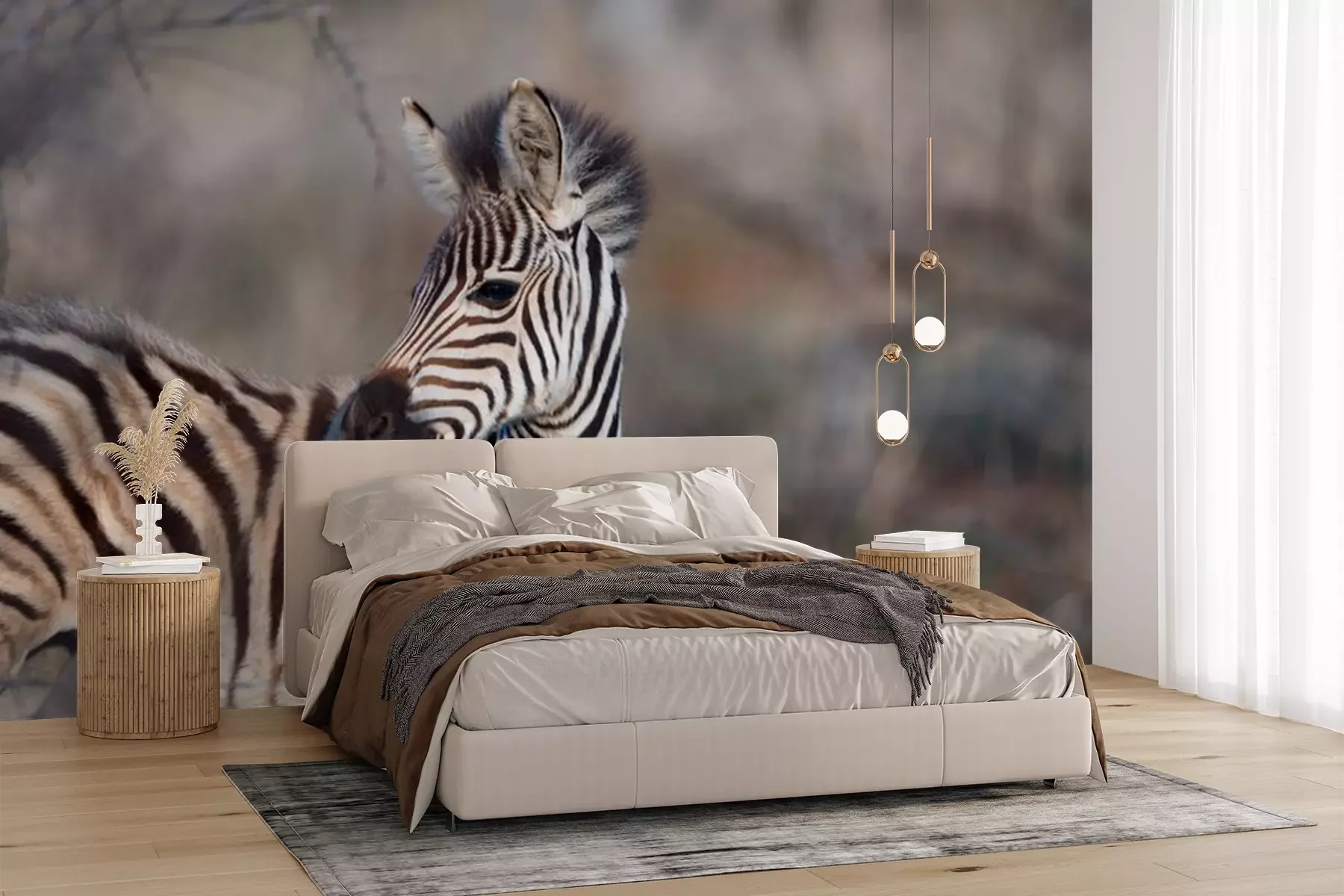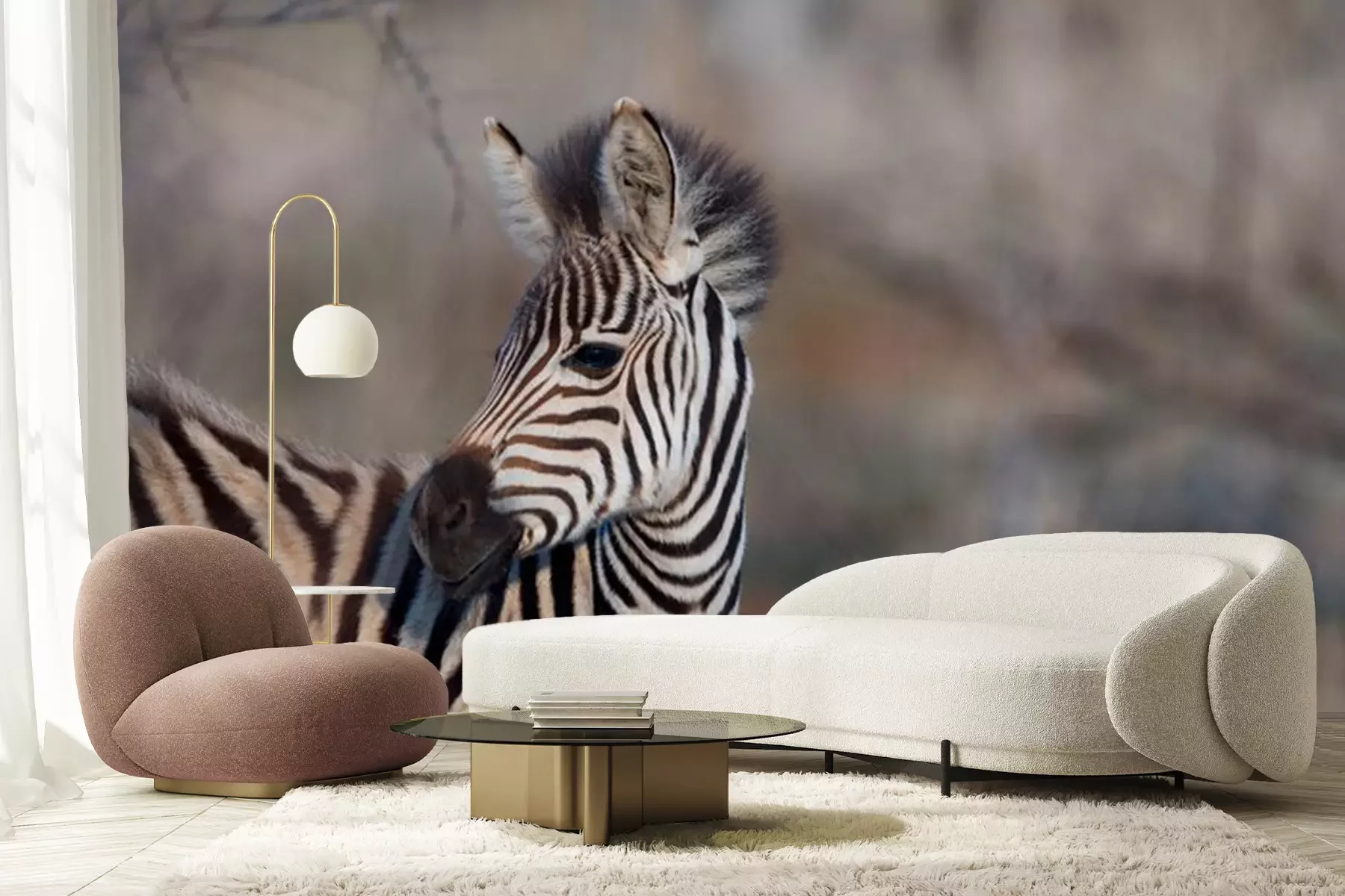 Fototapete hübsches Zebra auf verschwommenem Hintergrund