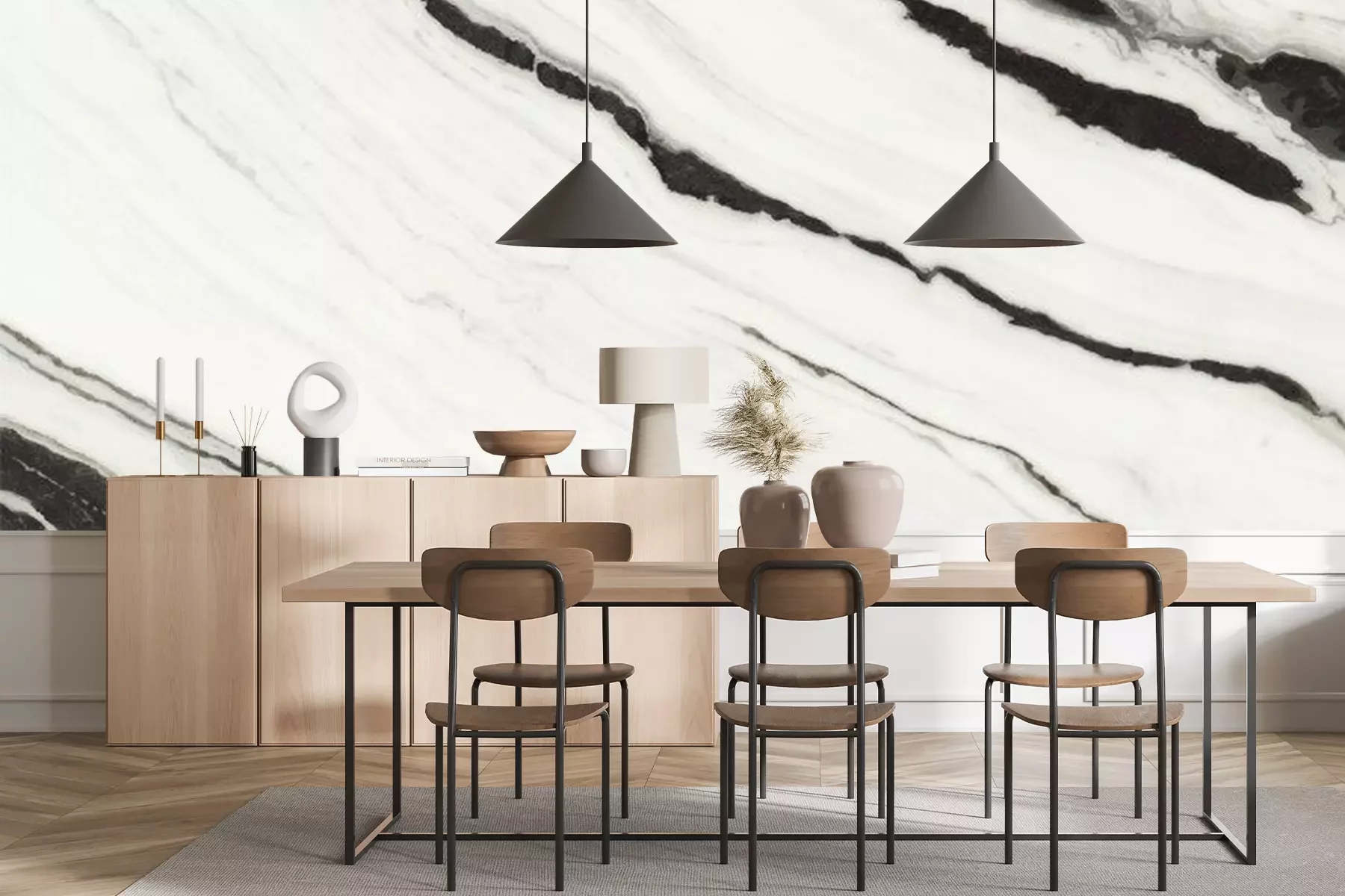 Fototapete Illusion vom glatten schwarz weßem Marmor