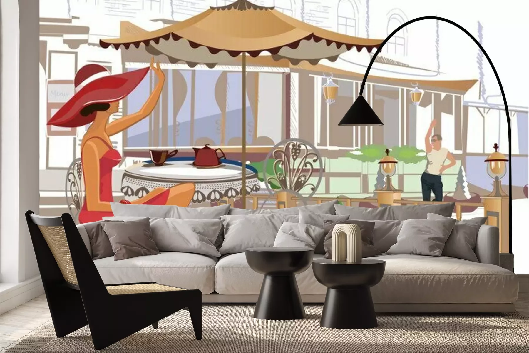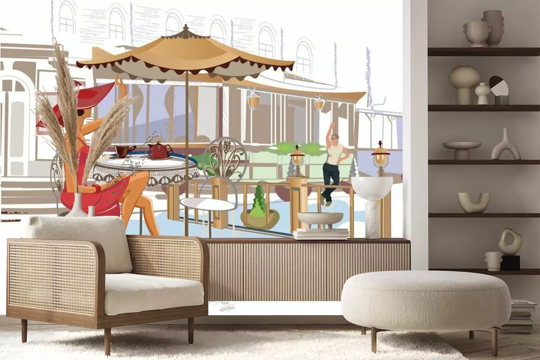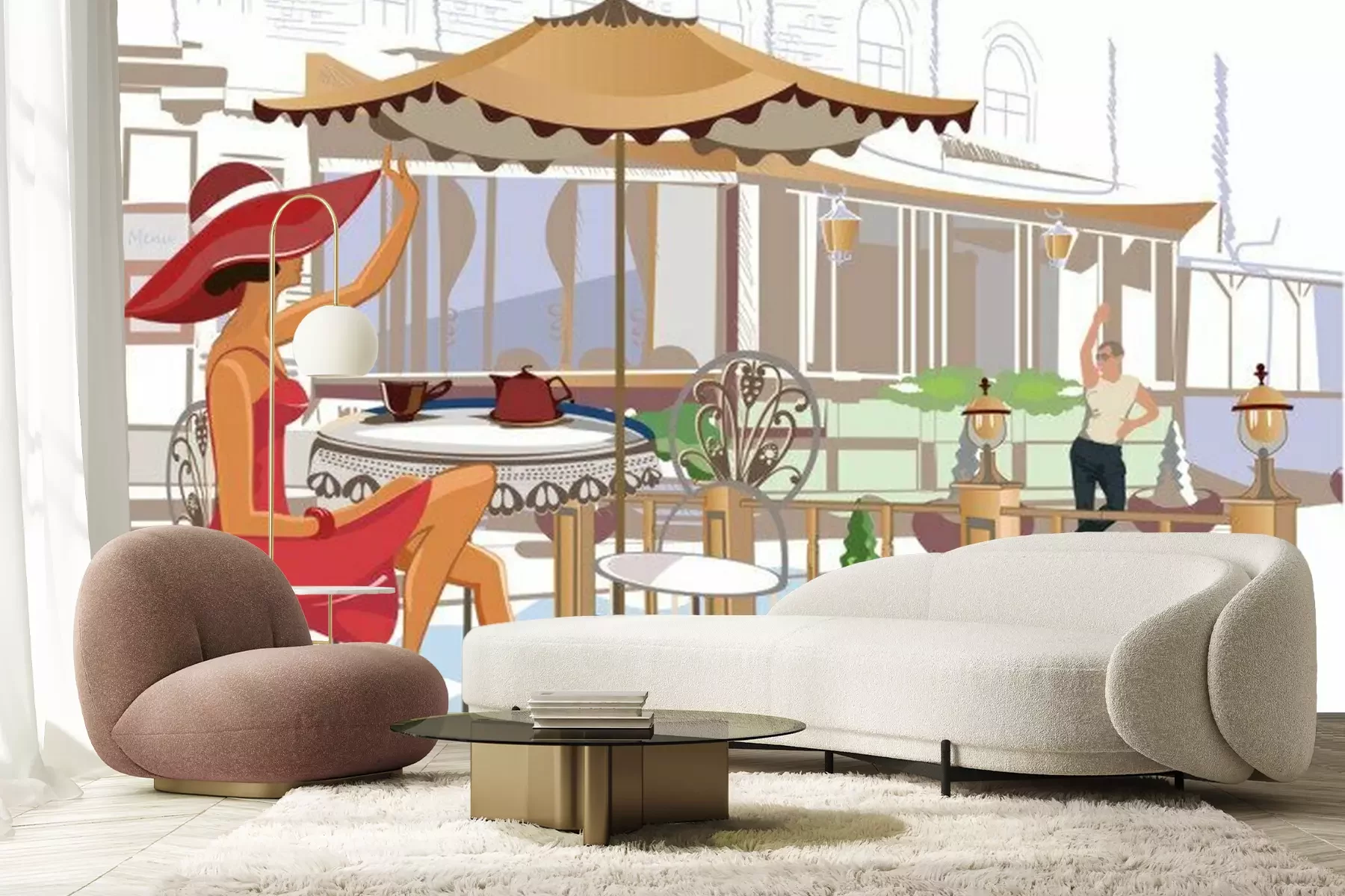 Ein Café in der Altstadt im AquarellstilProblemlose Lieferung durch vertrauenswürdige Spediteure