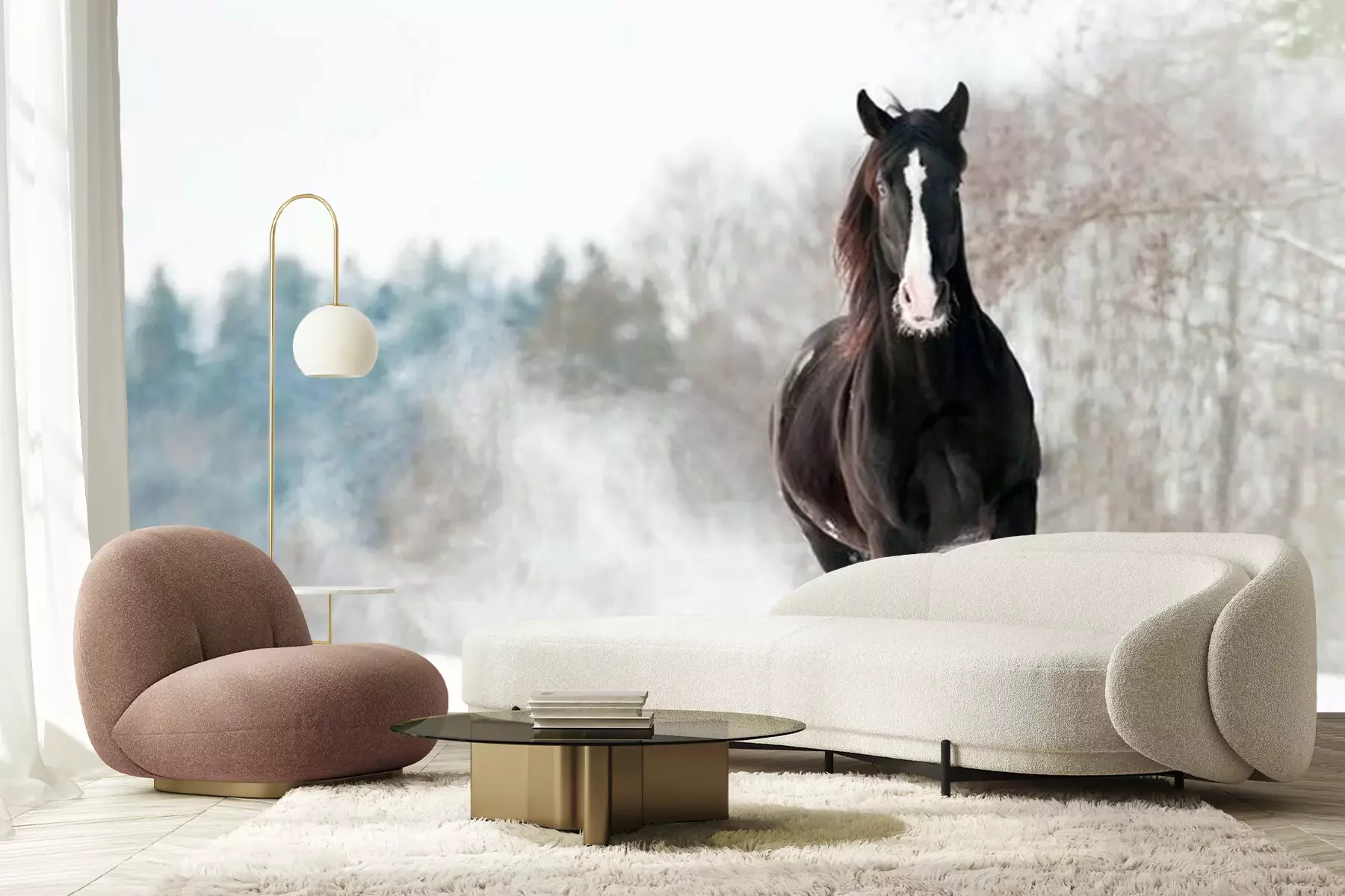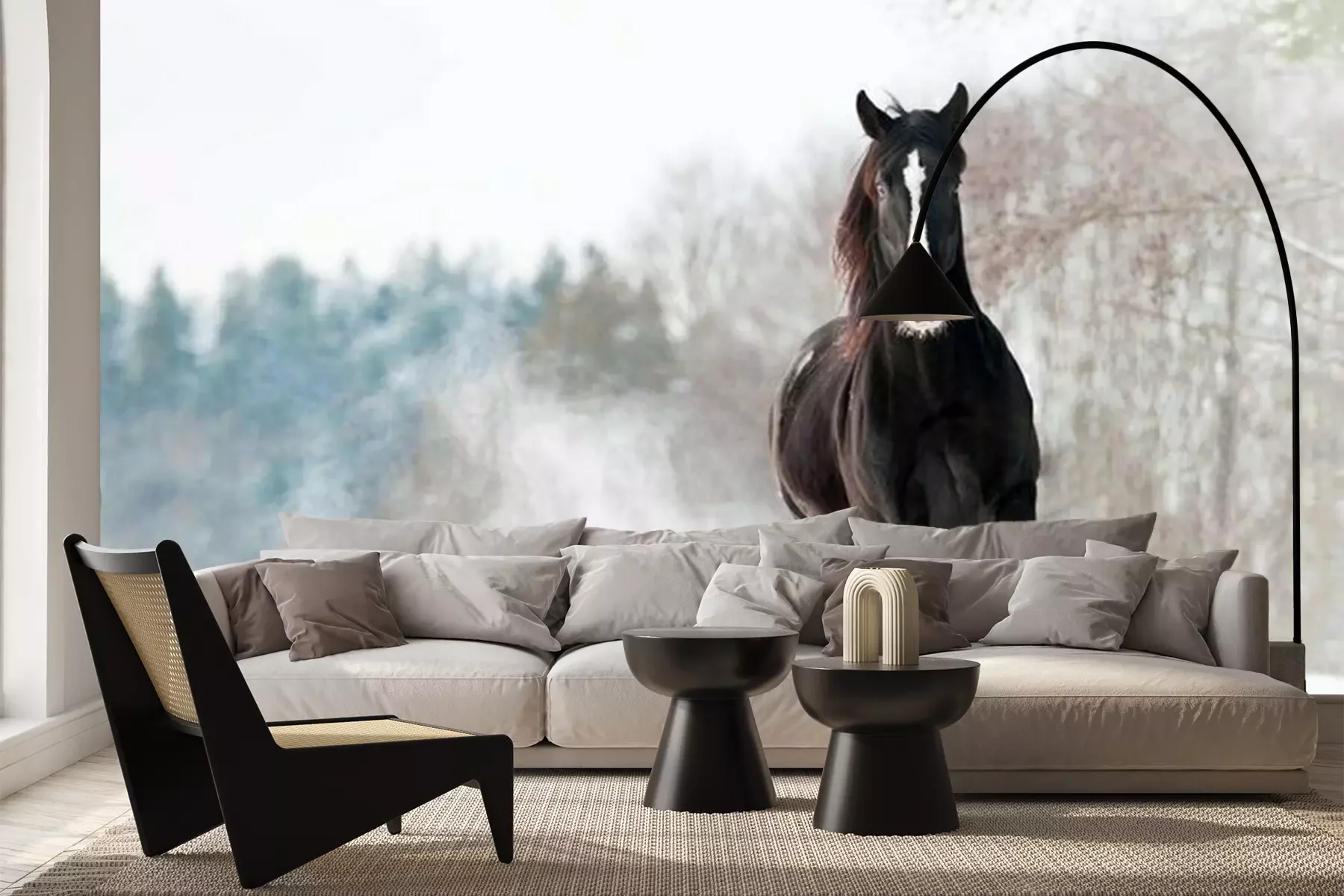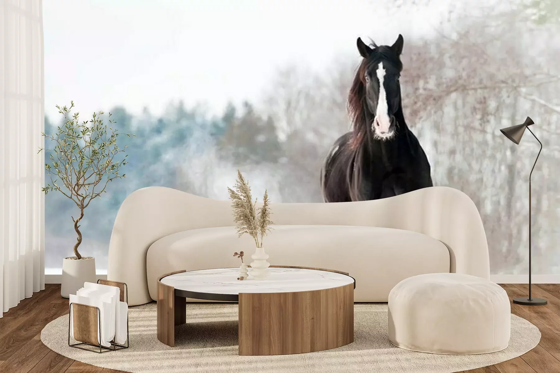Ein geflecktes Pferd im WinterProblemlose Lieferung durch vertrauenswürdige Spediteure