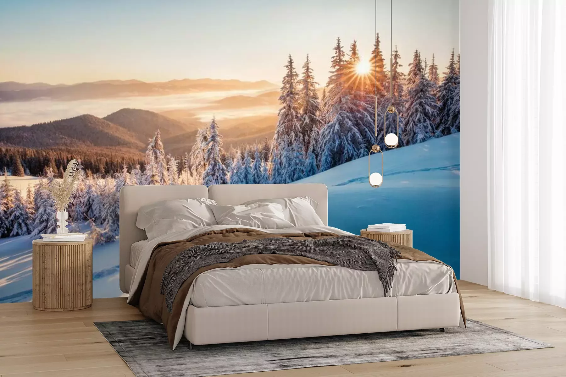 Die Fototapeten werden in Bahnen geliefert. Die Größe und die Anzahl der Bahnen, aus denen die gesamte Fototapete besteht, hängen vom gewählten Material ab. Wenn die Größe die maximale Breite des Materials überschreitet, besteht der Ausdruck aus mehreren gleich großen Bahnen.