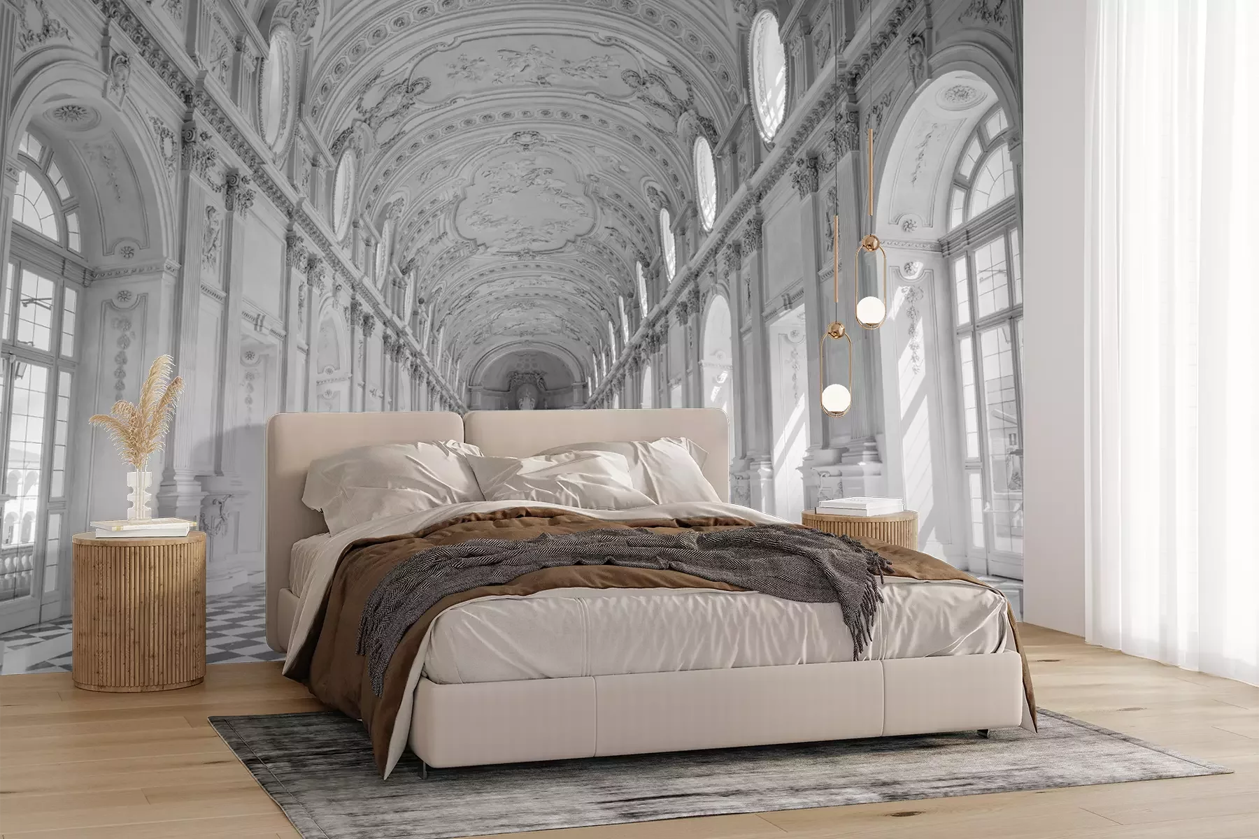Die Fototapeten werden in Bahnen geliefert. Die Größe und die Anzahl der Bahnen, aus denen die gesamte Fototapete besteht, hängen vom gewählten Material ab. Wenn die Größe die maximale Breite des Materials überschreitet, besteht der Ausdruck aus mehreren gleich großen Bahnen.