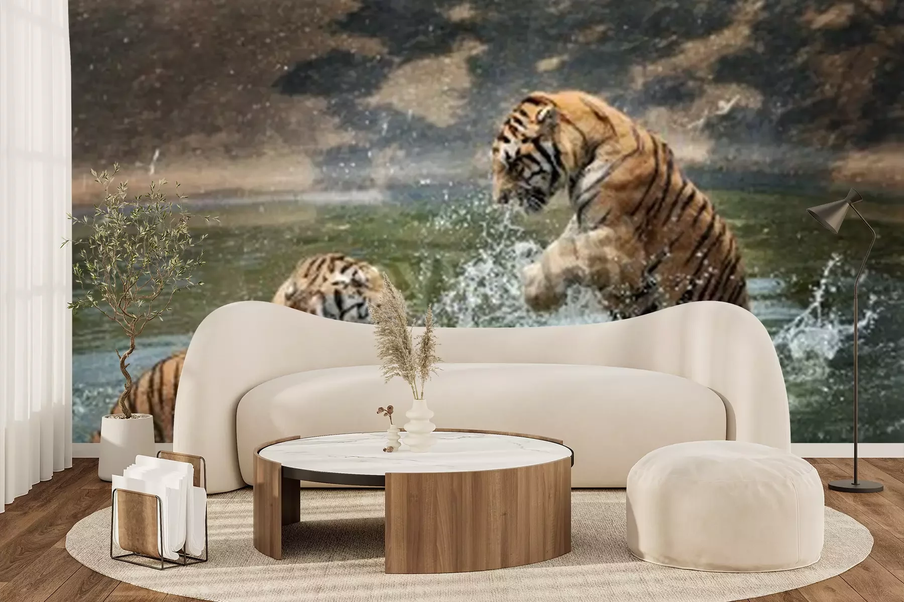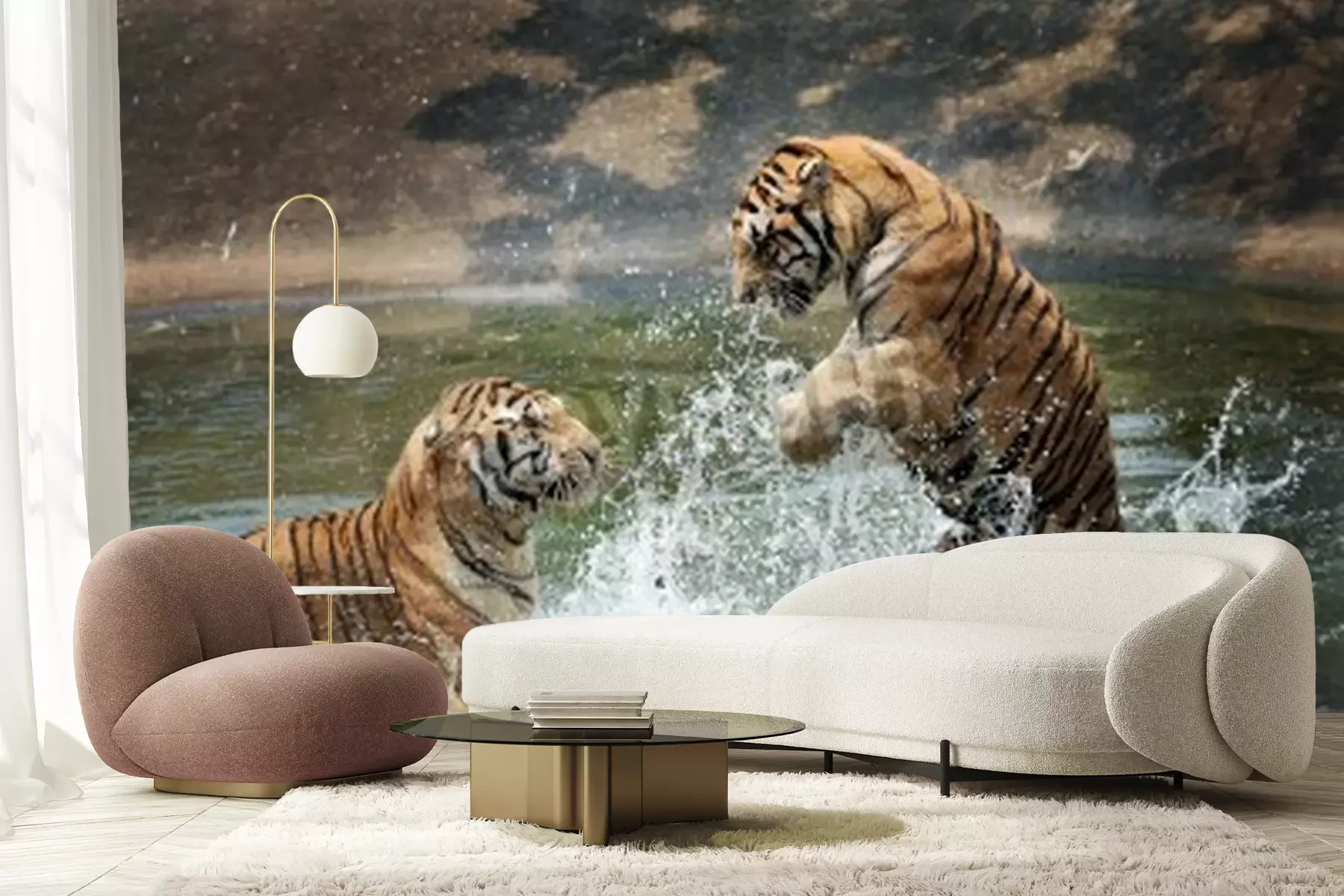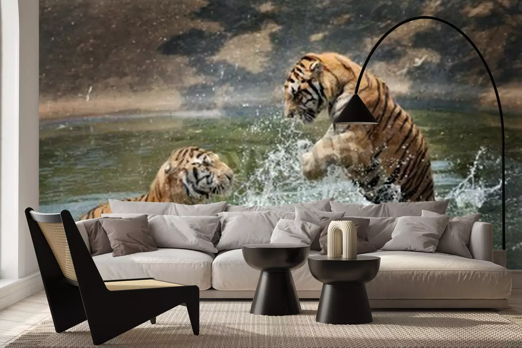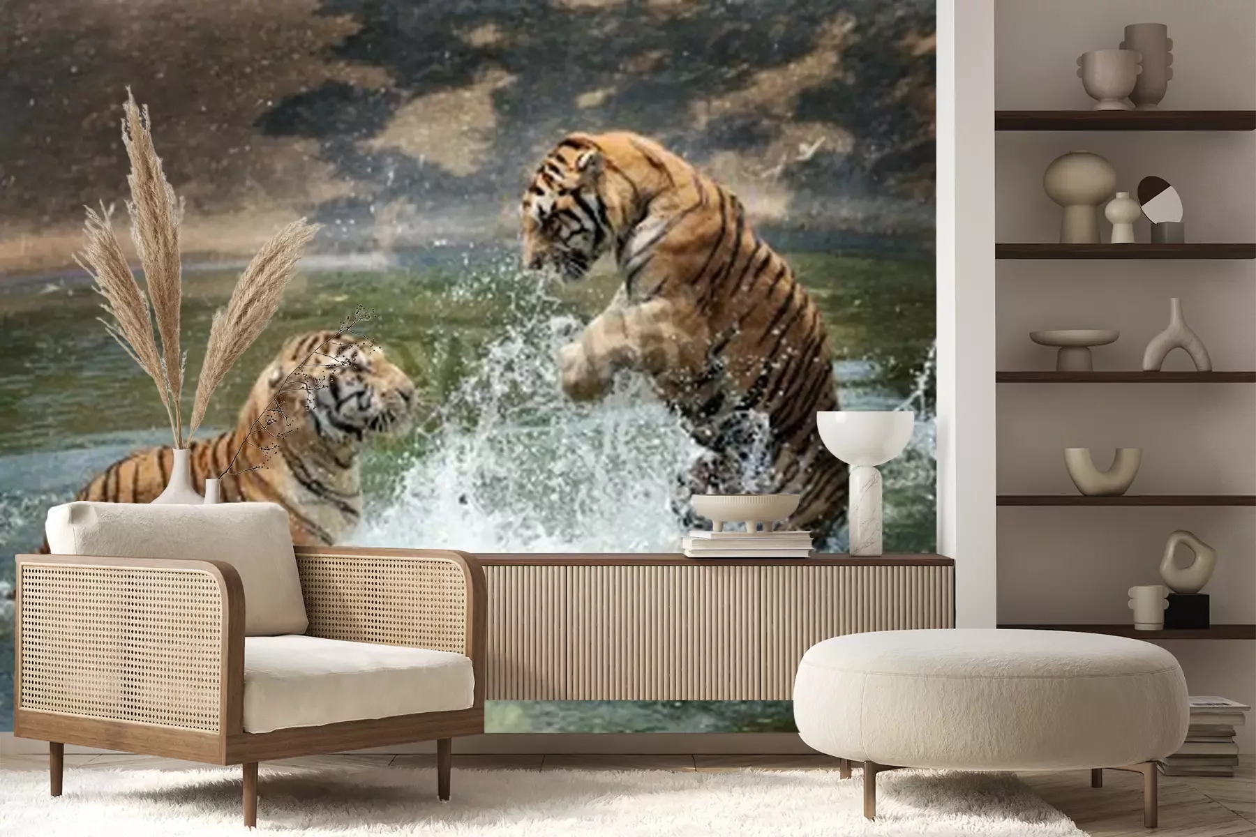 Fototapete Ins wasser springende tiger