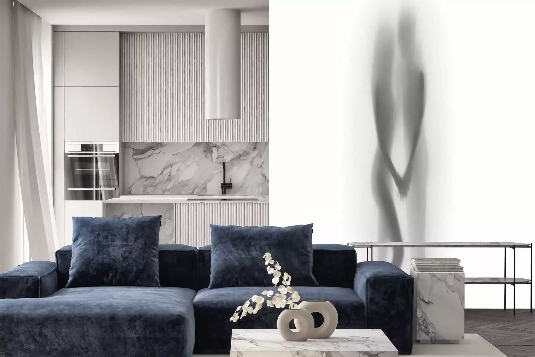 Das Material Premium+ besteht aus einer strukturierten Vinyl-Oberschicht und einem Trägermaterial (Vlies) mit einer Grammatur von 255 g/m², das kleine Unebenheiten der Wand zuverlässig kaschiert. Die feine Sandstruktur verleiht der Oberfläche eine luxuriöse Haptik, während das halbmatte Finish die Tiefe der Farben betont. Das Material ist dampfdurchlässig – so kann diese Fototapete auch in Küchen und Badezimmern eingesetzt werden. Die maximale Breite einer Tapetenbahn beträgt 100 cm. Bei größeren Abmessungen besteht die Fototapete aus mehreren gleich großen Bahnen. Der Kleber wird direkt auf die Wand aufgetragen, und die Fototapete wird auf Stoß angebracht, was für einen ästhetischen Effekt ohne sichtbare Fugen sorgt. Die Oberfläche ist pflegeleicht und kann bei Bedarf sanft mit einem feuchten Tuch abgewischt werden.