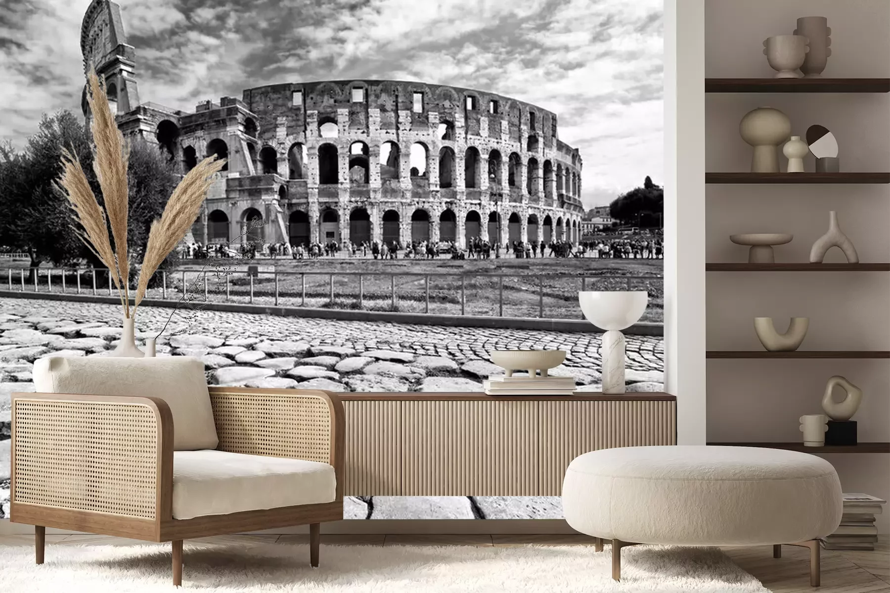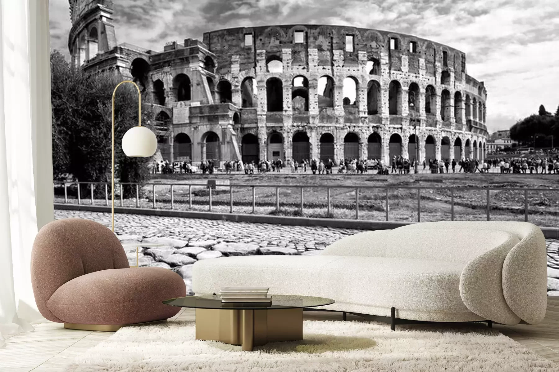 Schwarz-weißes majestätisches KolosseumProblemlose Lieferung durch vertrauenswürdige Spediteure