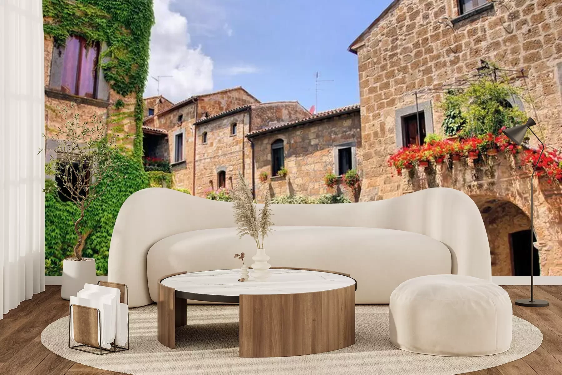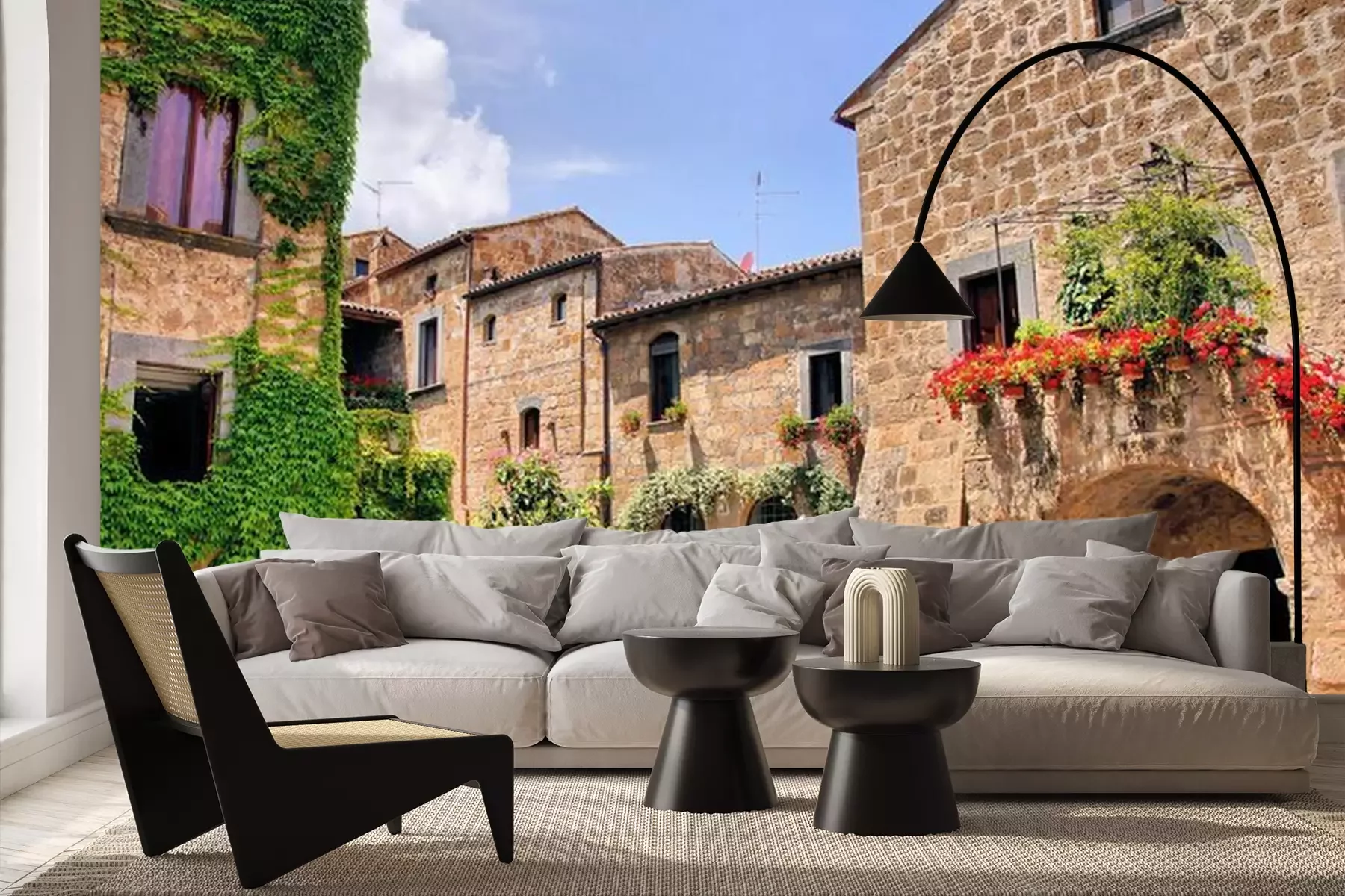 Das Material Premium+ besteht aus einer strukturierten Vinyl-Oberschicht und einem Trägermaterial (Vlies) mit einer Grammatur von 255 g/m², das kleine Unebenheiten der Wand zuverlässig kaschiert. Die feine Sandstruktur verleiht der Oberfläche eine luxuriöse Haptik, während das halbmatte Finish die Tiefe der Farben betont. Das Material ist dampfdurchlässig – so kann diese Fototapete auch in Küchen und Badezimmern eingesetzt werden. Die maximale Breite einer Tapetenbahn beträgt 100 cm. Bei größeren Abmessungen besteht die Fototapete aus mehreren gleich großen Bahnen. Der Kleber wird direkt auf die Wand aufgetragen, und die Fototapete wird auf Stoß angebracht, was für einen ästhetischen Effekt ohne sichtbare Fugen sorgt. Die Oberfläche ist pflegeleicht und kann bei Bedarf sanft mit einem feuchten Tuch abgewischt werden.