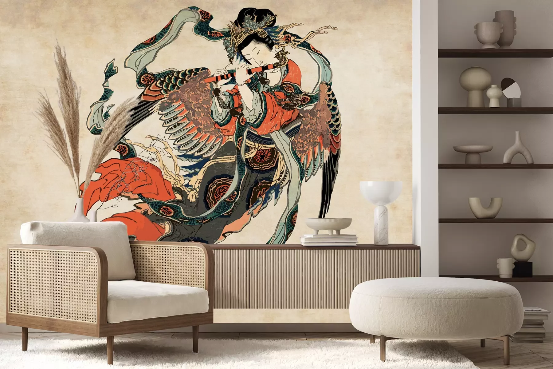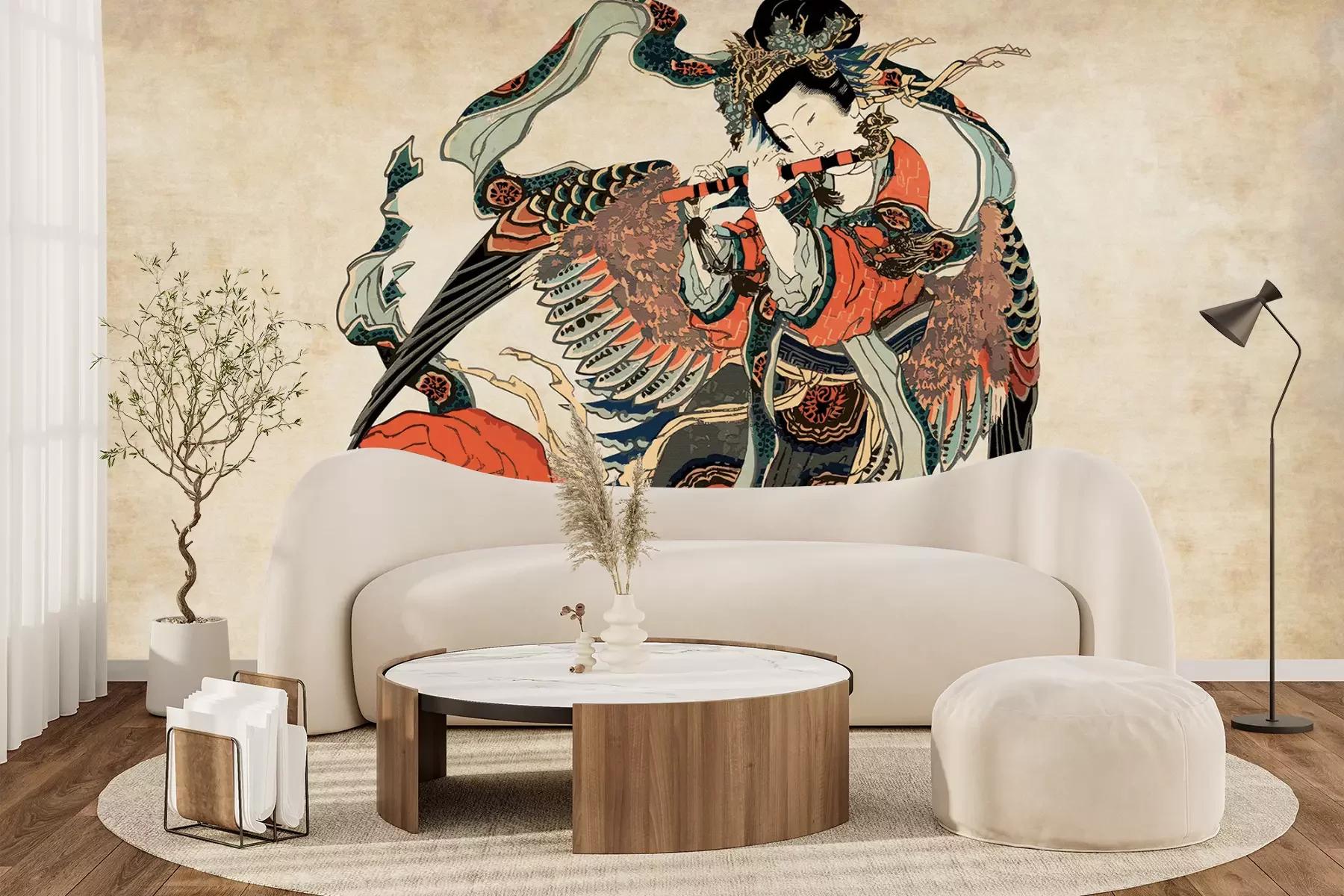 Das Material Premium+ besteht aus einer strukturierten Vinyl-Oberschicht und einem Trägermaterial (Vlies) mit einer Grammatur von 255 g/m², das kleine Unebenheiten der Wand zuverlässig kaschiert. Die feine Sandstruktur verleiht der Oberfläche eine luxuriöse Haptik, während das halbmatte Finish die Tiefe der Farben betont. Das Material ist dampfdurchlässig – so kann diese Fototapete auch in Küchen und Badezimmern eingesetzt werden. Die maximale Breite einer Tapetenbahn beträgt 100 cm. Bei größeren Abmessungen besteht die Fototapete aus mehreren gleich großen Bahnen. Der Kleber wird direkt auf die Wand aufgetragen, und die Fototapete wird auf Stoß angebracht, was für einen ästhetischen Effekt ohne sichtbare Fugen sorgt. Die Oberfläche ist pflegeleicht und kann bei Bedarf sanft mit einem feuchten Tuch abgewischt werden.