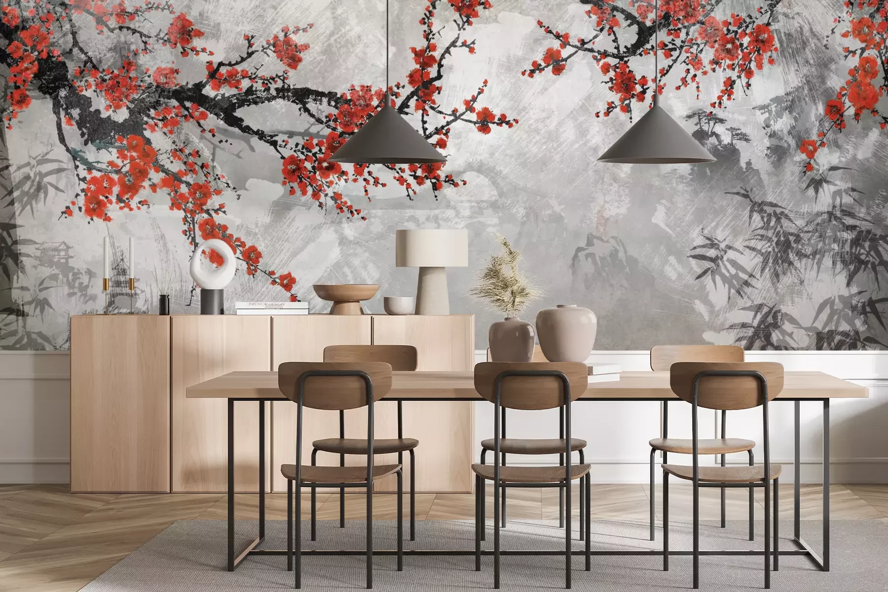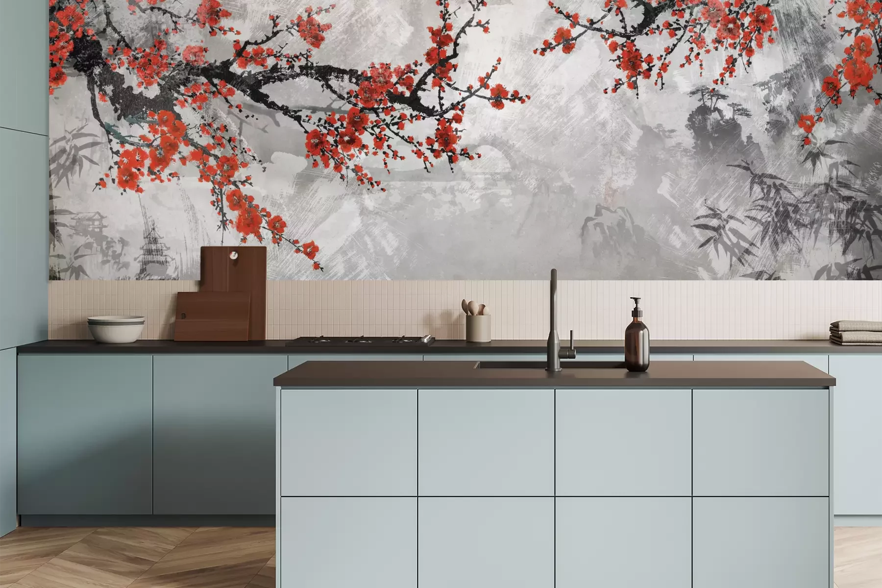 Das Material Premium+ besteht aus einer strukturierten Vinyl-Oberschicht und einem Trägermaterial (Vlies) mit einer Grammatur von 255 g/m², das kleine Unebenheiten der Wand zuverlässig kaschiert. Die feine Sandstruktur verleiht der Oberfläche eine luxuriöse Haptik, während das halbmatte Finish die Tiefe der Farben betont. Das Material ist dampfdurchlässig – so kann diese Fototapete auch in Küchen und Badezimmern eingesetzt werden. Die maximale Breite einer Tapetenbahn beträgt 100 cm. Bei größeren Abmessungen besteht die Fototapete aus mehreren gleich großen Bahnen. Der Kleber wird direkt auf die Wand aufgetragen, und die Fototapete wird auf Stoß angebracht, was für einen ästhetischen Effekt ohne sichtbare Fugen sorgt. Die Oberfläche ist pflegeleicht und kann bei Bedarf sanft mit einem feuchten Tuch abgewischt werden.