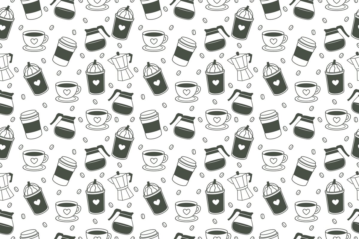 Fototapete: Kaffeemuster mit Bohnen und eleganten Tassen
