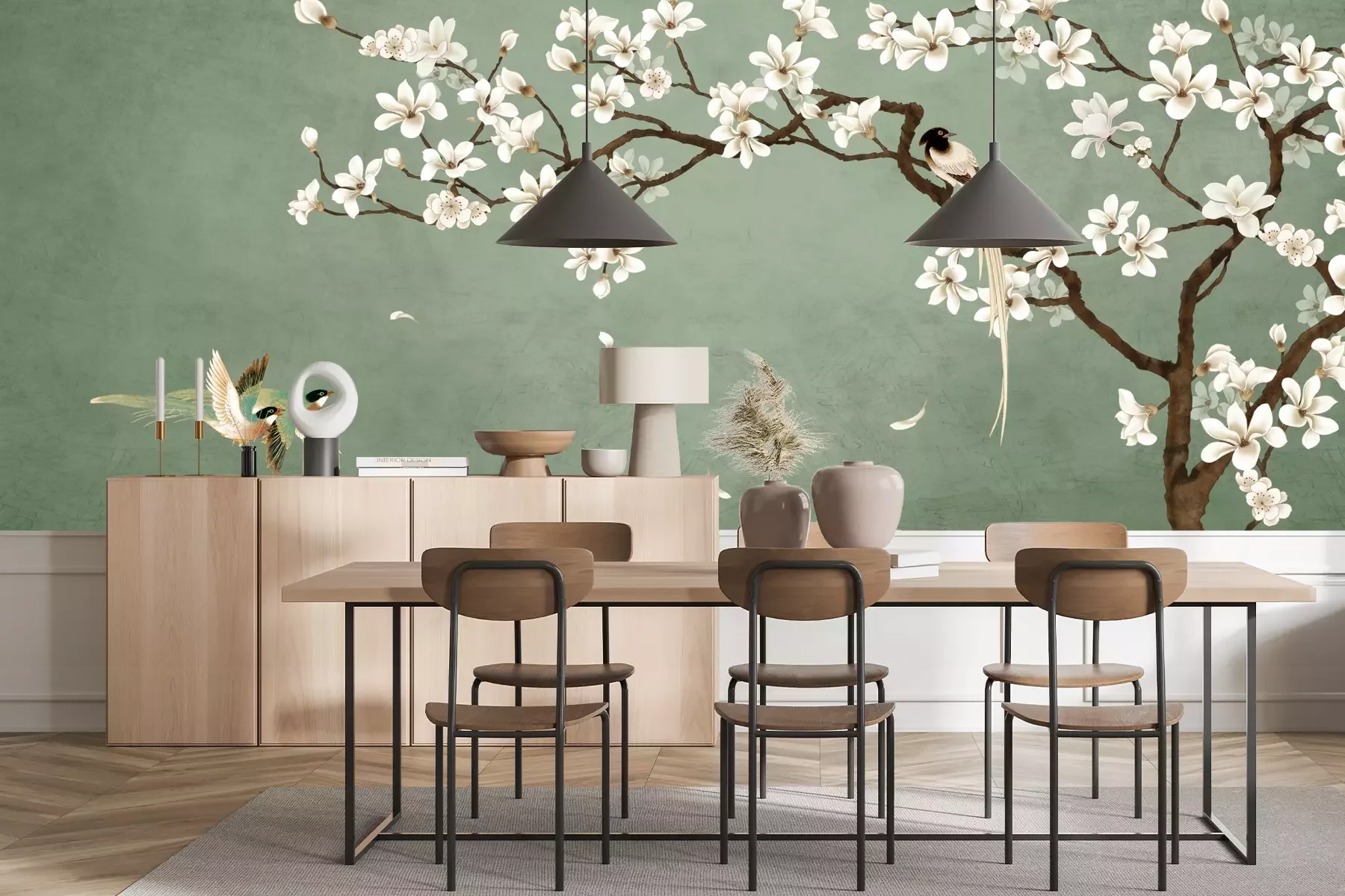 Das Material Premium+ besteht aus einer strukturierten Vinyl-Oberschicht und einem Trägermaterial (Vlies) mit einer Grammatur von 255 g/m², das kleine Unebenheiten der Wand zuverlässig kaschiert. Die feine Sandstruktur verleiht der Oberfläche eine luxuriöse Haptik, während das halbmatte Finish die Tiefe der Farben betont. Das Material ist dampfdurchlässig – so kann diese Fototapete auch in Küchen und Badezimmern eingesetzt werden. Die maximale Breite einer Tapetenbahn beträgt 100 cm. Bei größeren Abmessungen besteht die Fototapete aus mehreren gleich großen Bahnen. Der Kleber wird direkt auf die Wand aufgetragen, und die Fototapete wird auf Stoß angebracht, was für einen ästhetischen Effekt ohne sichtbare Fugen sorgt. Die Oberfläche ist pflegeleicht und kann bei Bedarf sanft mit einem feuchten Tuch abgewischt werden.