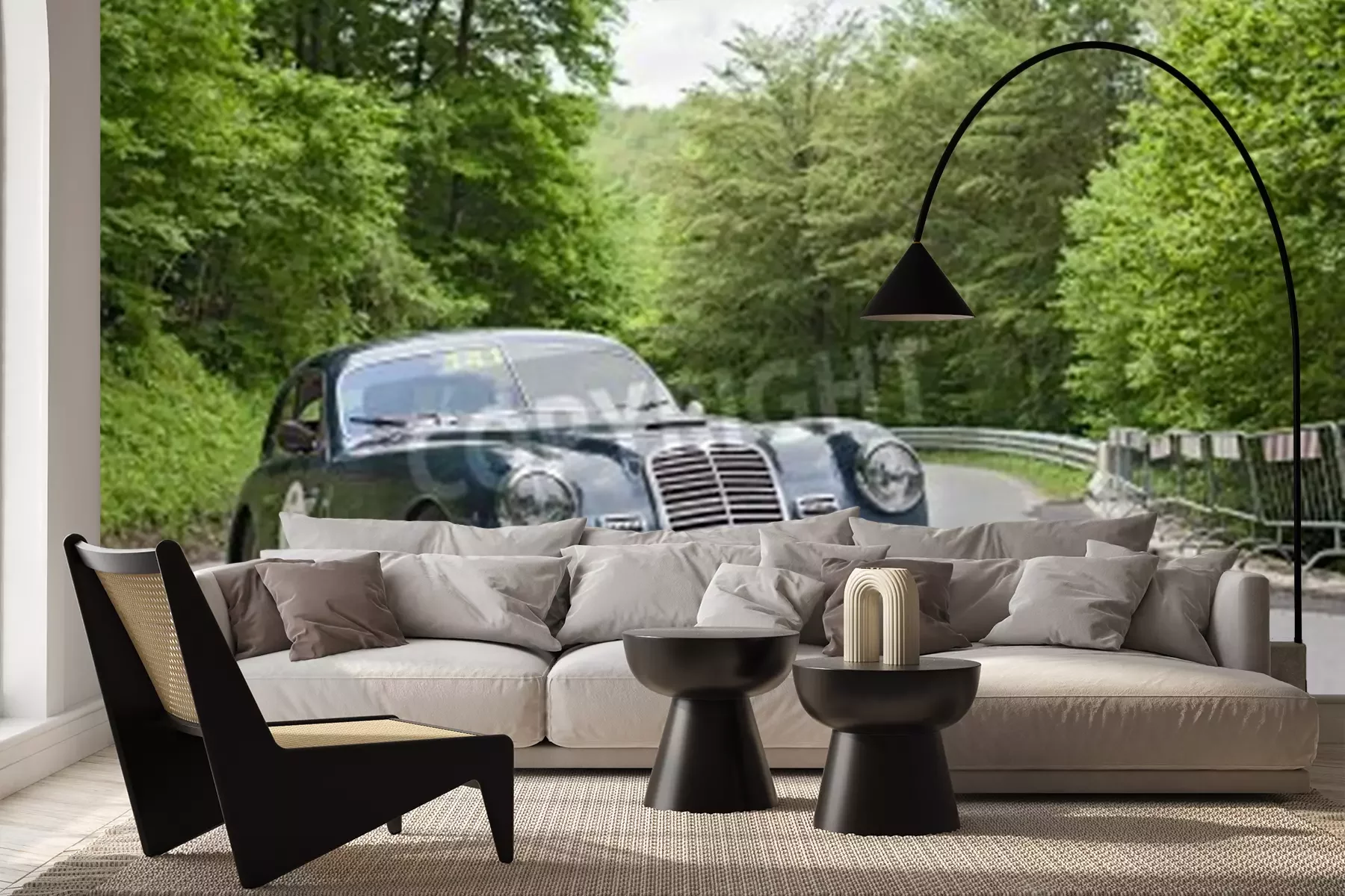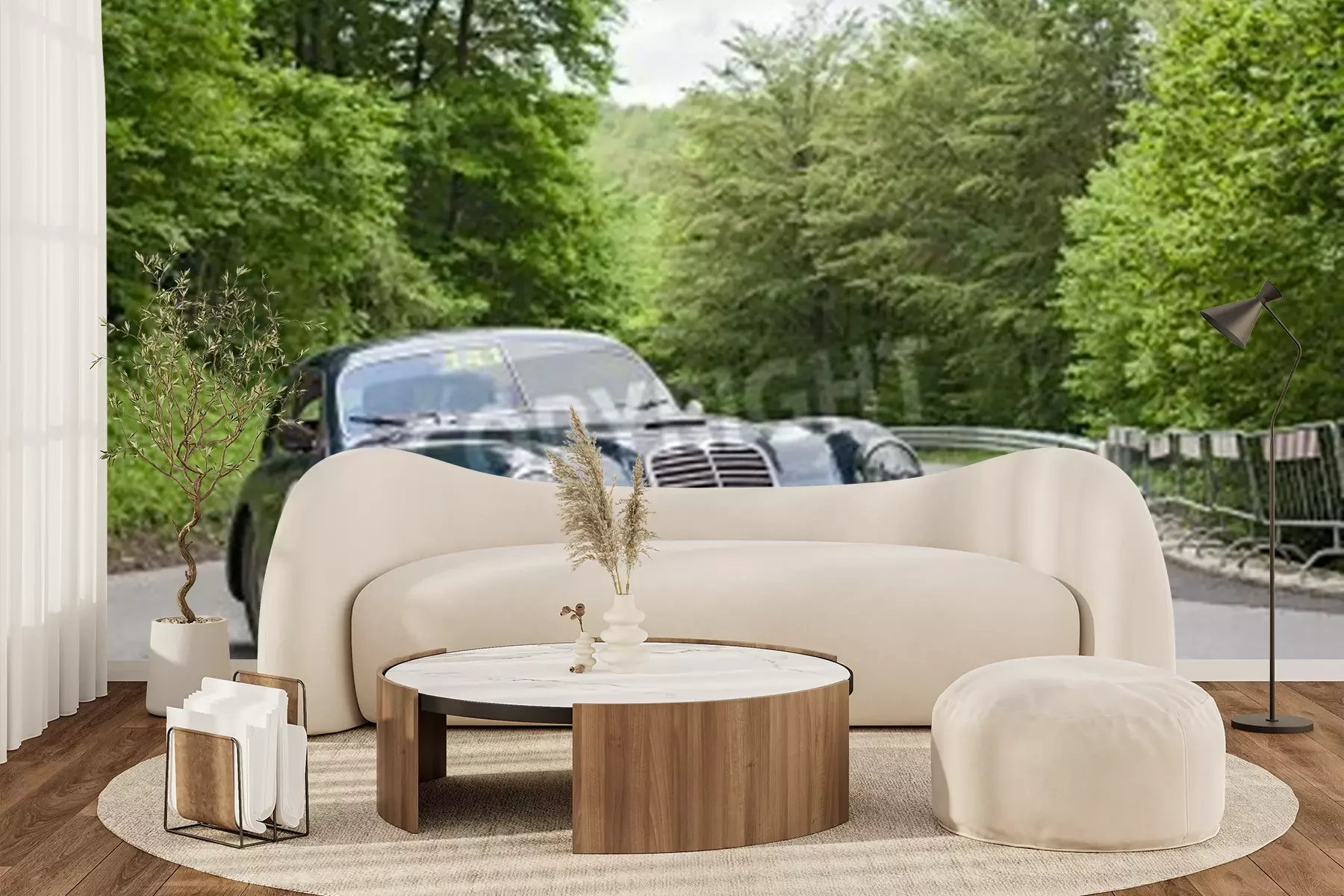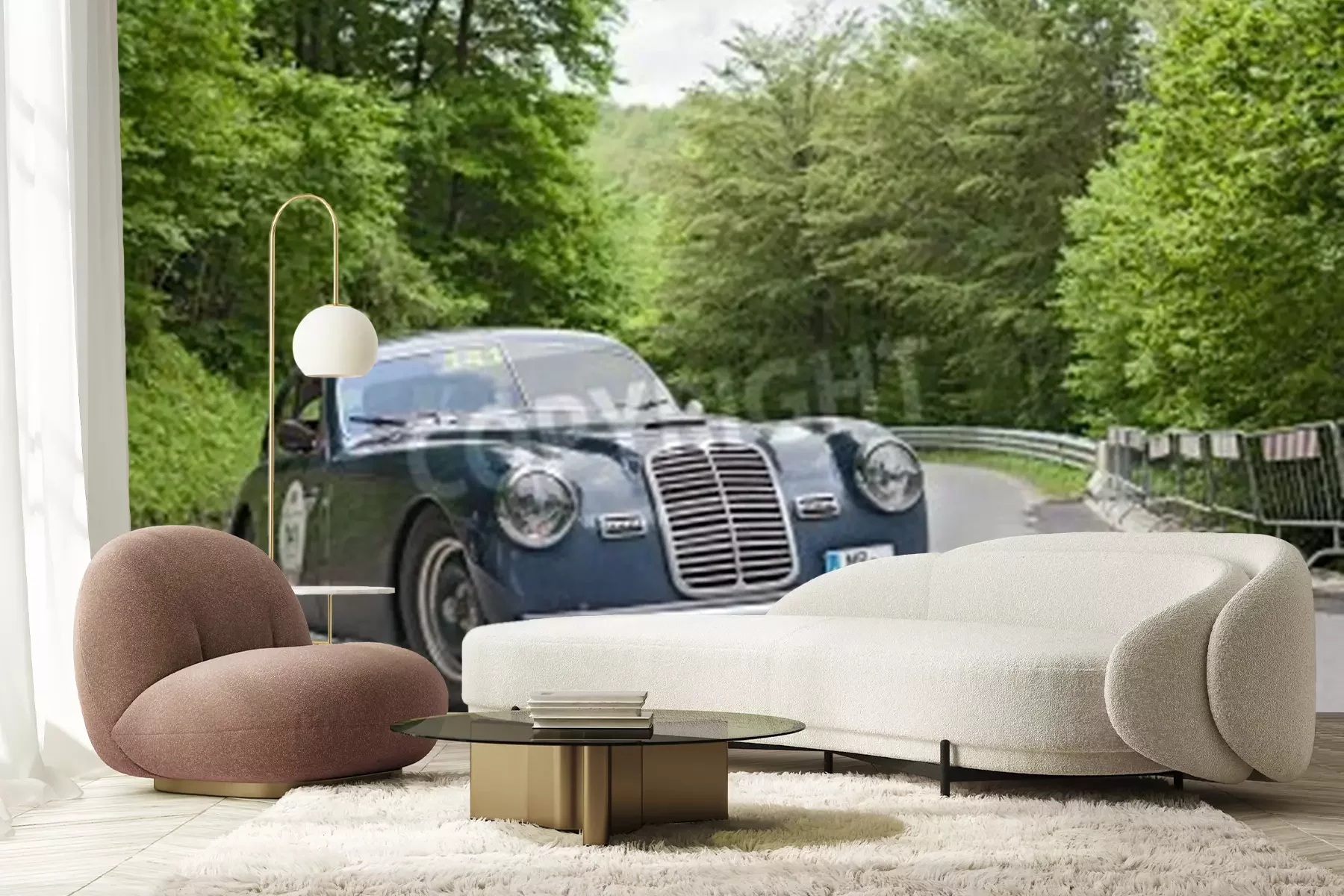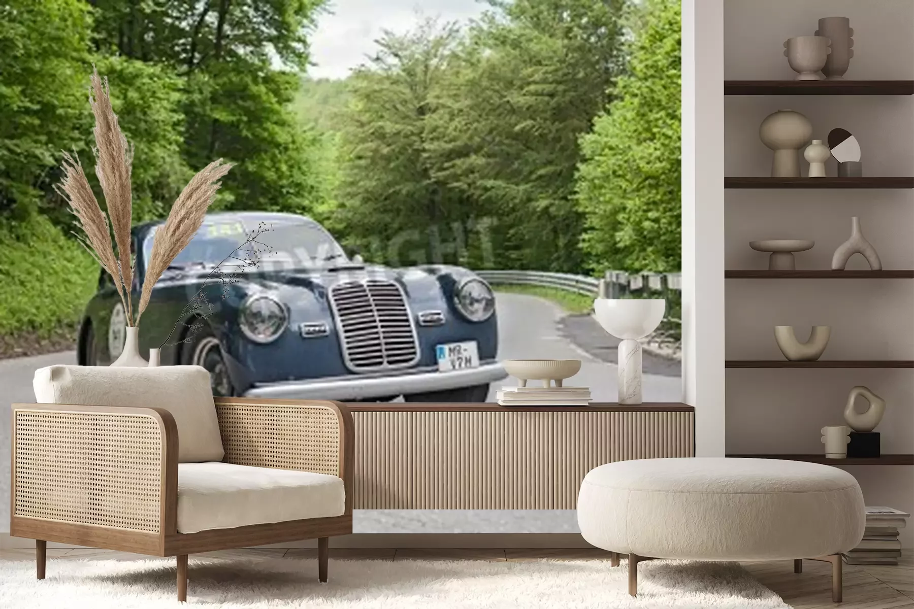 Fototapete Klassisches Auto unter Bäumen