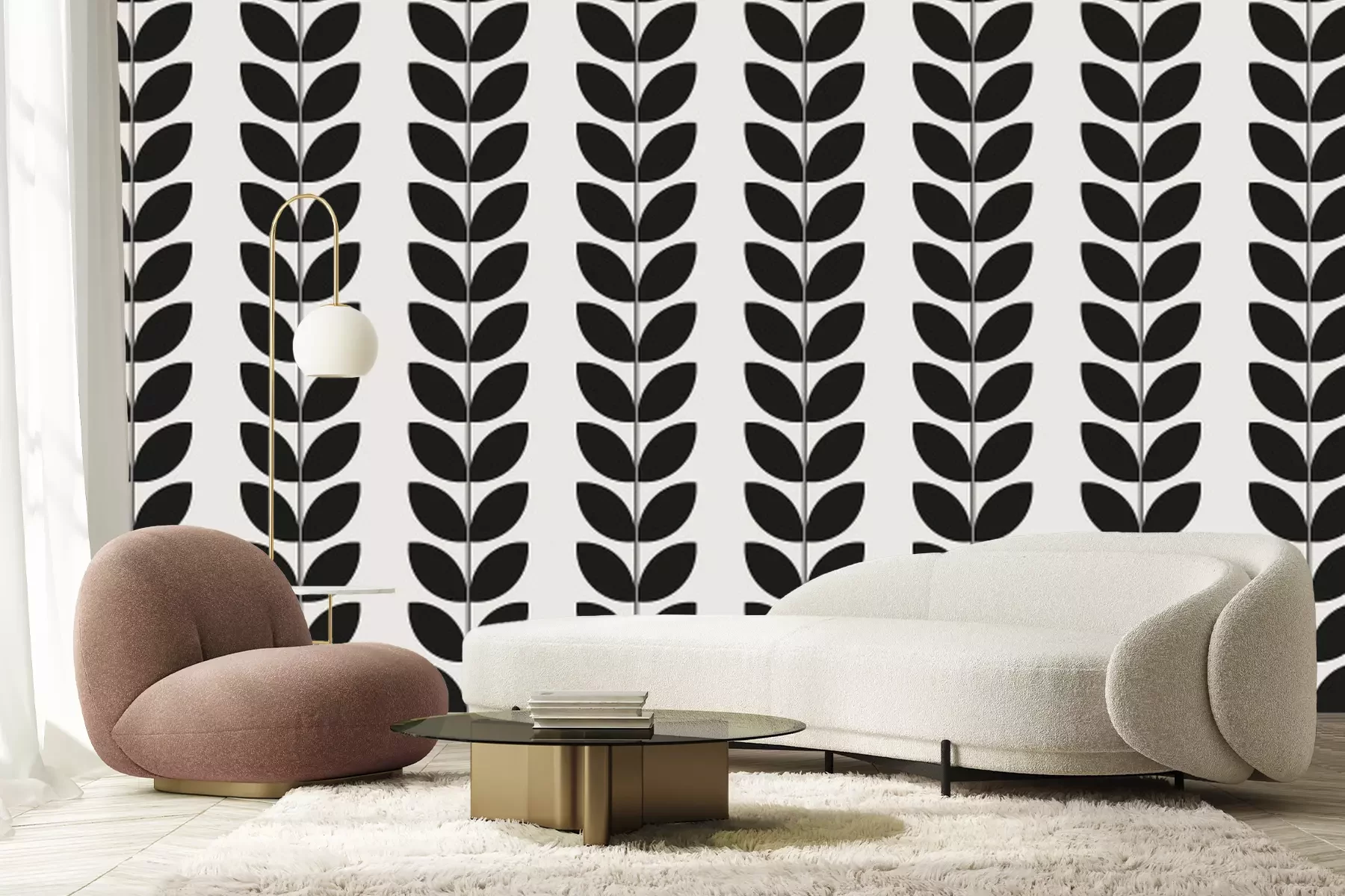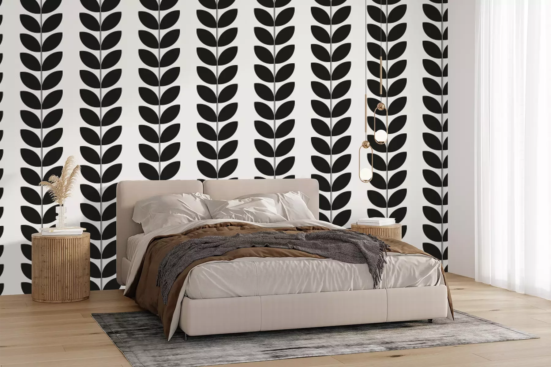 Fototapete Klassisches scandi-schwarzes Blattmuster