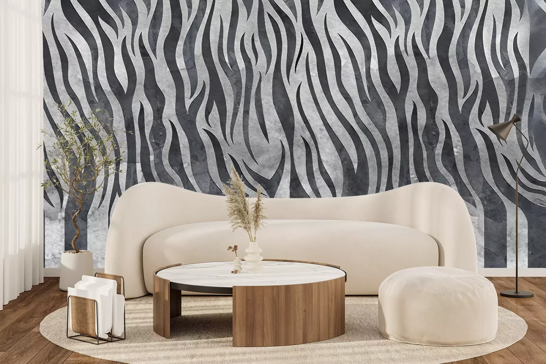 Das Material Standard ist ein hochwertiges Latexmaterial mit einer glatten, matten Oberfläche. Durch den Einsatz von HP-Latex-Drucktechnologie sind die Farben satt, langlebig und UV-beständig. So bleibt das Muster über Jahre hinweg makellos schön. Die verschmutzte Oberfläche dieses Materials kann sanft mit einem trockenen Tuch abgewischt werden. Die maximale Breite einer einzelnen Bahn beträgt 95 cm oder 105 cm – je nach Breite der bestellten Fototapete. Bei Fototapeten mit größeren Abmessungen besteht der Ausdruck aus mehreren gleich großen Tapetenbahnen. Die Fototapete wird auf Stoß angebracht, wodurch die Fugen nahezu unsichtbar sind.