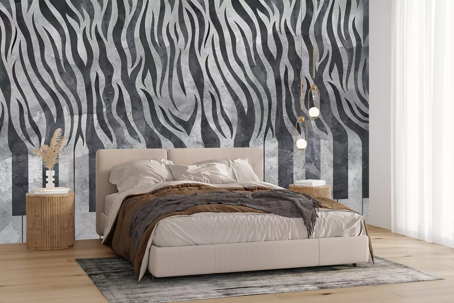 Die Fototapeten werden in Bahnen geliefert. Die Größe und die Anzahl der Bahnen, aus denen die gesamte Fototapete besteht, hängen vom gewählten Material ab. Wenn die Größe die maximale Breite des Materials überschreitet, besteht der Ausdruck aus mehreren gleich großen Bahnen.