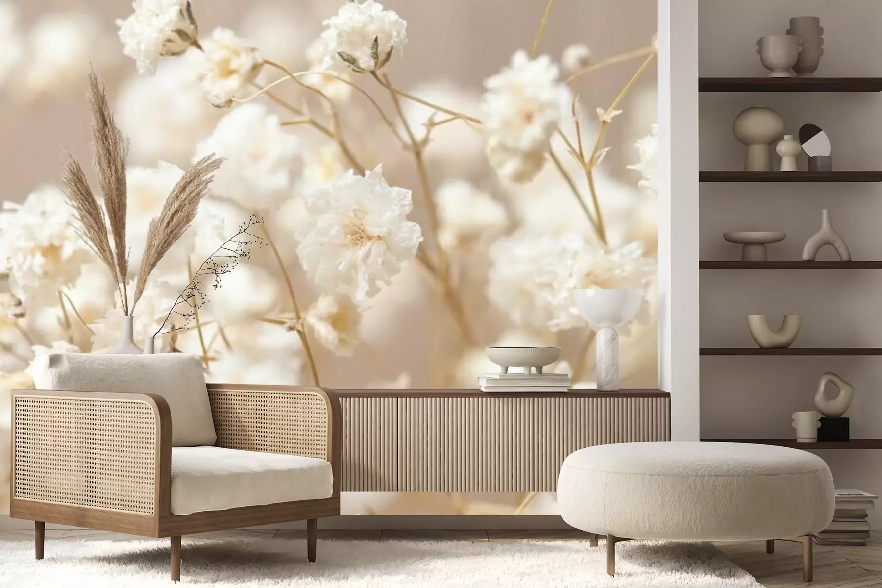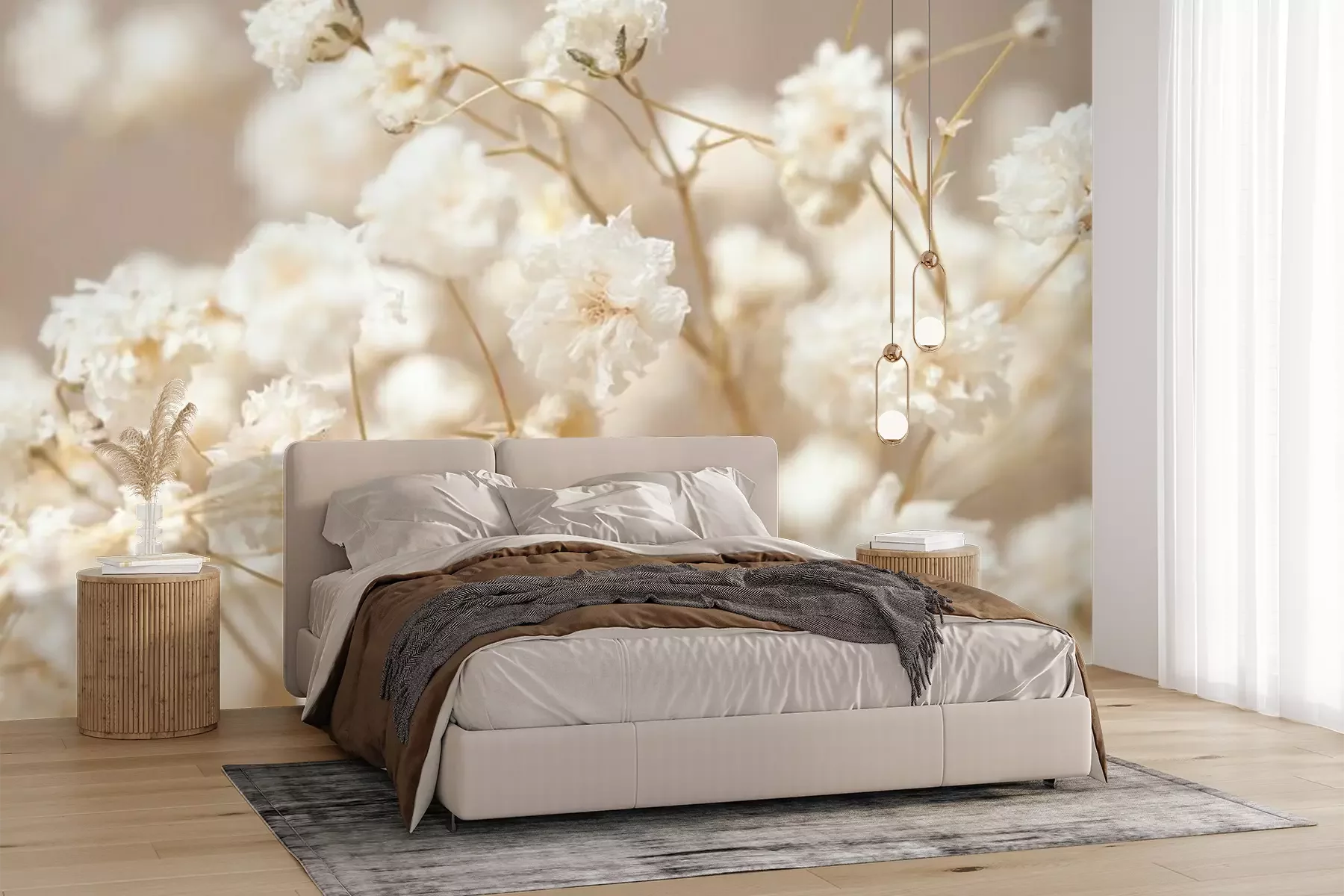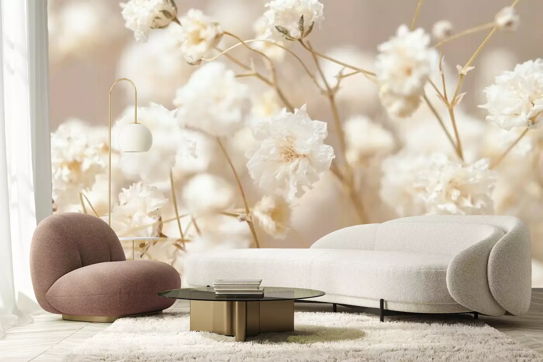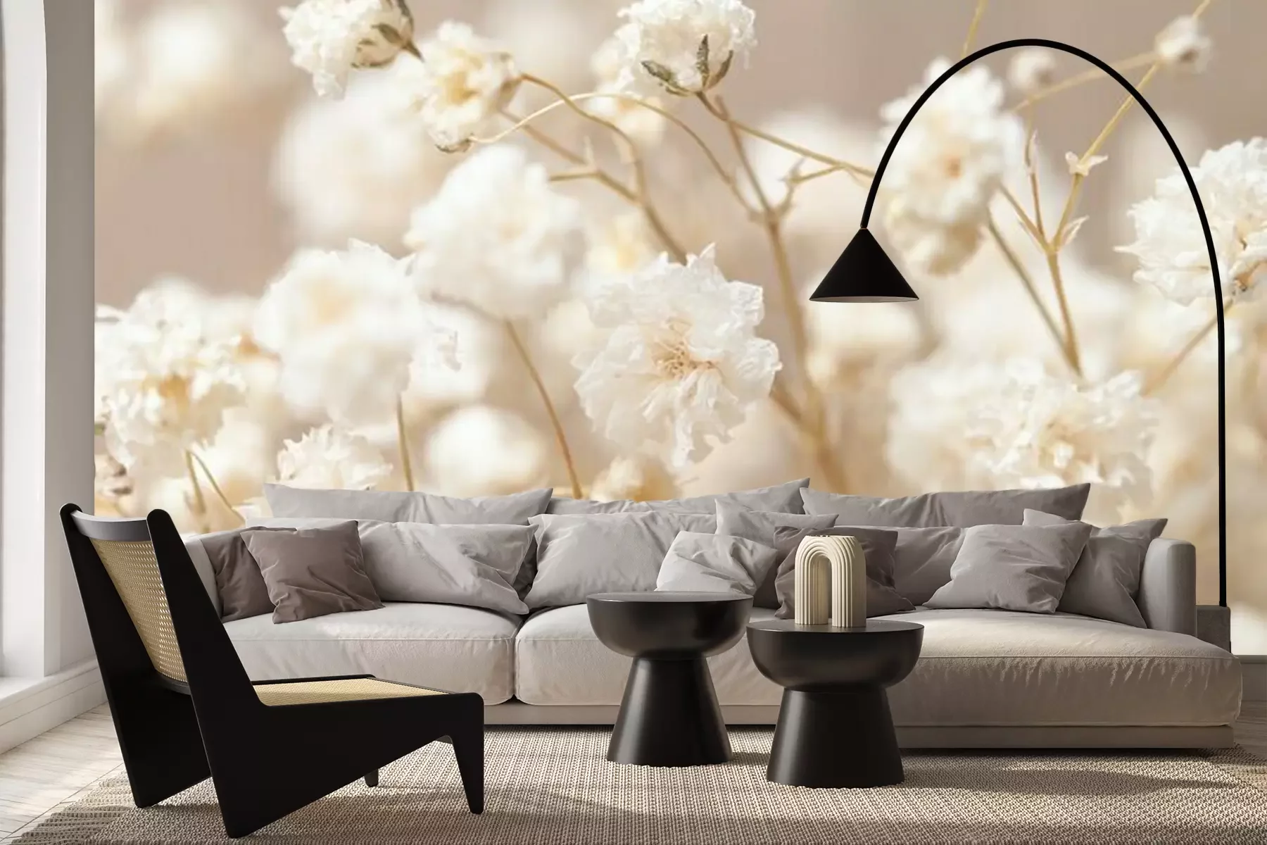 Weiße kleine Blumen auf beige HintergrundProblemlose Lieferung durch vertrauenswürdige Spediteure