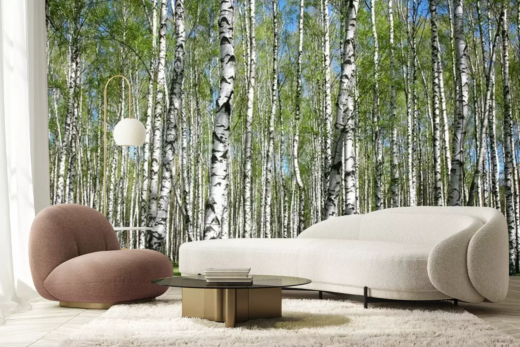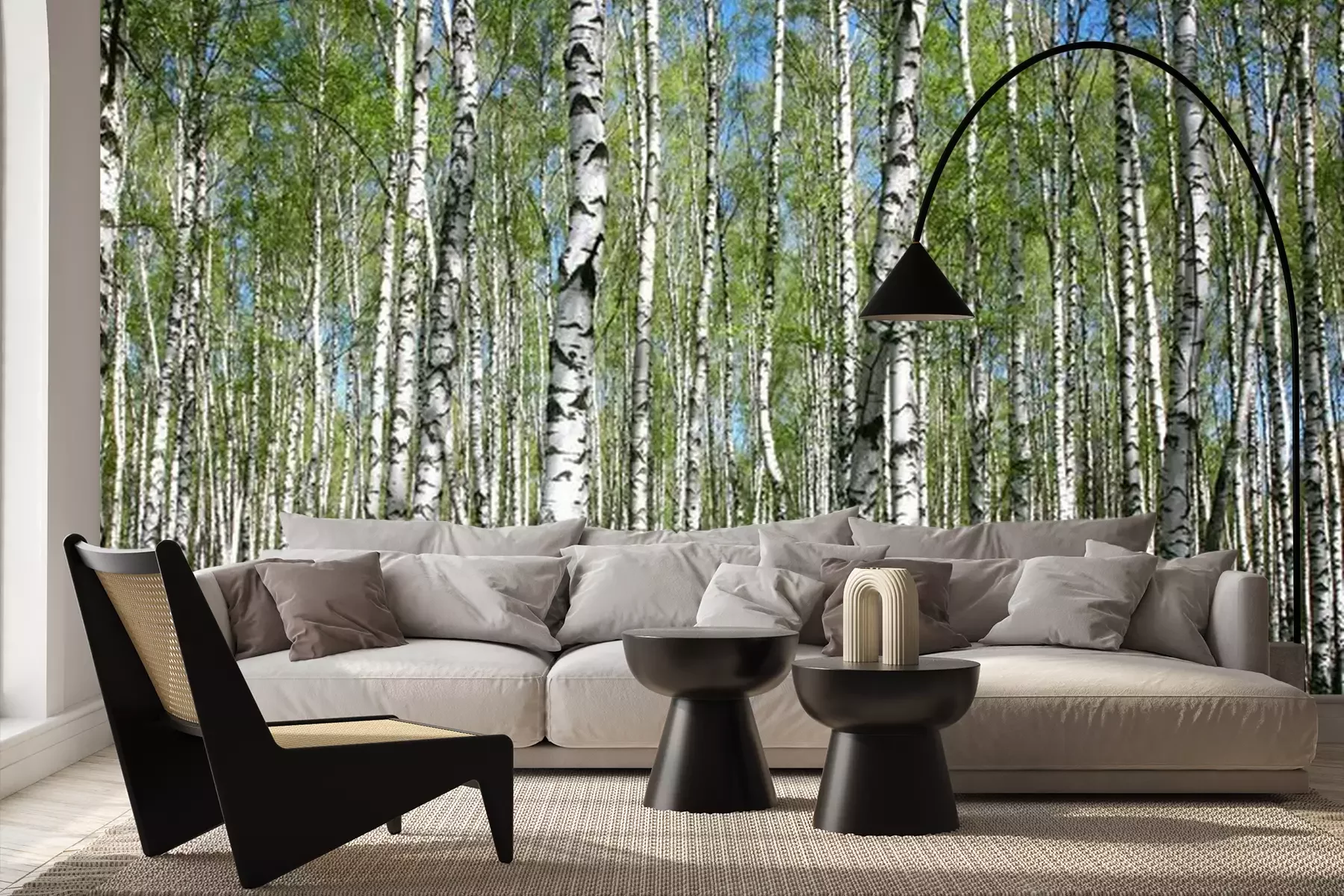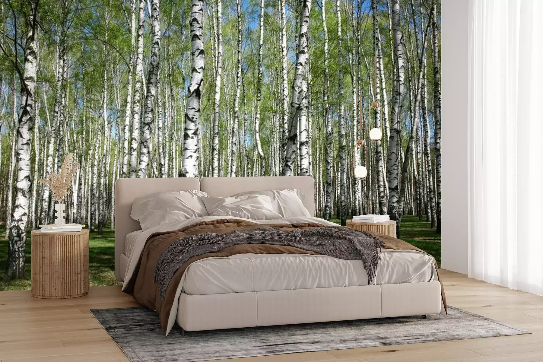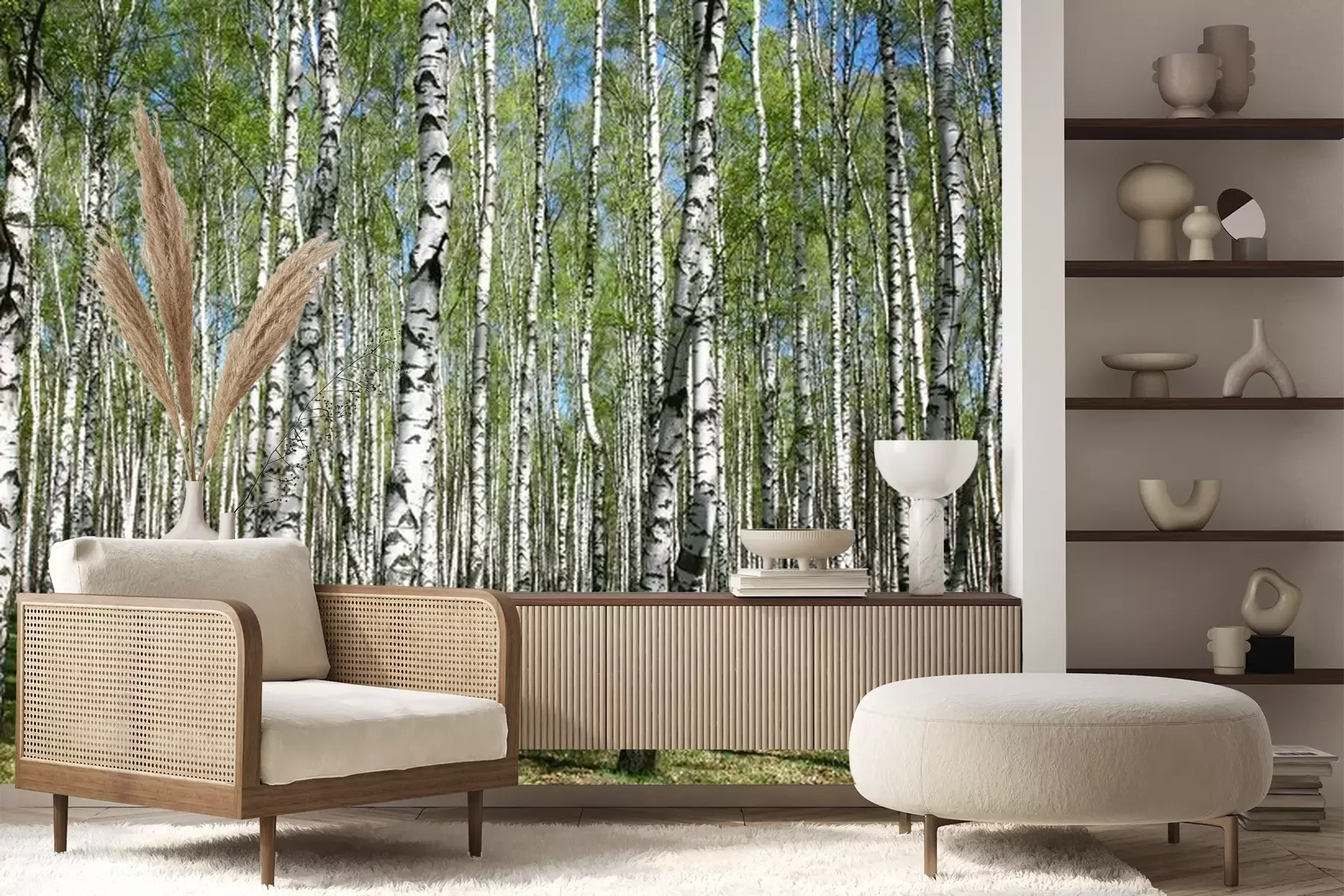Schöne Sommer Birkenhain in der AbendsonneFototapete
