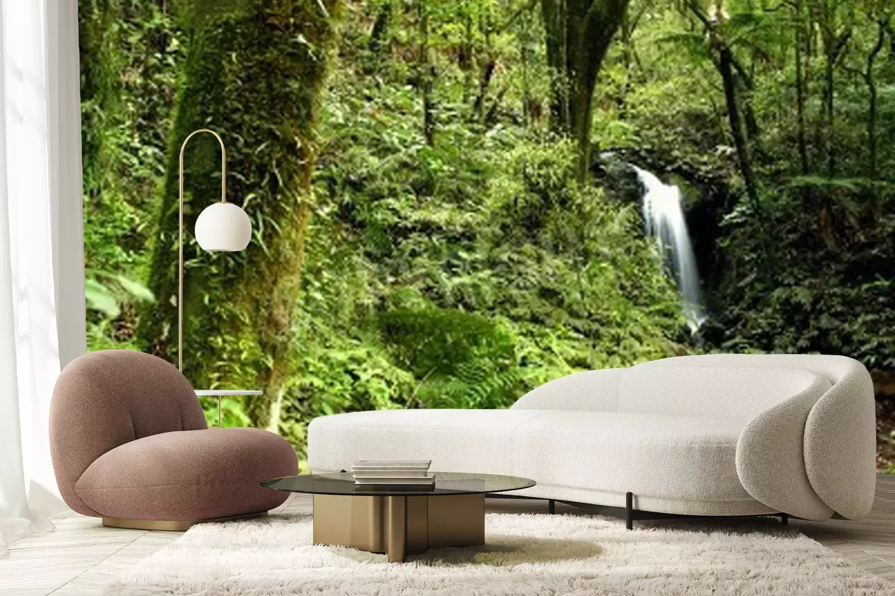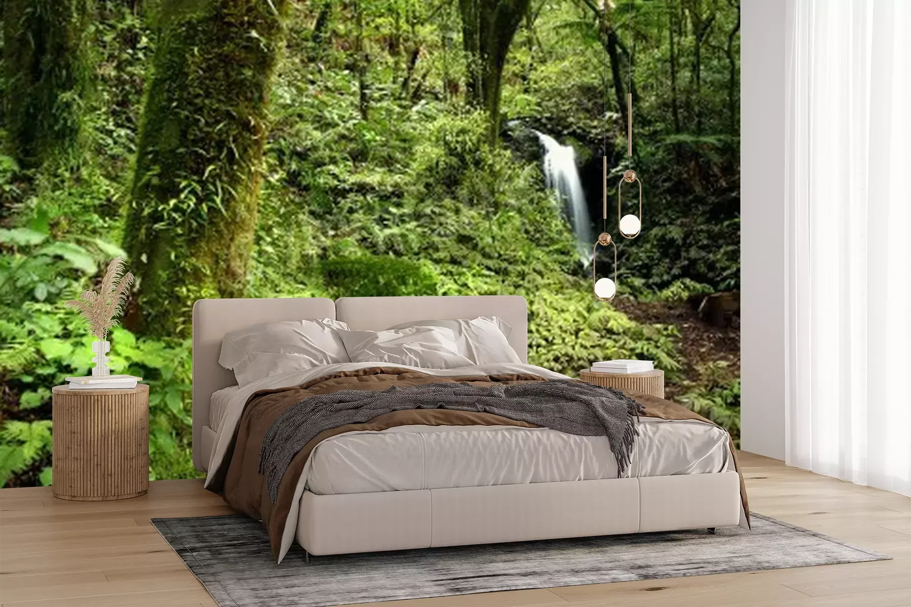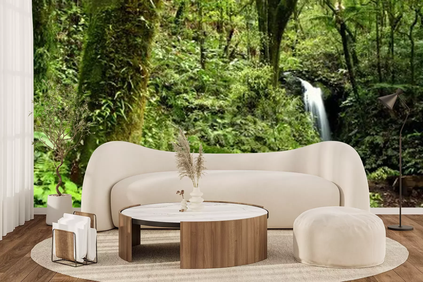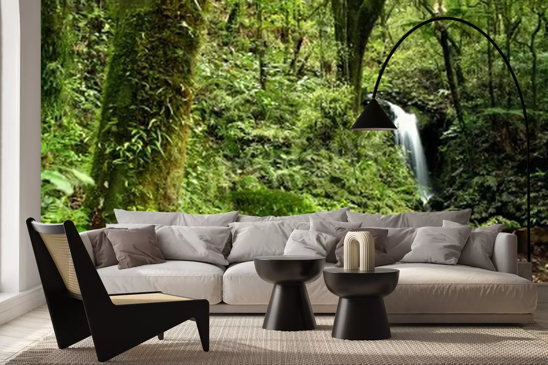 Fototapete Kleiner Wasserfall im grünen Dschungel