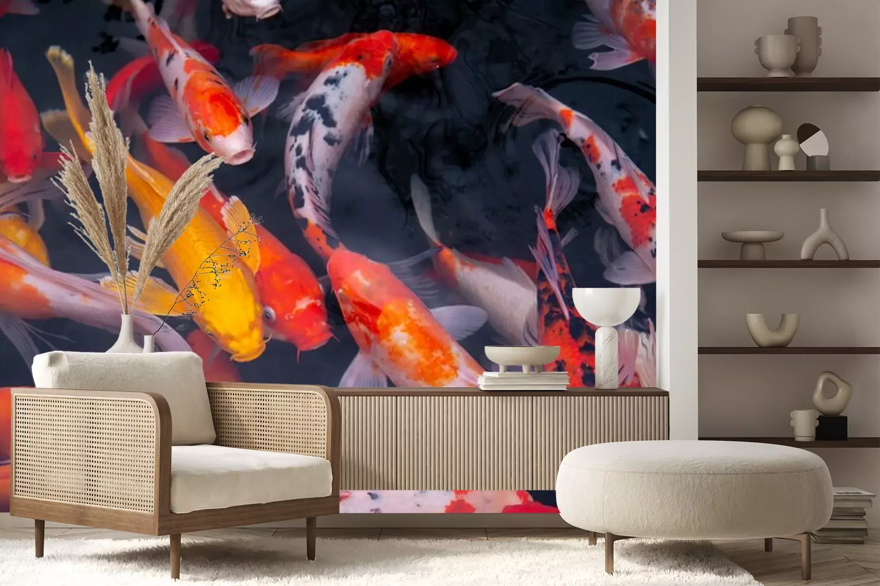 Fototapete Koi-Fische im Teich