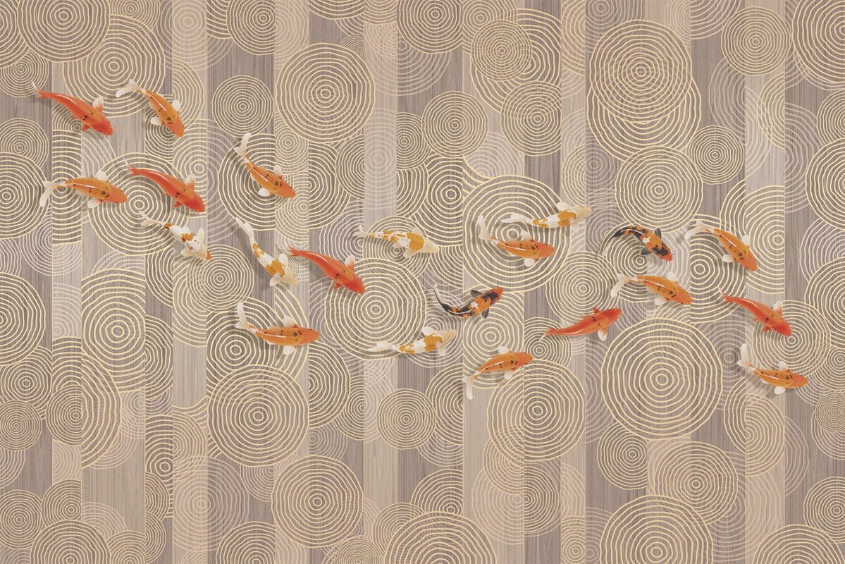 Fototapete: Koi vor einem Hintergrund geometrischer Formen moderne Komposition