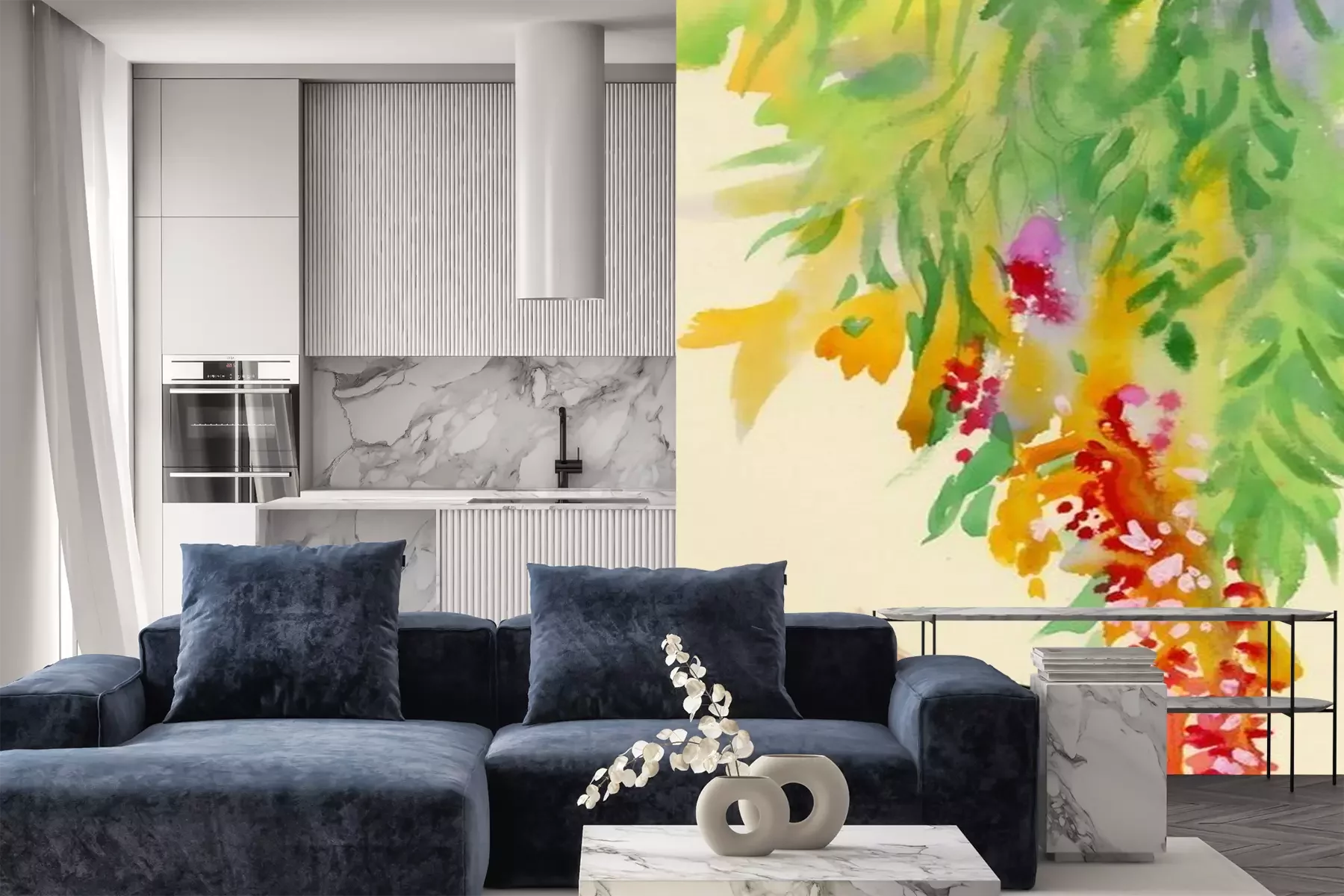 Das Material Premium+ besteht aus einer strukturierten Vinyl-Oberschicht und einem Trägermaterial (Vlies) mit einer Grammatur von 255 g/m², das kleine Unebenheiten der Wand zuverlässig kaschiert. Die feine Sandstruktur verleiht der Oberfläche eine luxuriöse Haptik, während das halbmatte Finish die Tiefe der Farben betont. Das Material ist dampfdurchlässig – so kann diese Fototapete auch in Küchen und Badezimmern eingesetzt werden. Die maximale Breite einer Tapetenbahn beträgt 100 cm. Bei größeren Abmessungen besteht die Fototapete aus mehreren gleich großen Bahnen. Der Kleber wird direkt auf die Wand aufgetragen, und die Fototapete wird auf Stoß angebracht, was für einen ästhetischen Effekt ohne sichtbare Fugen sorgt. Die Oberfläche ist pflegeleicht und kann bei Bedarf sanft mit einem feuchten Tuch abgewischt werden.