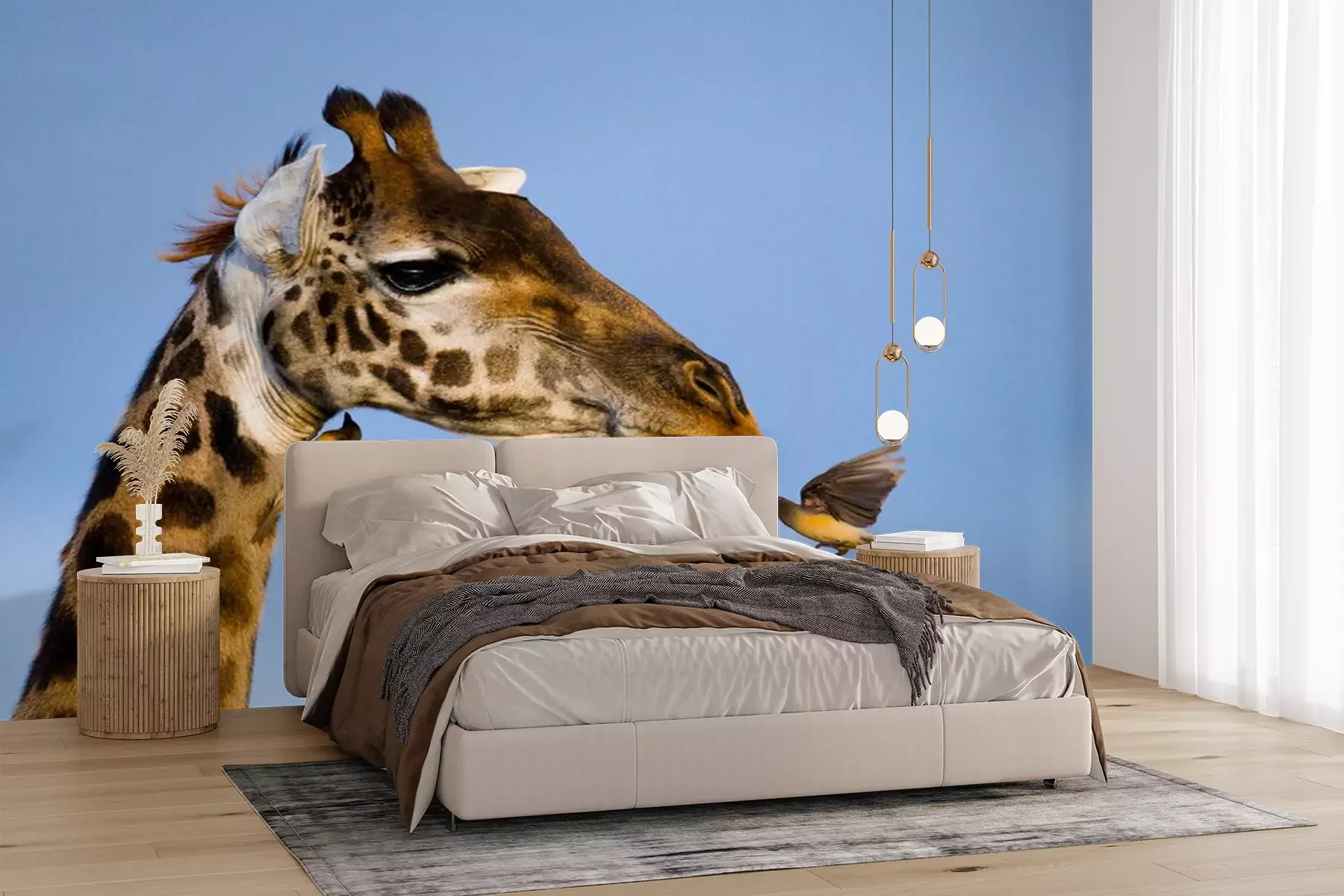 Fototapete Kolibri mit einer Giraffe in Afrika