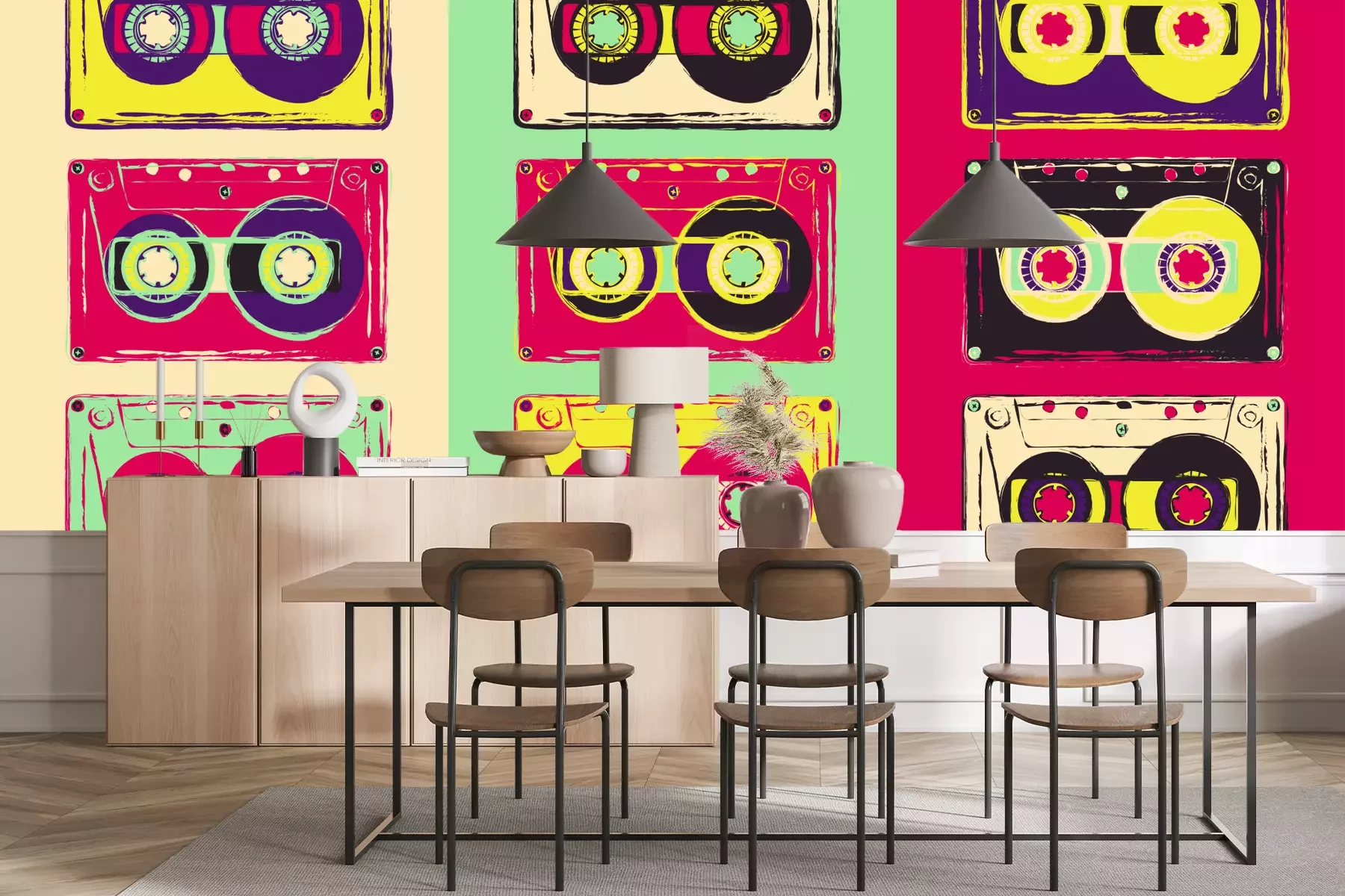Das Material Standard ist ein hochwertiges Latexmaterial mit einer glatten, matten Oberfläche. Durch den Einsatz von HP-Latex-Drucktechnologie sind die Farben satt, langlebig und UV-beständig. So bleibt das Muster über Jahre hinweg makellos schön. Die verschmutzte Oberfläche dieses Materials kann sanft mit einem trockenen Tuch abgewischt werden. Die maximale Breite einer einzelnen Bahn beträgt 95 cm oder 105 cm – je nach Breite der bestellten Fototapete. Bei Fototapeten mit größeren Abmessungen besteht der Ausdruck aus mehreren gleich großen Tapetenbahnen. Die Fototapete wird auf Stoß angebracht, wodurch die Fugen nahezu unsichtbar sind.