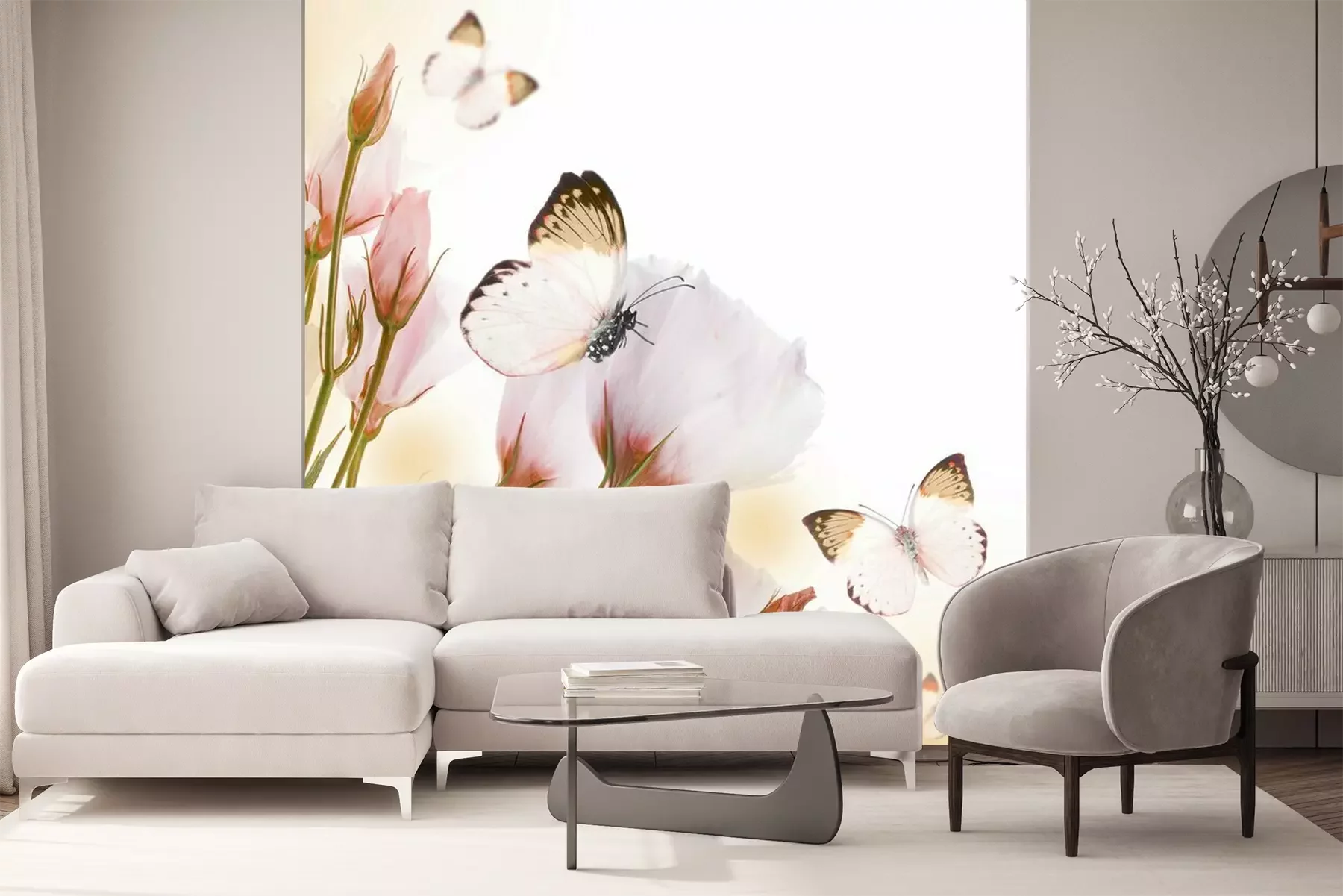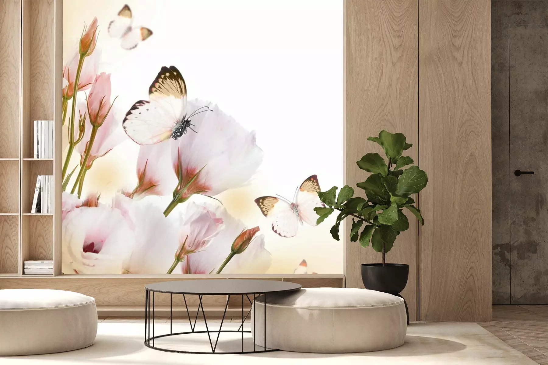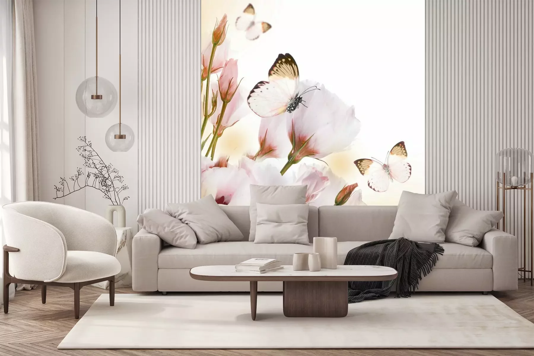 Fototapete Komposition aus Rosen und Schmetterlingen
