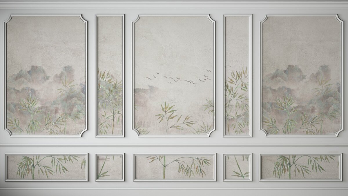 Fototapete: Komposition mit einer nebligen Landschaft in Stuck