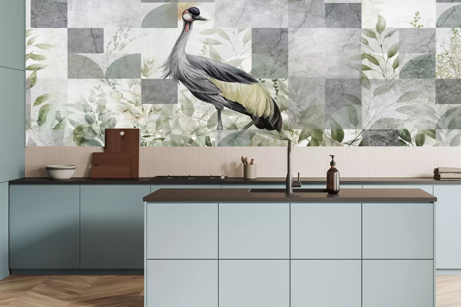 Das Material Premium+ besteht aus einer strukturierten Vinyl-Oberschicht und einem Trägermaterial (Vlies) mit einer Grammatur von 255 g/m², das kleine Unebenheiten der Wand zuverlässig kaschiert. Die feine Sandstruktur verleiht der Oberfläche eine luxuriöse Haptik, während das halbmatte Finish die Tiefe der Farben betont. Das Material ist dampfdurchlässig – so kann diese Fototapete auch in Küchen und Badezimmern eingesetzt werden. Die maximale Breite einer Tapetenbahn beträgt 100 cm. Bei größeren Abmessungen besteht die Fototapete aus mehreren gleich großen Bahnen. Der Kleber wird direkt auf die Wand aufgetragen, und die Fototapete wird auf Stoß angebracht, was für einen ästhetischen Effekt ohne sichtbare Fugen sorgt. Die Oberfläche ist pflegeleicht und kann bei Bedarf sanft mit einem feuchten Tuch abgewischt werden.