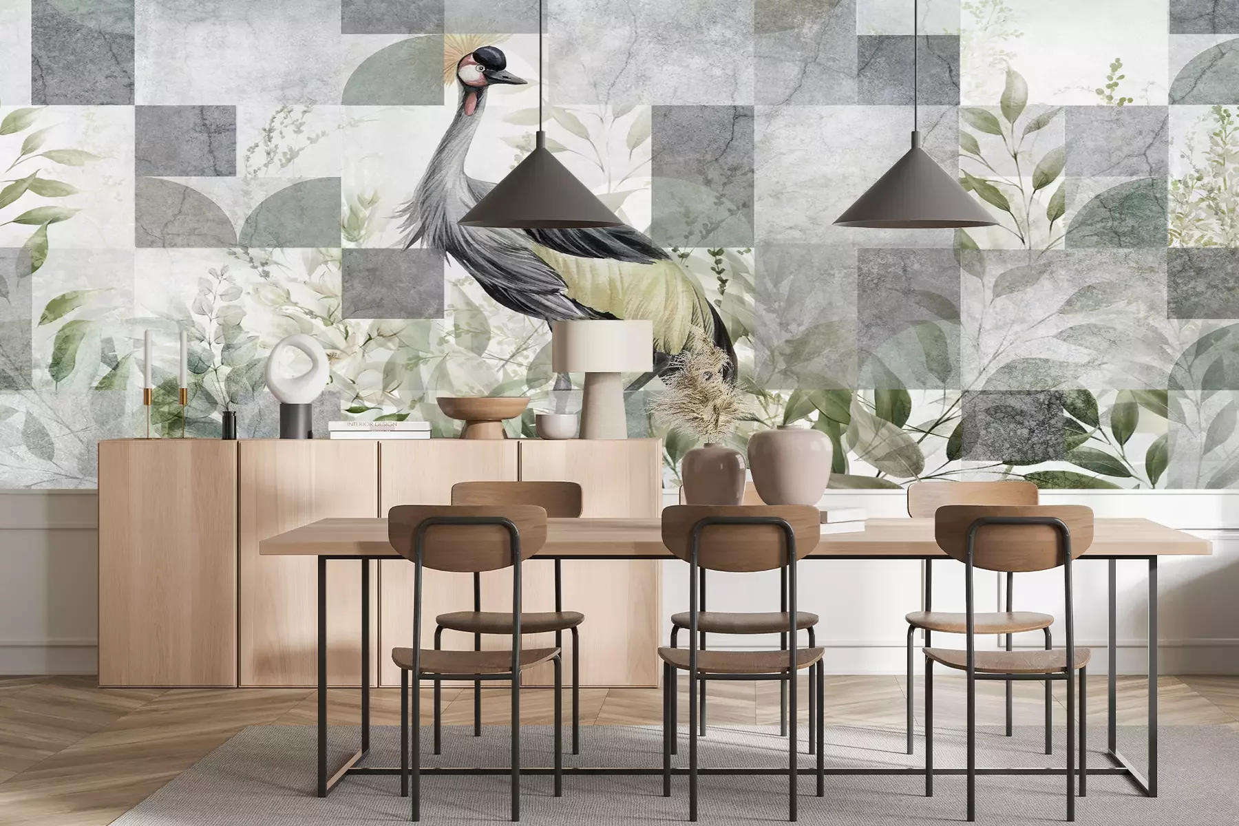 Weiße Kraniche zwischen tropischen BlätternProblemlose Lieferung durch vertrauenswürdige Spediteure