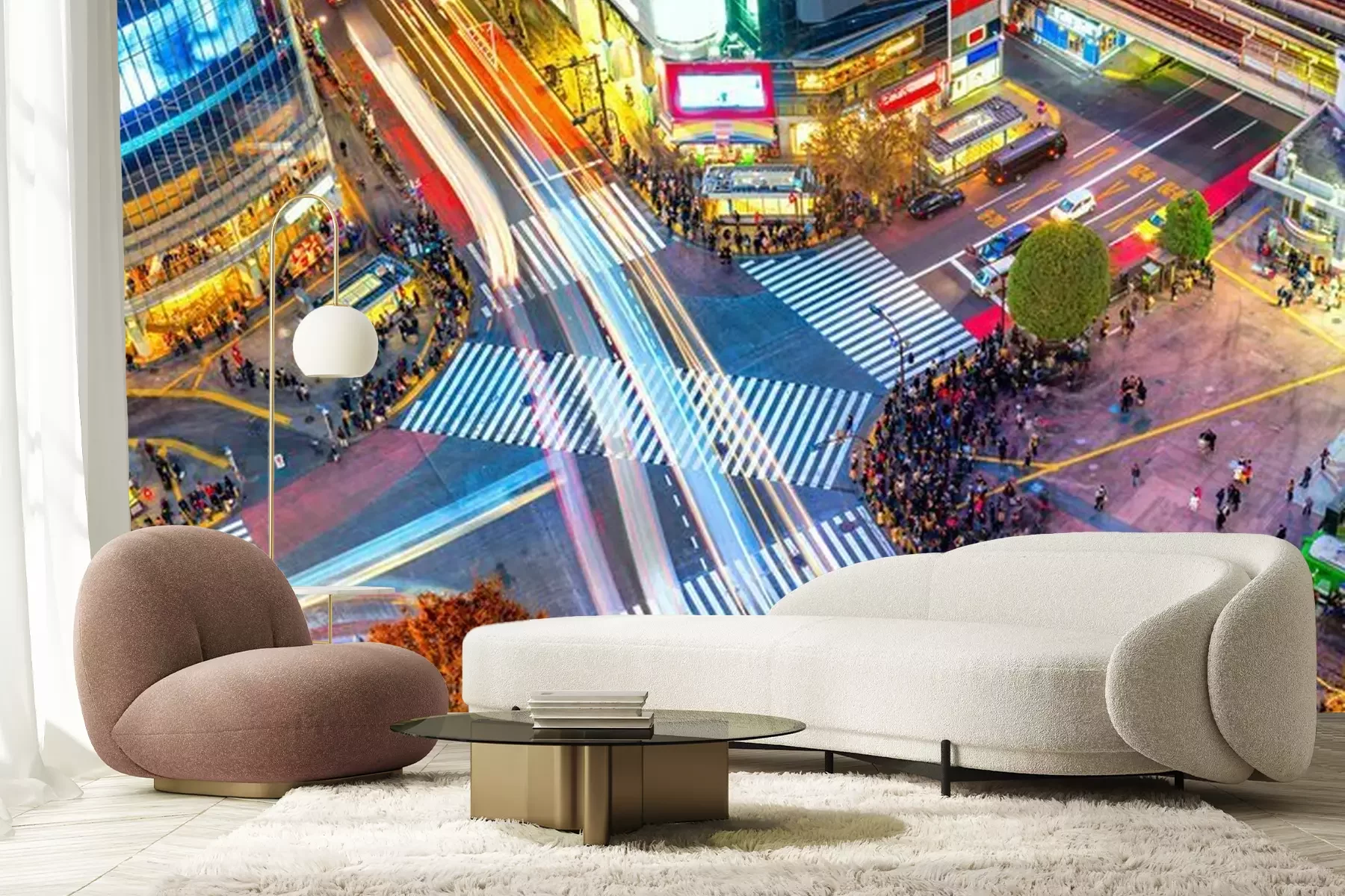 Fototapete Kreuzung in Tokio aus Vogelperspektive