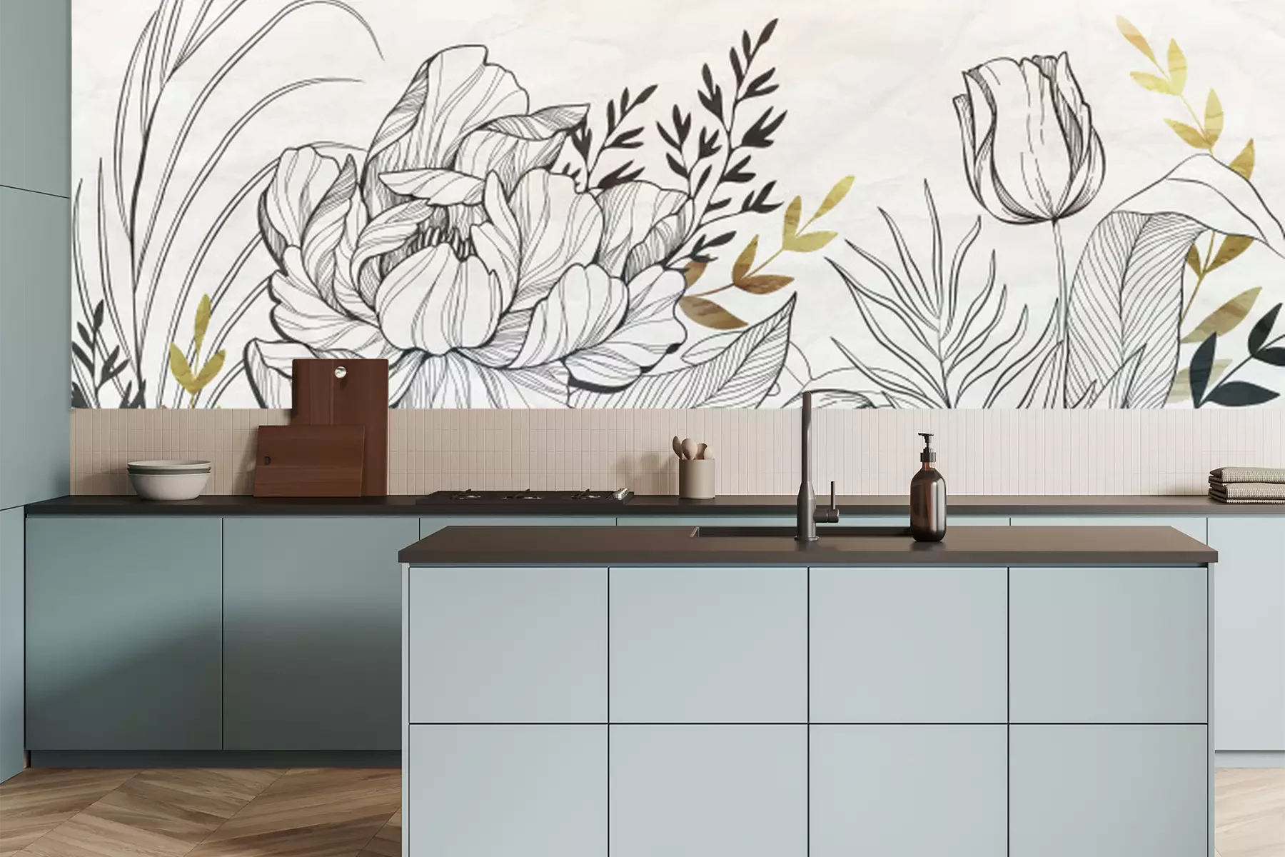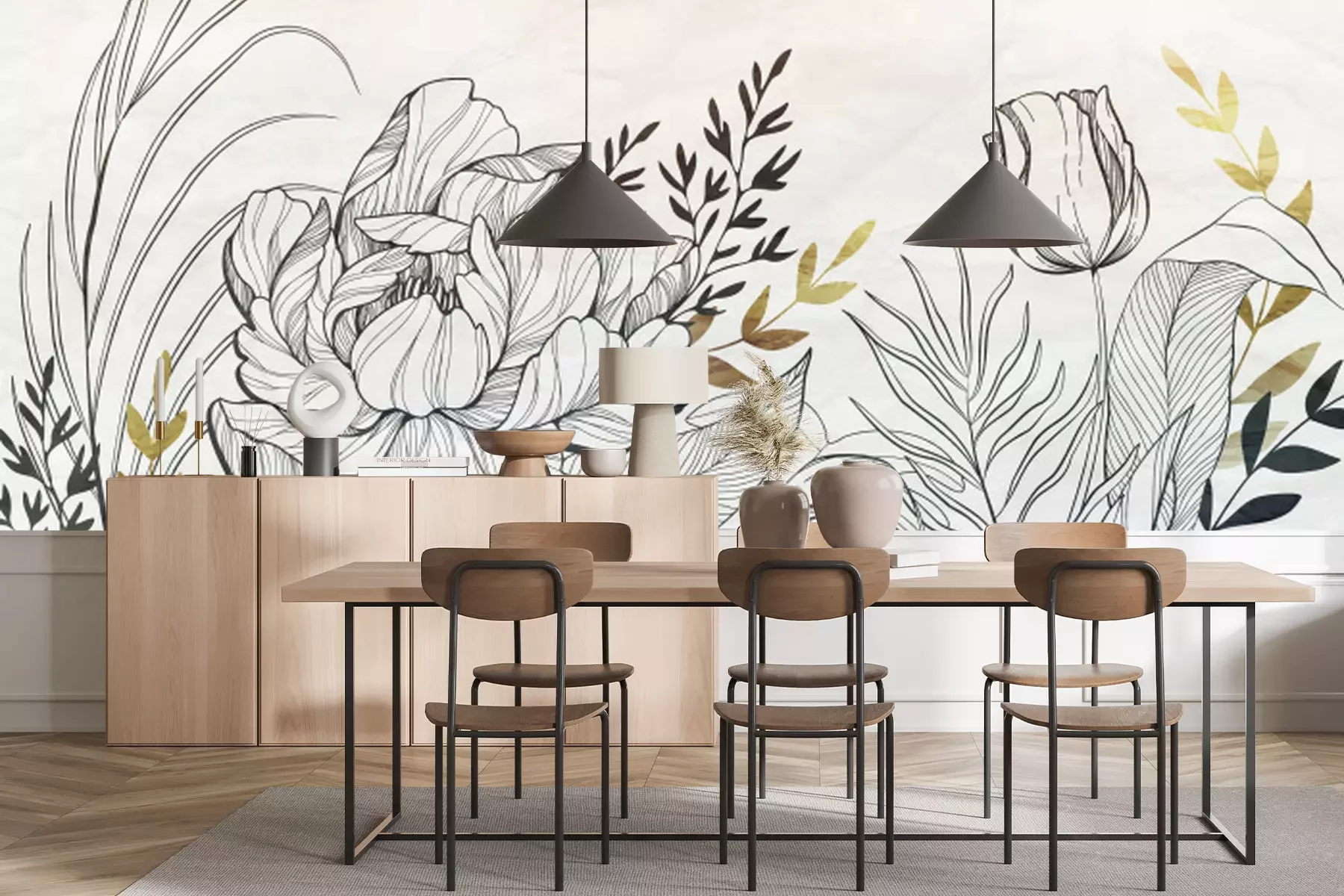 Fototapete Künstlerische Illustration mit windgepeitschten Blumen