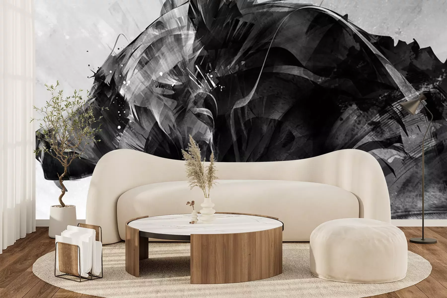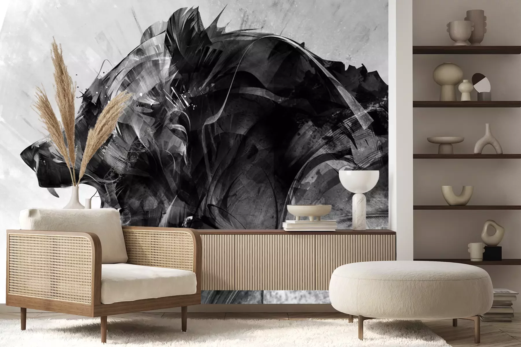 Das Material Premium+ besteht aus einer strukturierten Vinyl-Oberschicht und einem Trägermaterial (Vlies) mit einer Grammatur von 255 g/m², das kleine Unebenheiten der Wand zuverlässig kaschiert. Die feine Sandstruktur verleiht der Oberfläche eine luxuriöse Haptik, während das halbmatte Finish die Tiefe der Farben betont. Das Material ist dampfdurchlässig – so kann diese Fototapete auch in Küchen und Badezimmern eingesetzt werden. Die maximale Breite einer Tapetenbahn beträgt 100 cm. Bei größeren Abmessungen besteht die Fototapete aus mehreren gleich großen Bahnen. Der Kleber wird direkt auf die Wand aufgetragen, und die Fototapete wird auf Stoß angebracht, was für einen ästhetischen Effekt ohne sichtbare Fugen sorgt. Die Oberfläche ist pflegeleicht und kann bei Bedarf sanft mit einem feuchten Tuch abgewischt werden.