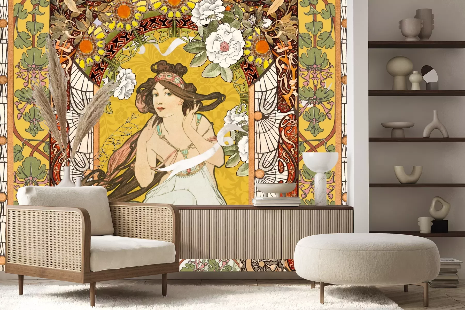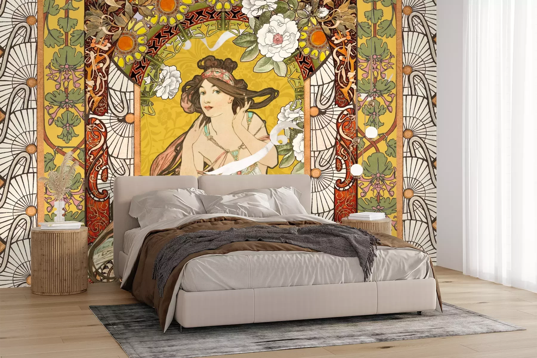 Das Material Premium+ besteht aus einer strukturierten Vinyl-Oberschicht und einem Trägermaterial (Vlies) mit einer Grammatur von 255 g/m², das kleine Unebenheiten der Wand zuverlässig kaschiert. Die feine Sandstruktur verleiht der Oberfläche eine luxuriöse Haptik, während das halbmatte Finish die Tiefe der Farben betont. Das Material ist dampfdurchlässig – so kann diese Fototapete auch in Küchen und Badezimmern eingesetzt werden. Die maximale Breite einer Tapetenbahn beträgt 100 cm. Bei größeren Abmessungen besteht die Fototapete aus mehreren gleich großen Bahnen. Der Kleber wird direkt auf die Wand aufgetragen, und die Fototapete wird auf Stoß angebracht, was für einen ästhetischen Effekt ohne sichtbare Fugen sorgt. Die Oberfläche ist pflegeleicht und kann bei Bedarf sanft mit einem feuchten Tuch abgewischt werden.