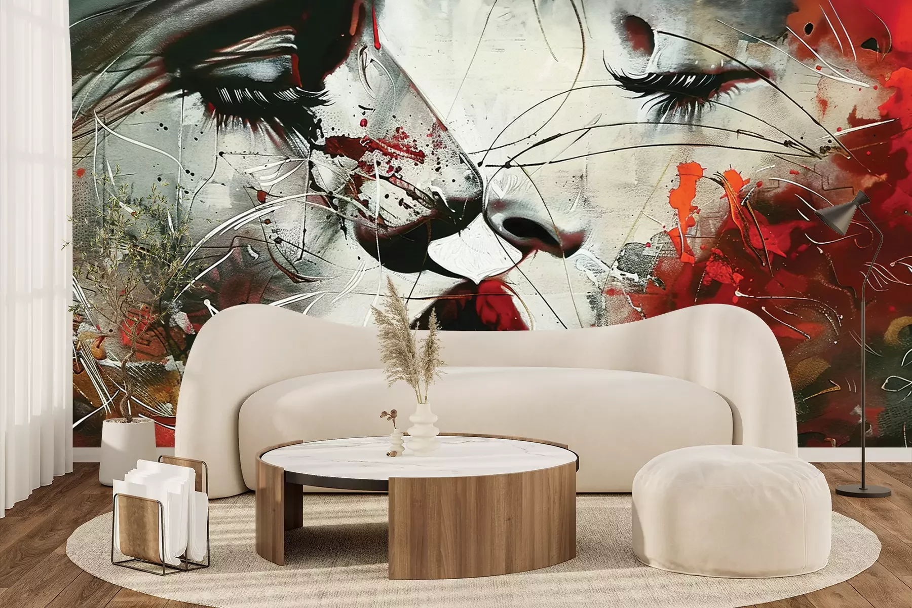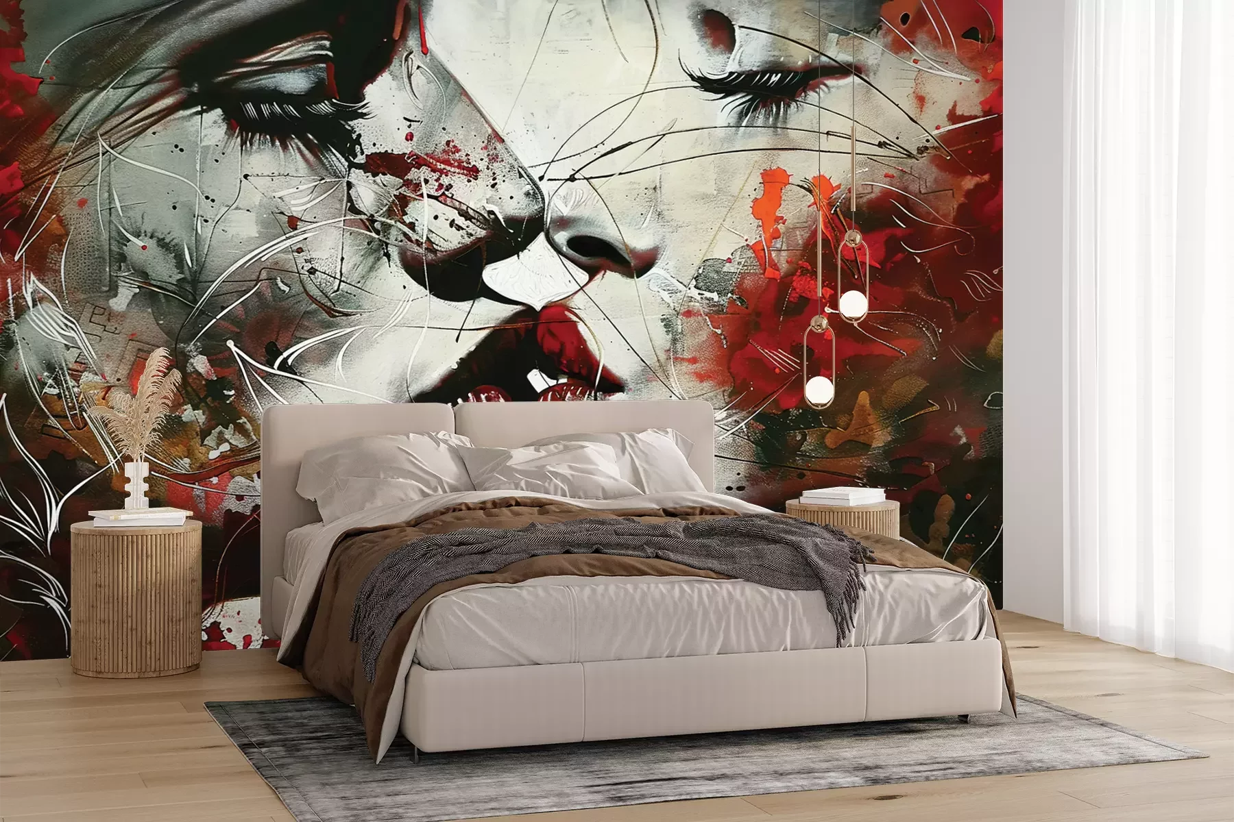 Das Material Premium+ besteht aus einer strukturierten Vinyl-Oberschicht und einem Trägermaterial (Vlies) mit einer Grammatur von 255 g/m², das kleine Unebenheiten der Wand zuverlässig kaschiert. Die feine Sandstruktur verleiht der Oberfläche eine luxuriöse Haptik, während das halbmatte Finish die Tiefe der Farben betont. Das Material ist dampfdurchlässig – so kann diese Fototapete auch in Küchen und Badezimmern eingesetzt werden. Die maximale Breite einer Tapetenbahn beträgt 100 cm. Bei größeren Abmessungen besteht die Fototapete aus mehreren gleich großen Bahnen. Der Kleber wird direkt auf die Wand aufgetragen, und die Fototapete wird auf Stoß angebracht, was für einen ästhetischen Effekt ohne sichtbare Fugen sorgt. Die Oberfläche ist pflegeleicht und kann bei Bedarf sanft mit einem feuchten Tuch abgewischt werden.