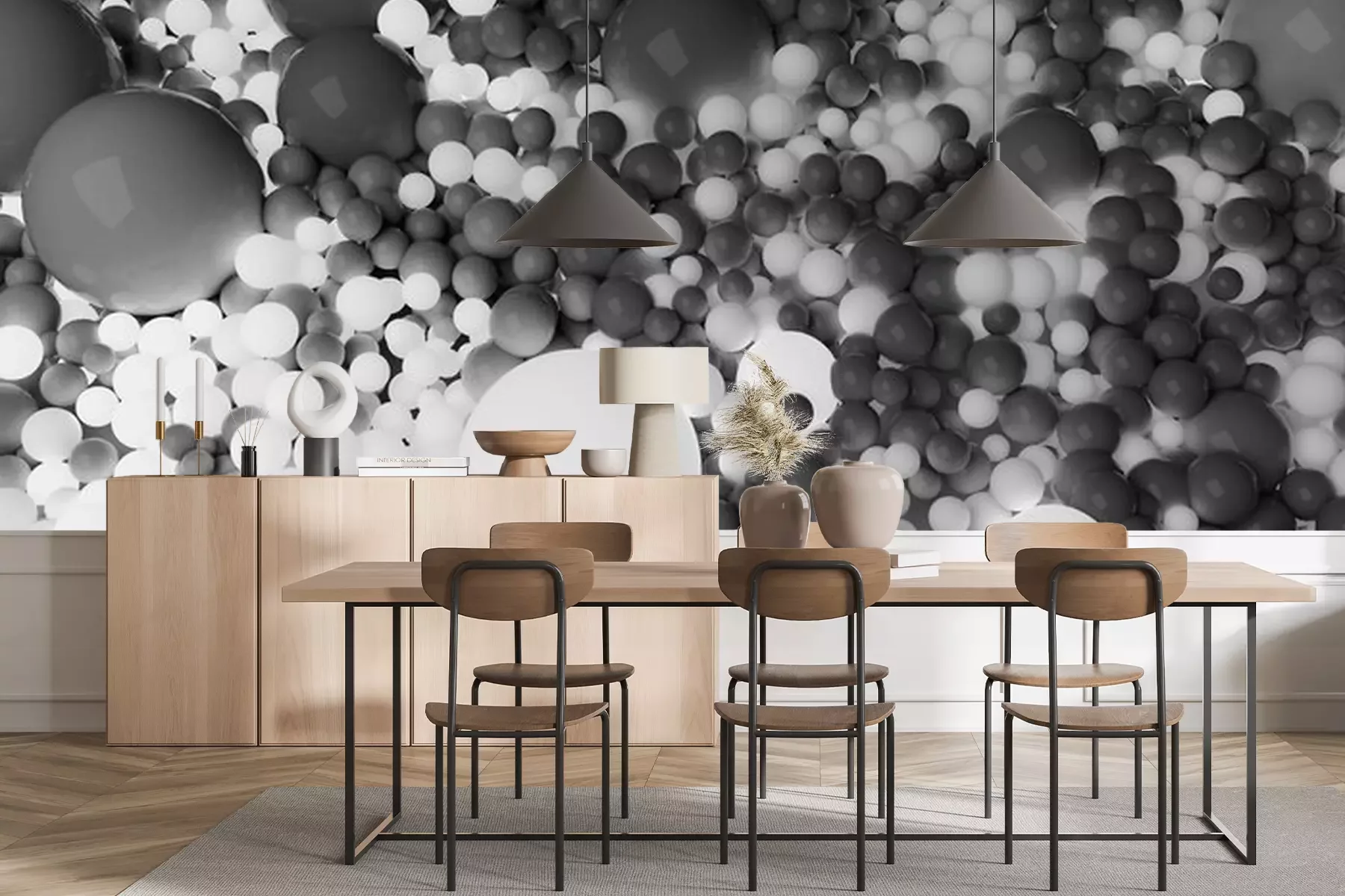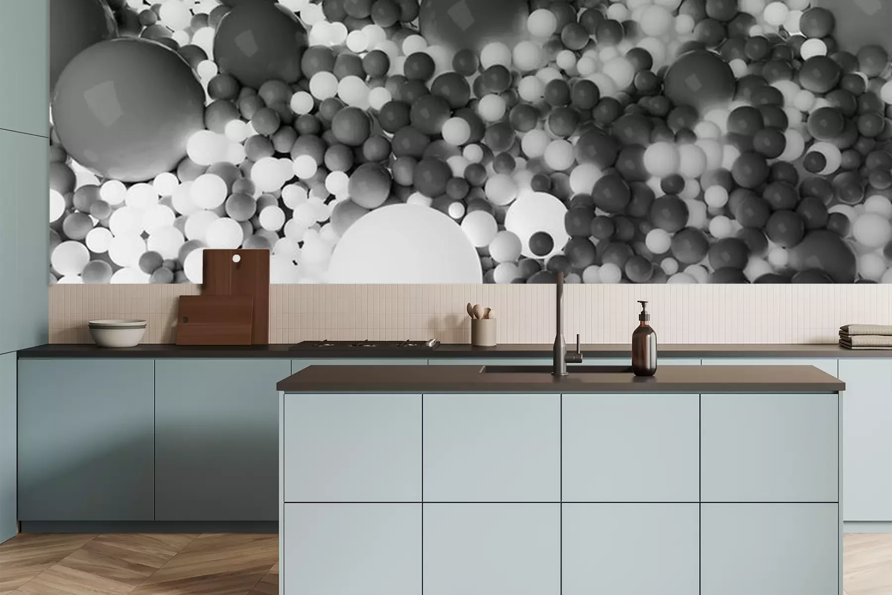 Fototapete Kugeln 3D in Grautönen