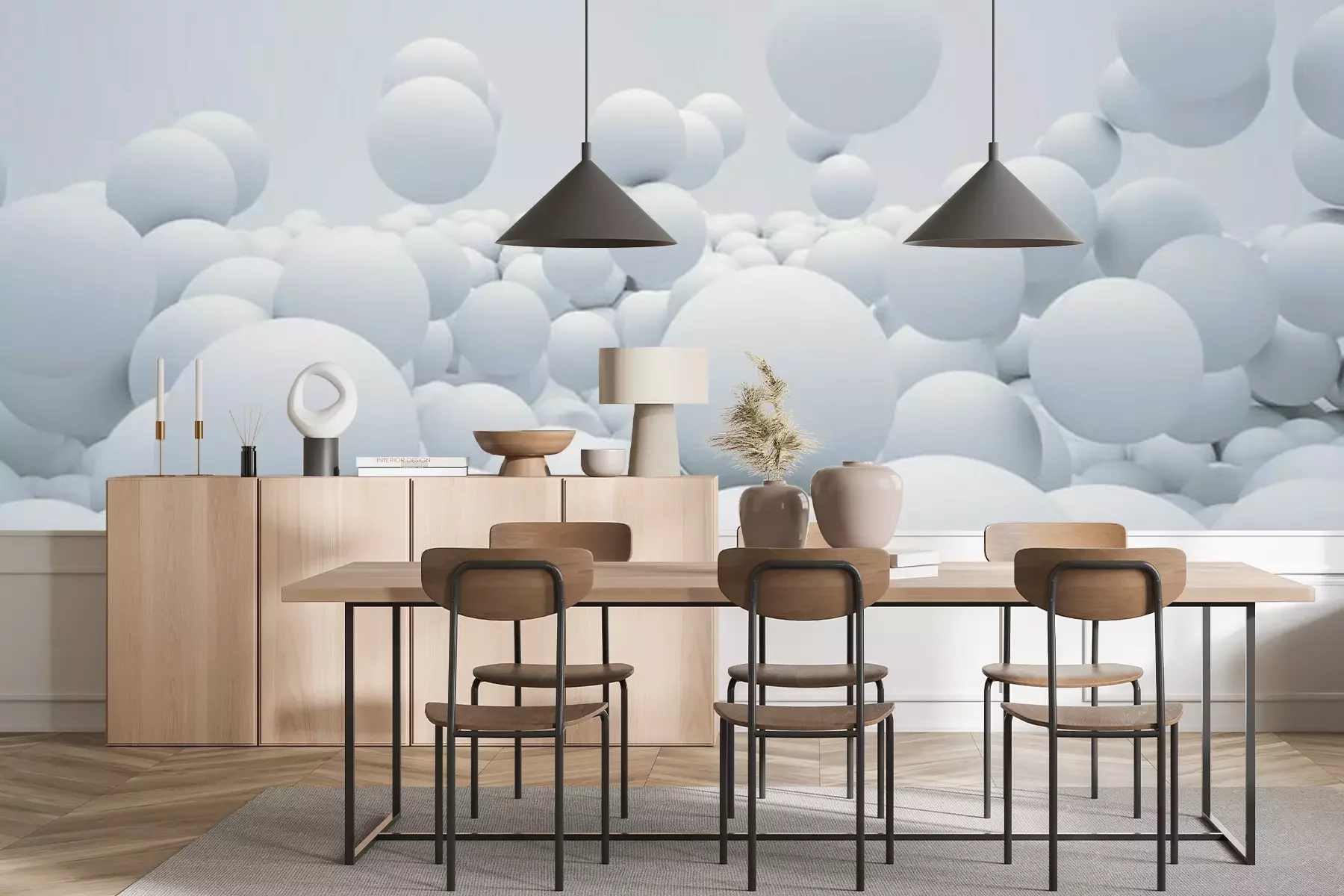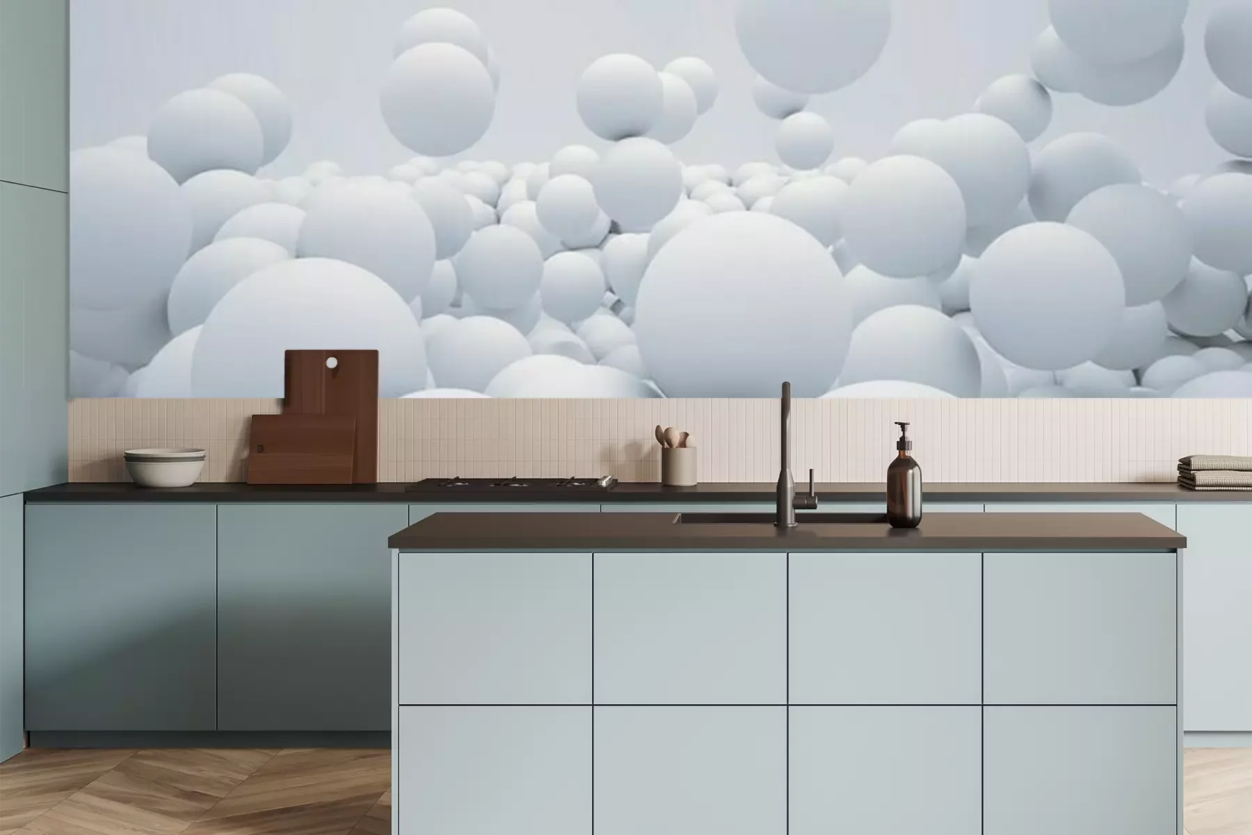 Fototapete Kugeln in Weiß in drei Dimensionen