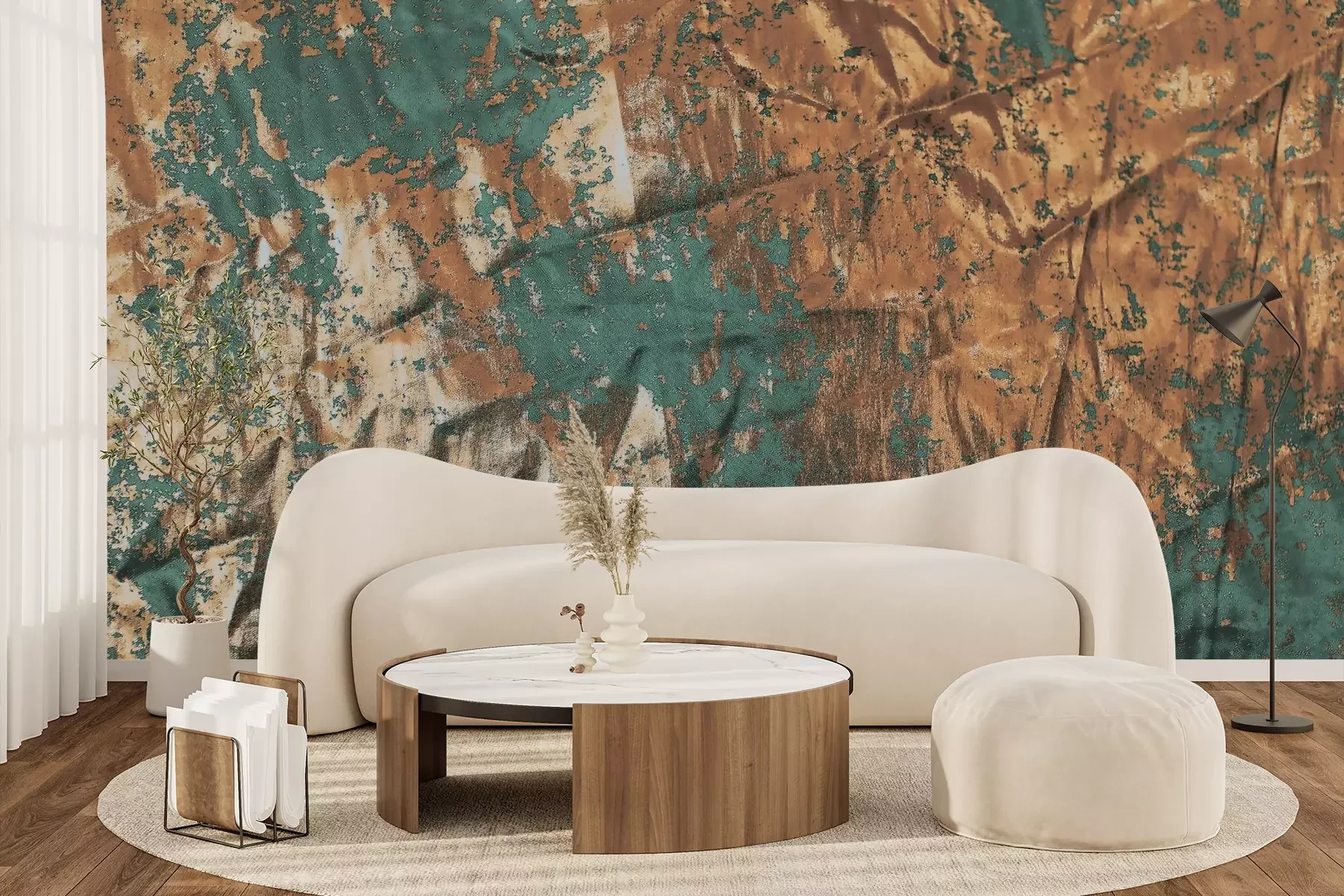 Das Material Premium+ besteht aus einer strukturierten Vinyl-Oberschicht und einem Trägermaterial (Vlies) mit einer Grammatur von 255 g/m², das kleine Unebenheiten der Wand zuverlässig kaschiert. Die feine Sandstruktur verleiht der Oberfläche eine luxuriöse Haptik, während das halbmatte Finish die Tiefe der Farben betont. Das Material ist dampfdurchlässig – so kann diese Fototapete auch in Küchen und Badezimmern eingesetzt werden. Die maximale Breite einer Tapetenbahn beträgt 100 cm. Bei größeren Abmessungen besteht die Fototapete aus mehreren gleich großen Bahnen. Der Kleber wird direkt auf die Wand aufgetragen, und die Fototapete wird auf Stoß angebracht, was für einen ästhetischen Effekt ohne sichtbare Fugen sorgt. Die Oberfläche ist pflegeleicht und kann bei Bedarf sanft mit einem feuchten Tuch abgewischt werden.