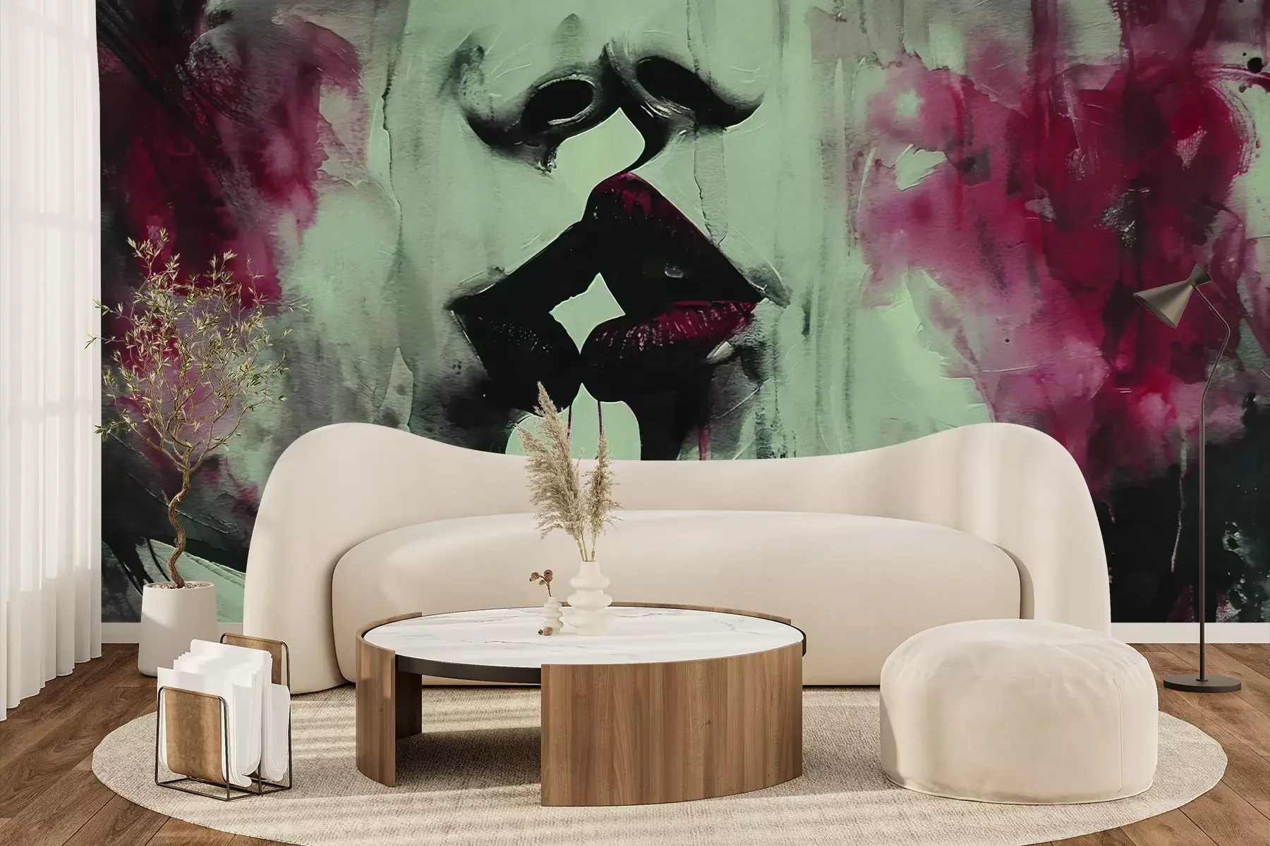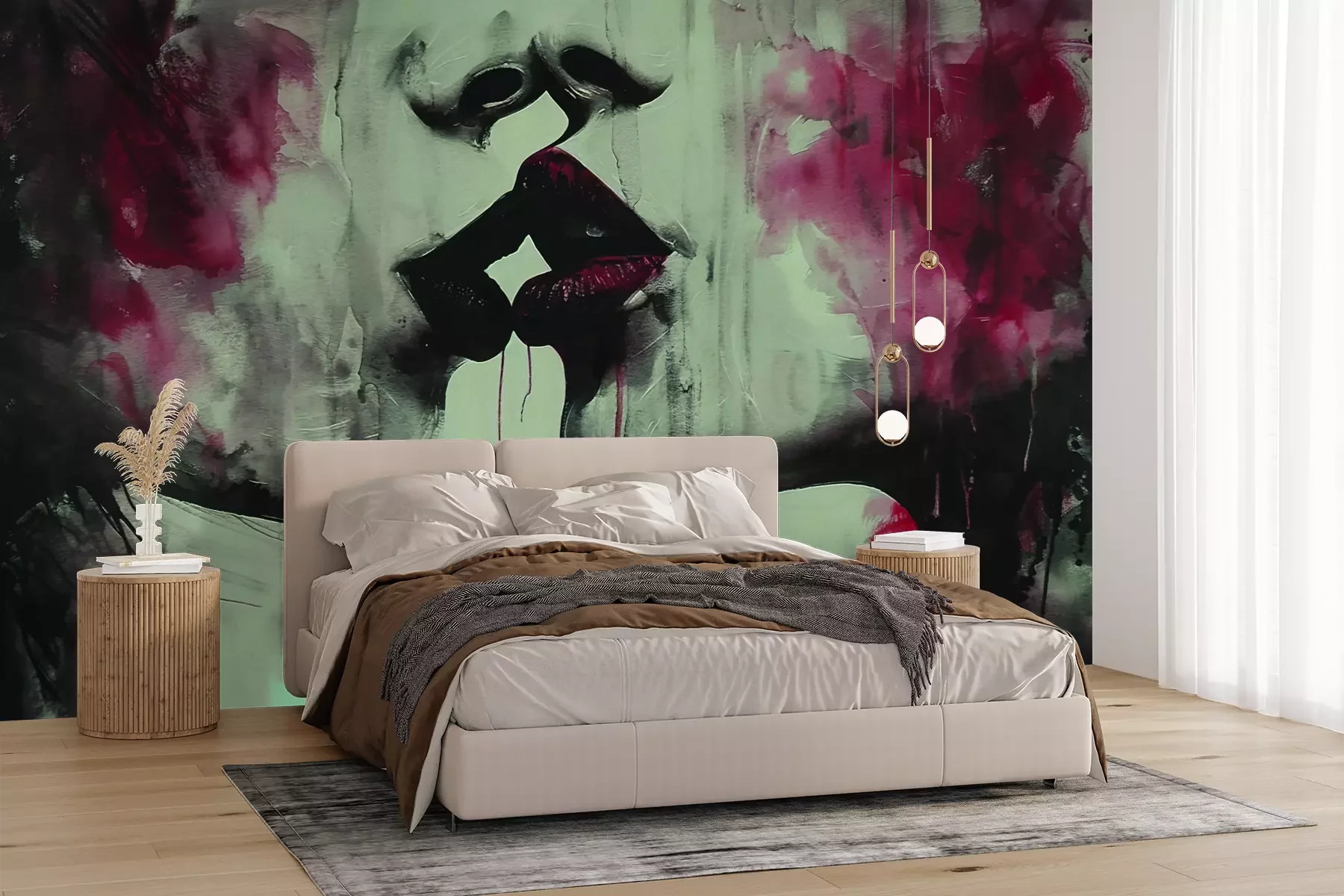 Das Material Premium+ besteht aus einer strukturierten Vinyl-Oberschicht und einem Trägermaterial (Vlies) mit einer Grammatur von 255 g/m², das kleine Unebenheiten der Wand zuverlässig kaschiert. Die feine Sandstruktur verleiht der Oberfläche eine luxuriöse Haptik, während das halbmatte Finish die Tiefe der Farben betont. Das Material ist dampfdurchlässig – so kann diese Fototapete auch in Küchen und Badezimmern eingesetzt werden. Die maximale Breite einer Tapetenbahn beträgt 100 cm. Bei größeren Abmessungen besteht die Fototapete aus mehreren gleich großen Bahnen. Der Kleber wird direkt auf die Wand aufgetragen, und die Fototapete wird auf Stoß angebracht, was für einen ästhetischen Effekt ohne sichtbare Fugen sorgt. Die Oberfläche ist pflegeleicht und kann bei Bedarf sanft mit einem feuchten Tuch abgewischt werden.