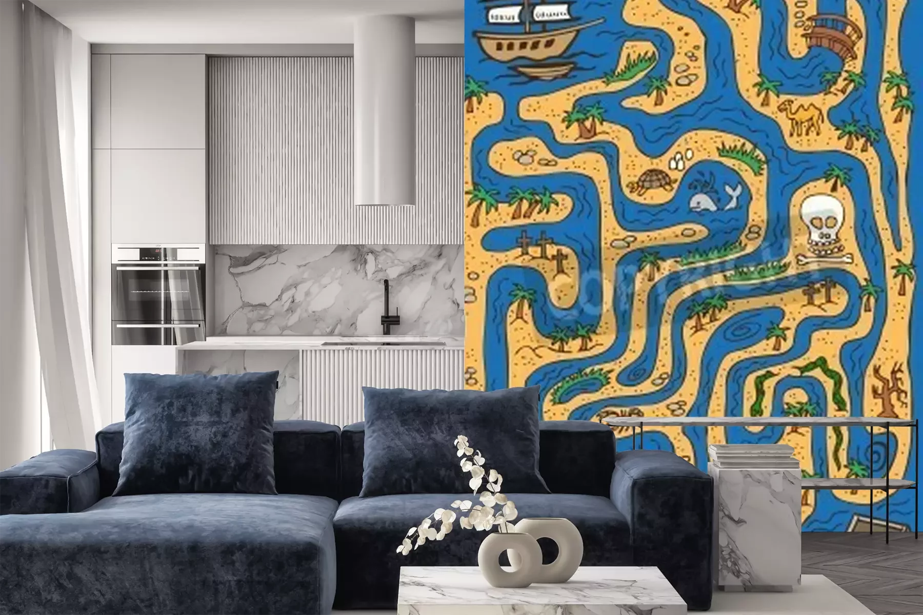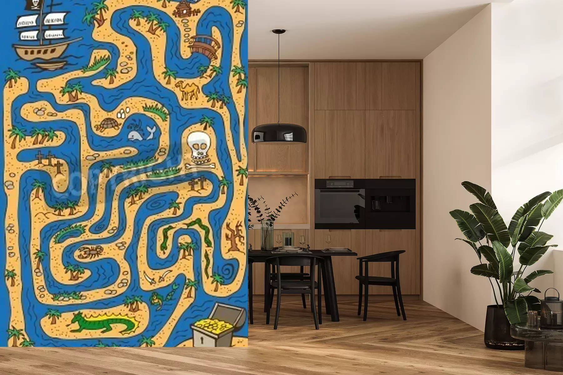 Fototapete Labyrinth mit Schiff und Schatz