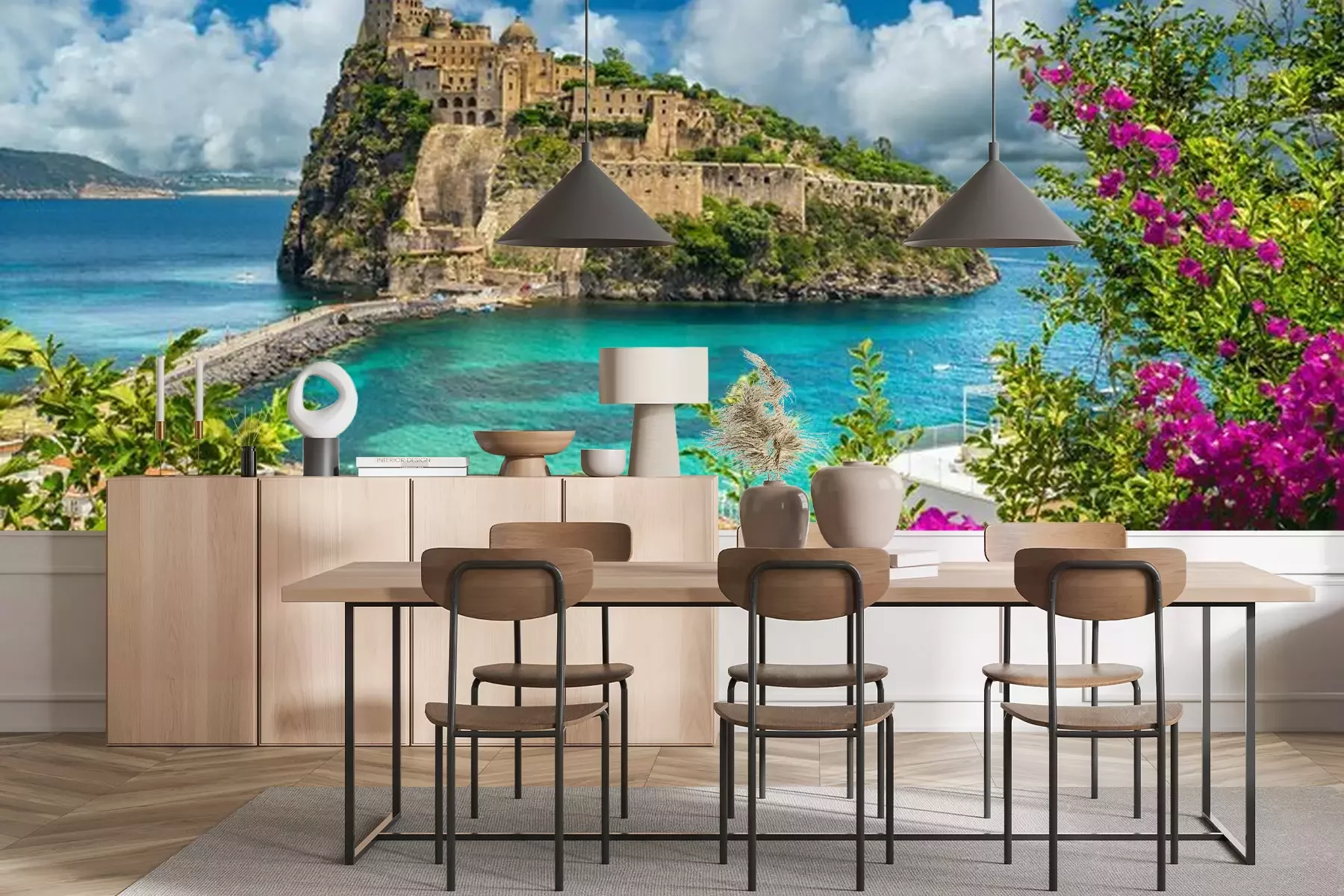 Das Material Premium+ besteht aus einer strukturierten Vinyl-Oberschicht und einem Trägermaterial (Vlies) mit einer Grammatur von 255 g/m², das kleine Unebenheiten der Wand zuverlässig kaschiert. Die feine Sandstruktur verleiht der Oberfläche eine luxuriöse Haptik, während das halbmatte Finish die Tiefe der Farben betont. Das Material ist dampfdurchlässig – so kann diese Fototapete auch in Küchen und Badezimmern eingesetzt werden. Die maximale Breite einer Tapetenbahn beträgt 100 cm. Bei größeren Abmessungen besteht die Fototapete aus mehreren gleich großen Bahnen. Der Kleber wird direkt auf die Wand aufgetragen, und die Fototapete wird auf Stoß angebracht, was für einen ästhetischen Effekt ohne sichtbare Fugen sorgt. Die Oberfläche ist pflegeleicht und kann bei Bedarf sanft mit einem feuchten Tuch abgewischt werden.