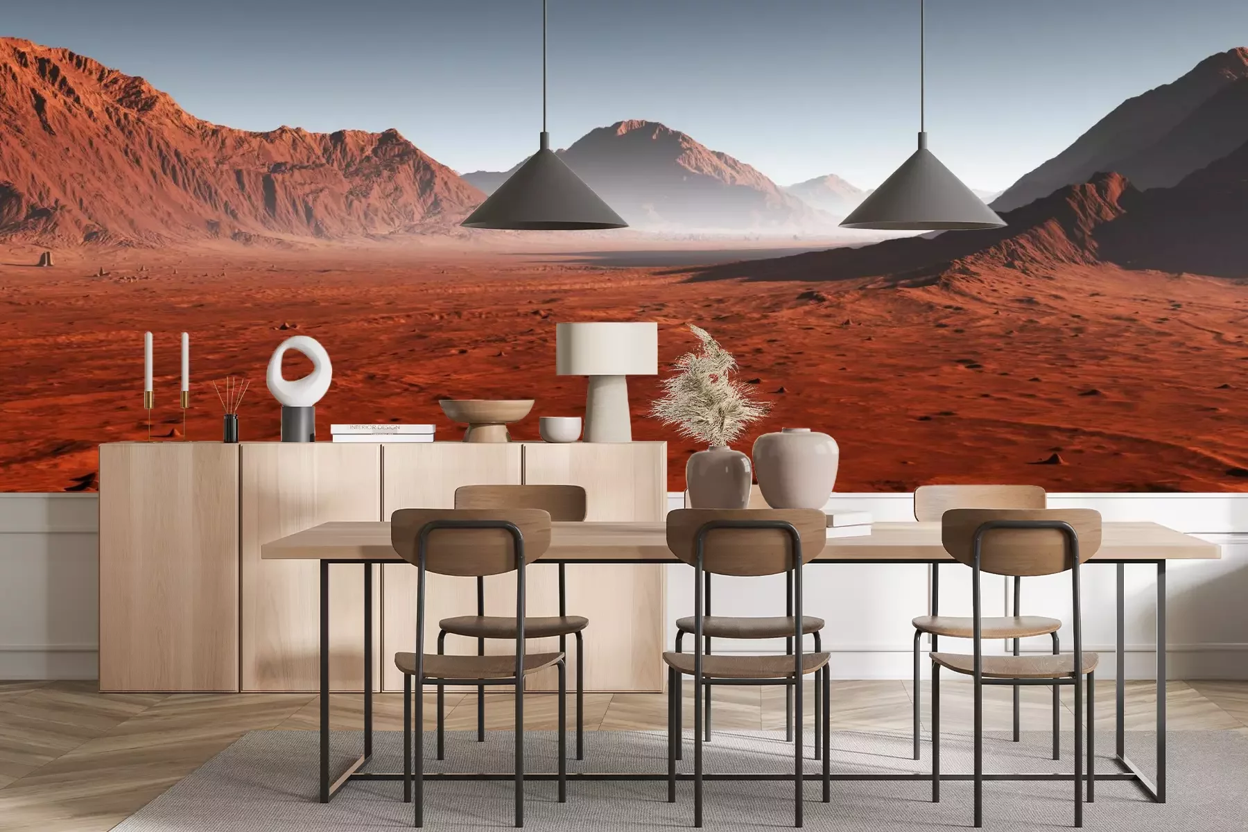 Das Material Premium+ besteht aus einer strukturierten Vinyl-Oberschicht und einem Trägermaterial (Vlies) mit einer Grammatur von 255 g/m², das kleine Unebenheiten der Wand zuverlässig kaschiert. Die feine Sandstruktur verleiht der Oberfläche eine luxuriöse Haptik, während das halbmatte Finish die Tiefe der Farben betont. Das Material ist dampfdurchlässig – so kann diese Fototapete auch in Küchen und Badezimmern eingesetzt werden. Die maximale Breite einer Tapetenbahn beträgt 100 cm. Bei größeren Abmessungen besteht die Fototapete aus mehreren gleich großen Bahnen. Der Kleber wird direkt auf die Wand aufgetragen, und die Fototapete wird auf Stoß angebracht, was für einen ästhetischen Effekt ohne sichtbare Fugen sorgt. Die Oberfläche ist pflegeleicht und kann bei Bedarf sanft mit einem feuchten Tuch abgewischt werden.