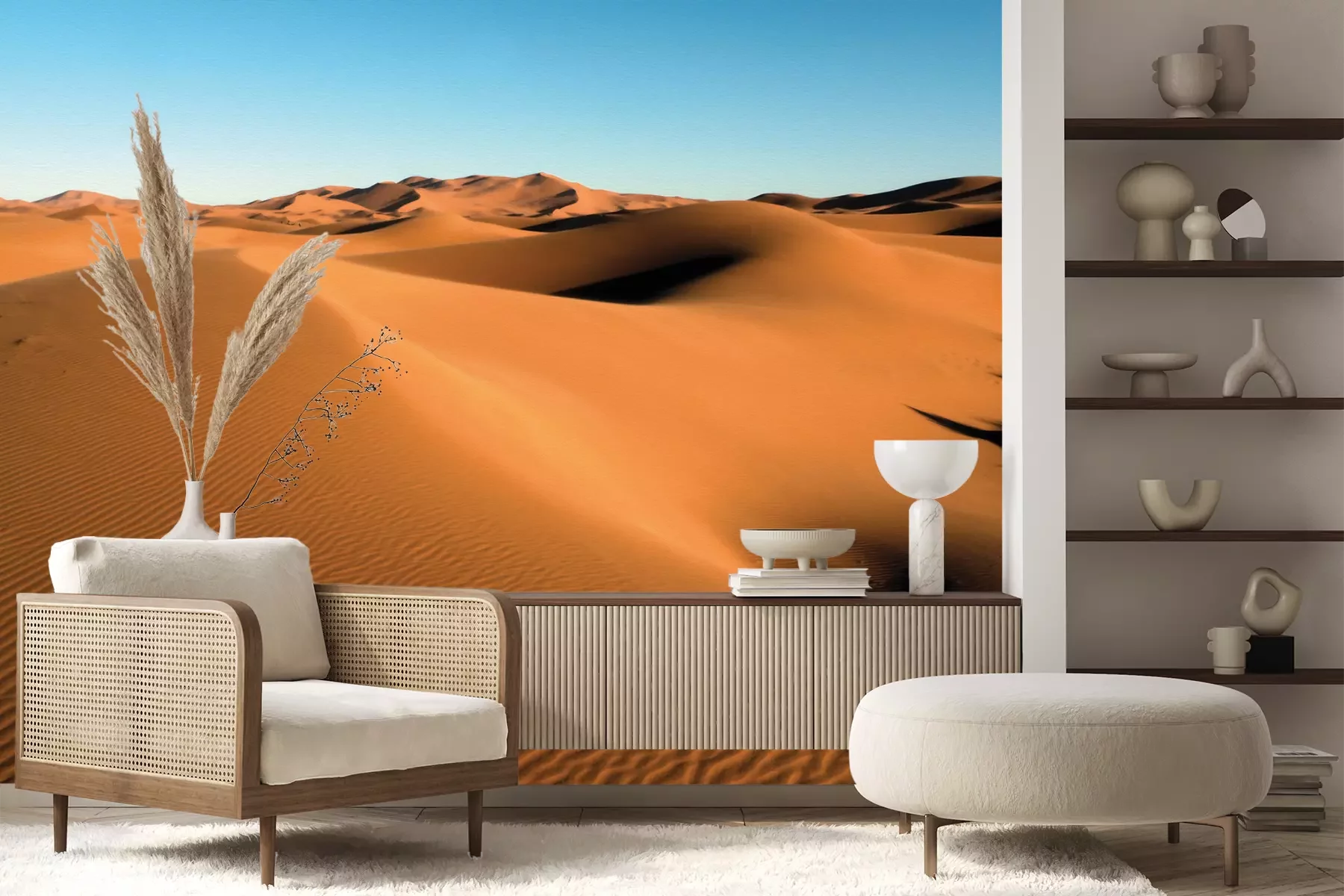 Das Material Premium+ besteht aus einer strukturierten Vinyl-Oberschicht und einem Trägermaterial (Vlies) mit einer Grammatur von 255 g/m², das kleine Unebenheiten der Wand zuverlässig kaschiert. Die feine Sandstruktur verleiht der Oberfläche eine luxuriöse Haptik, während das halbmatte Finish die Tiefe der Farben betont. Das Material ist dampfdurchlässig – so kann diese Fototapete auch in Küchen und Badezimmern eingesetzt werden. Die maximale Breite einer Tapetenbahn beträgt 100 cm. Bei größeren Abmessungen besteht die Fototapete aus mehreren gleich großen Bahnen. Der Kleber wird direkt auf die Wand aufgetragen, und die Fototapete wird auf Stoß angebracht, was für einen ästhetischen Effekt ohne sichtbare Fugen sorgt. Die Oberfläche ist pflegeleicht und kann bei Bedarf sanft mit einem feuchten Tuch abgewischt werden.